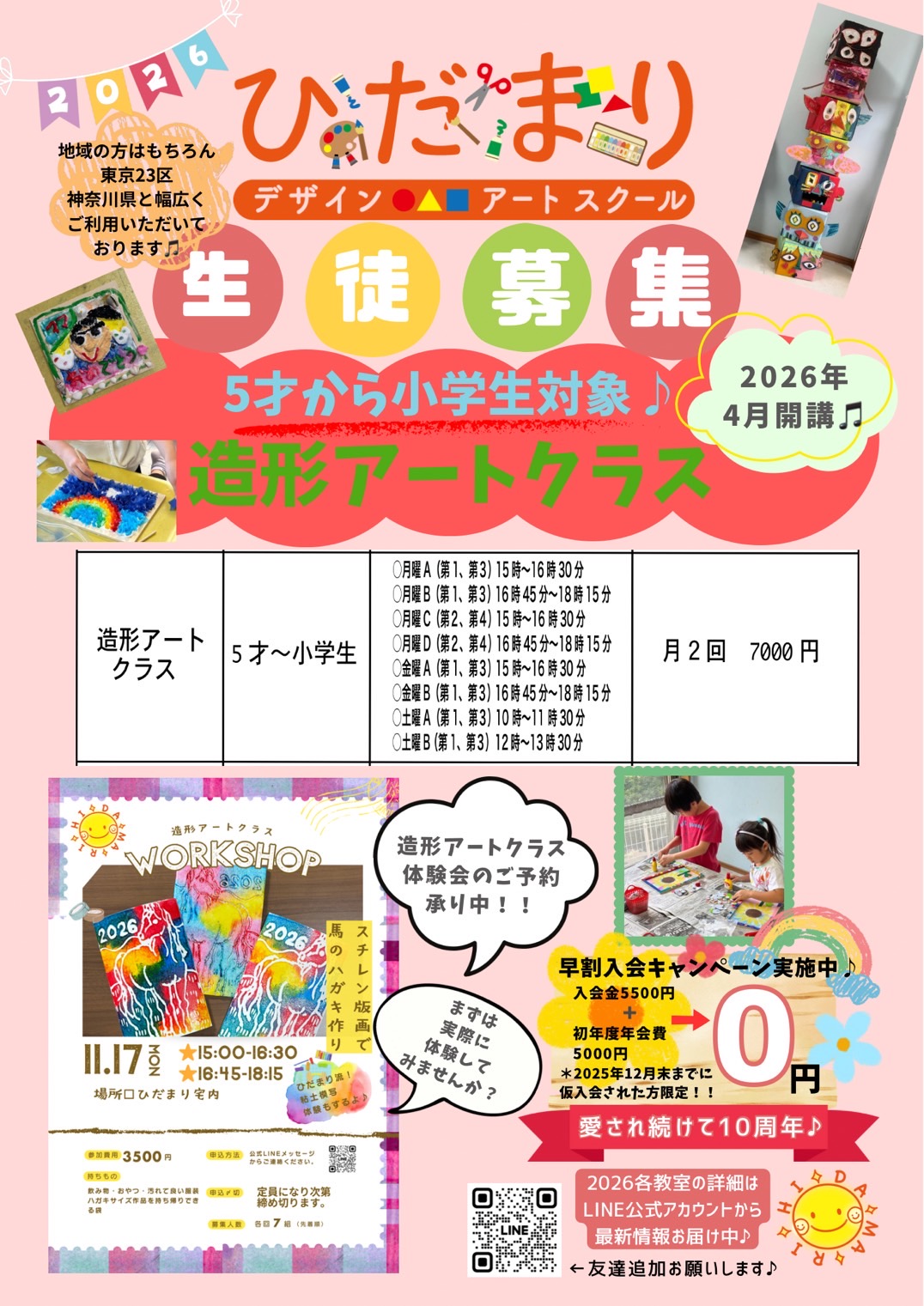 もちろん、線画デザイン教室や土日の子ども造形教室にプラスしてのご参加も大歓迎です✨