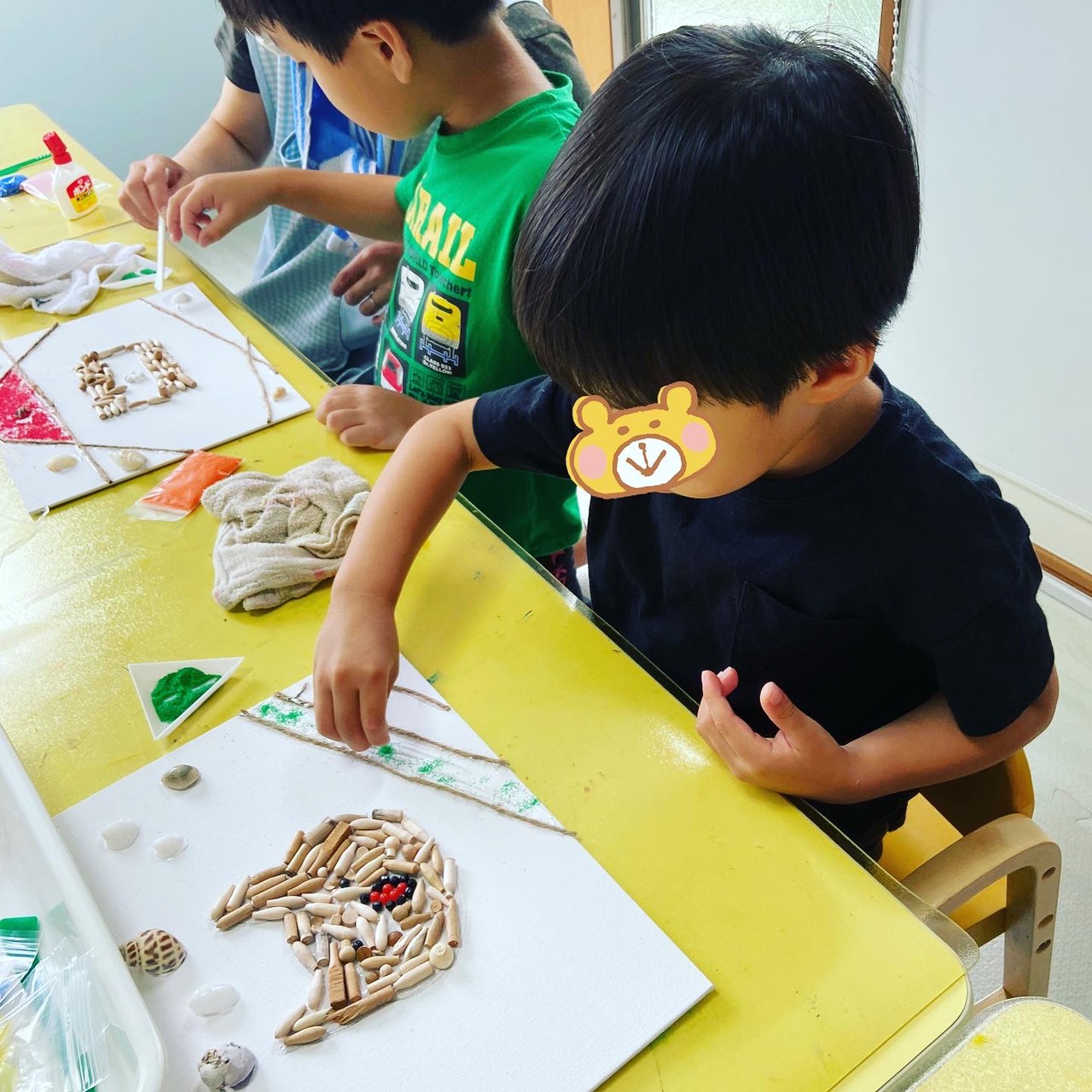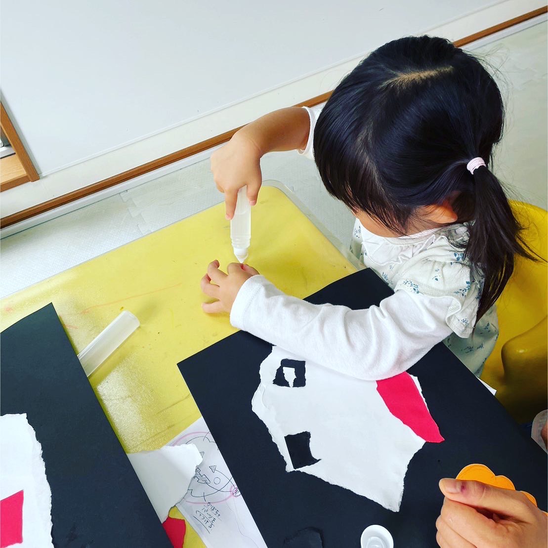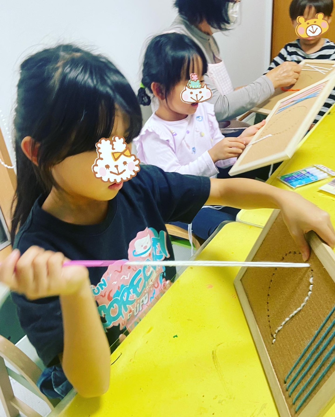 最初に簡単なハサミやのり、線の練習などの基礎的な練習をした後、たくさんの材料を毎月すこし変化をつけて机に並べておいて、その材料の中で、何をしようか?みんなで、考えながら自由に活動できたらと。。子どもたちのアイディアを取り入れながら、幼稚園や学校の後の放課後を楽しんでいただけたらと思っています✨