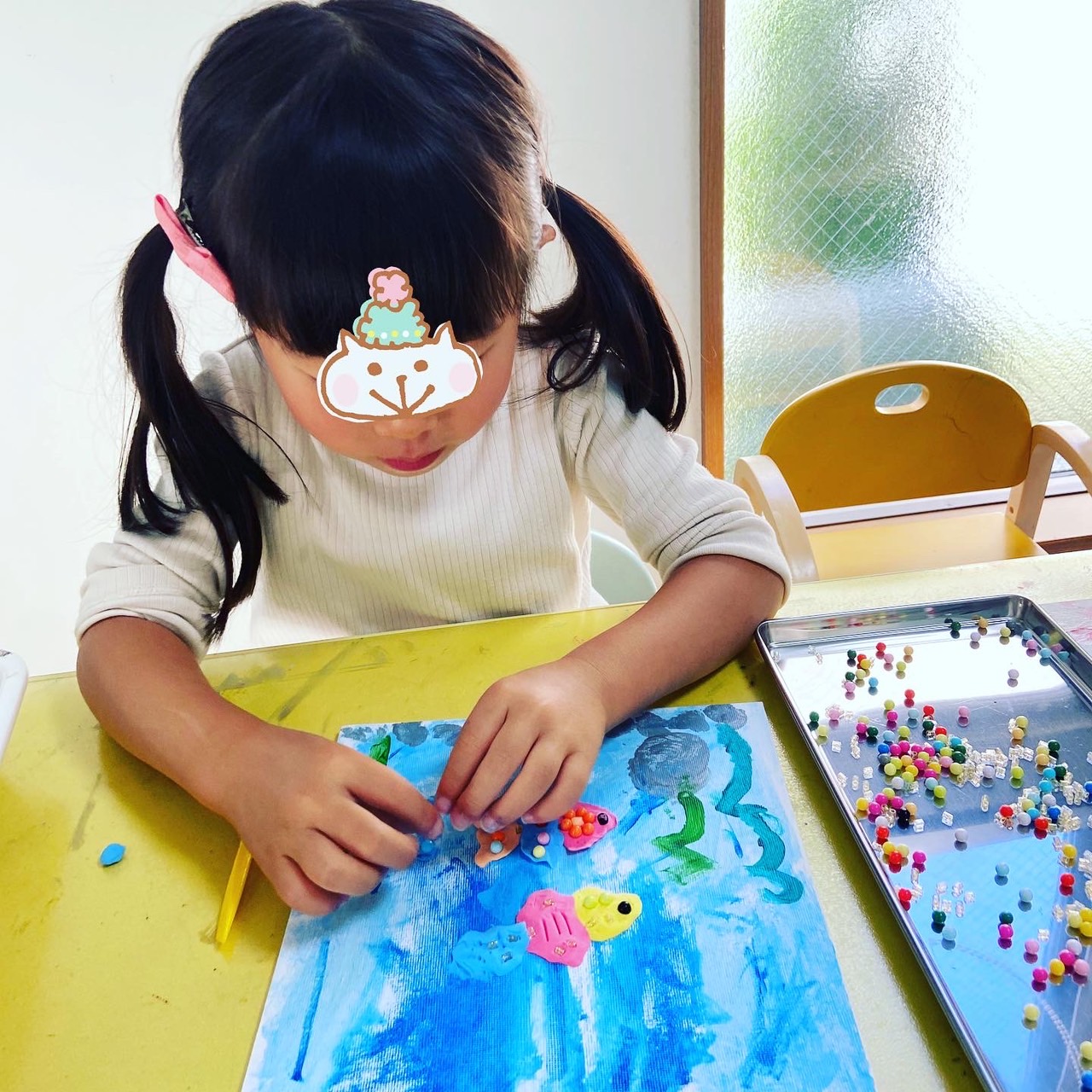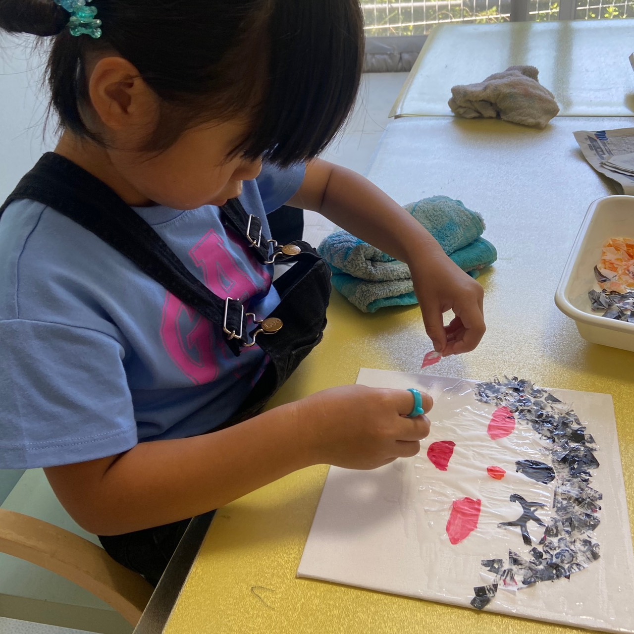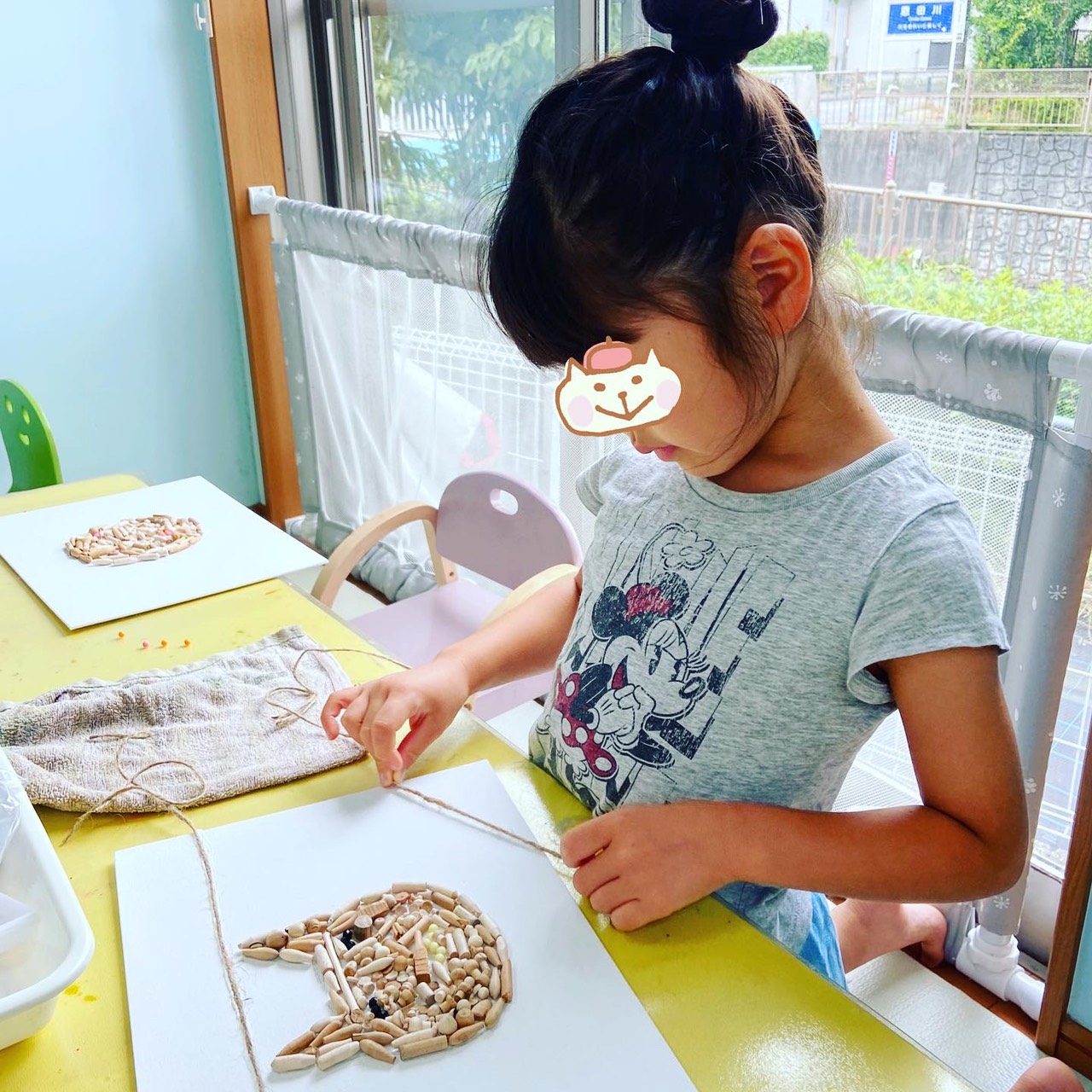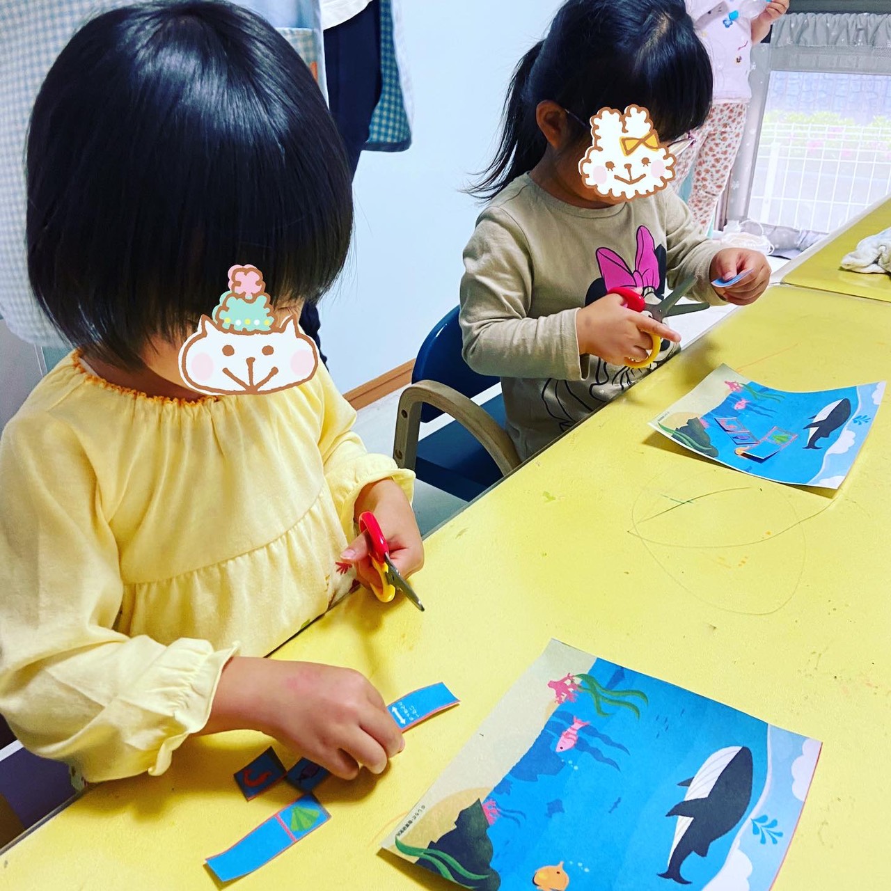 最初に簡単なハサミやのり、線の練習などの基礎的な練習をした後、たくさんの材料を毎月すこし変化をつけて机に並べておいて、その材料の中で、何をしようか?みんなで、考えながら自由に活動できたらと。。子どもたちのアイディアを取り入れながら、幼稚園や学校の後の放課後を楽しんでいただけたらと思っています✨