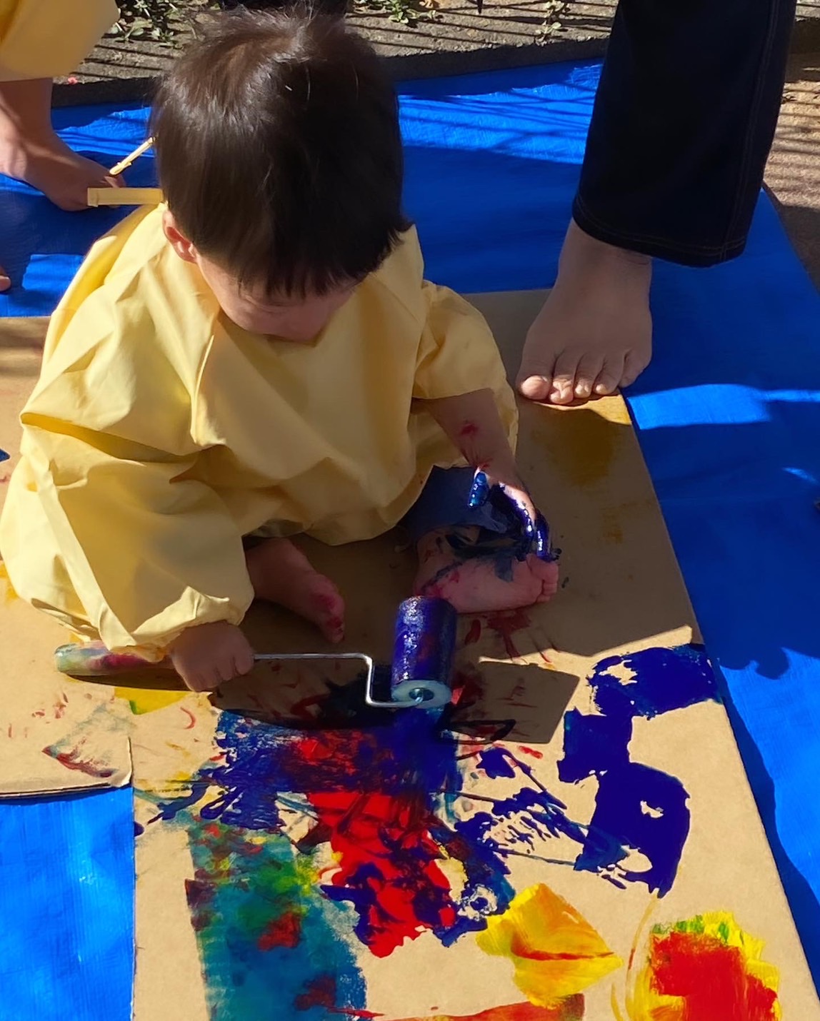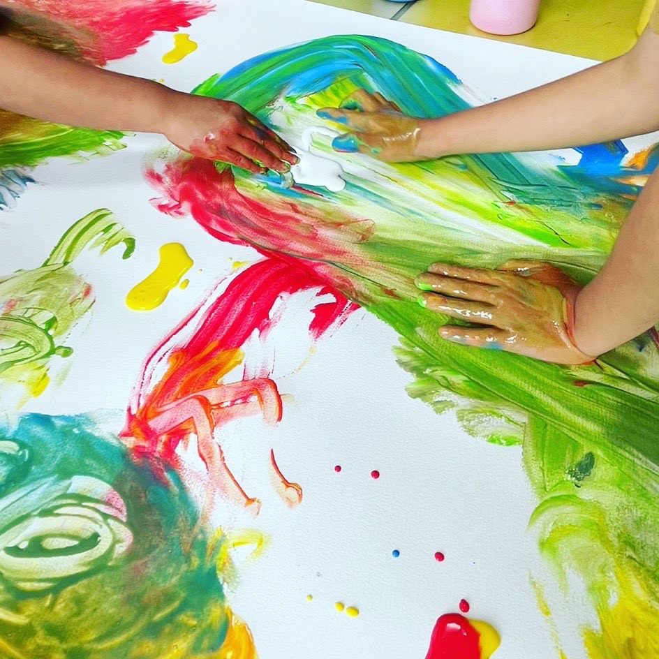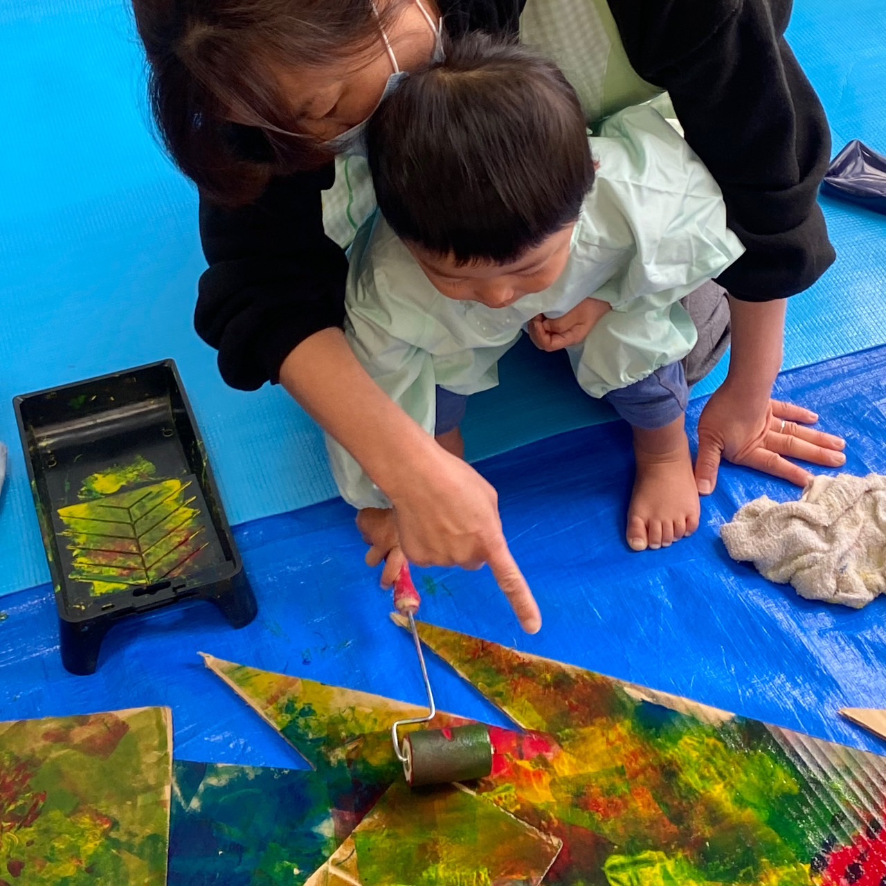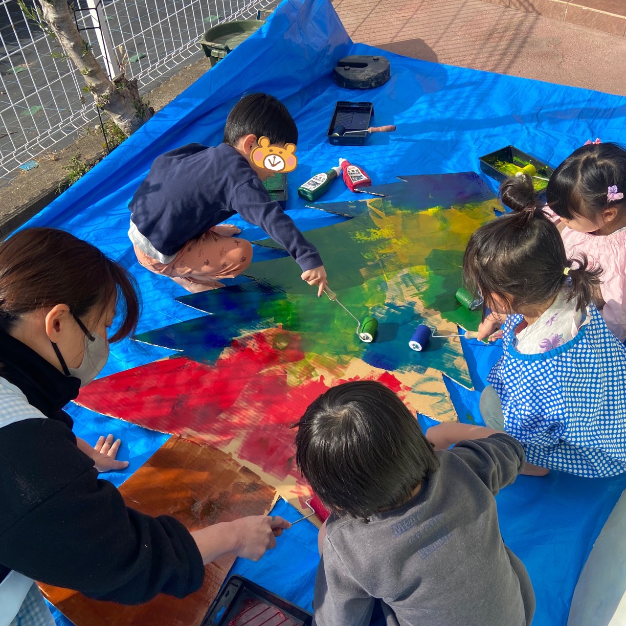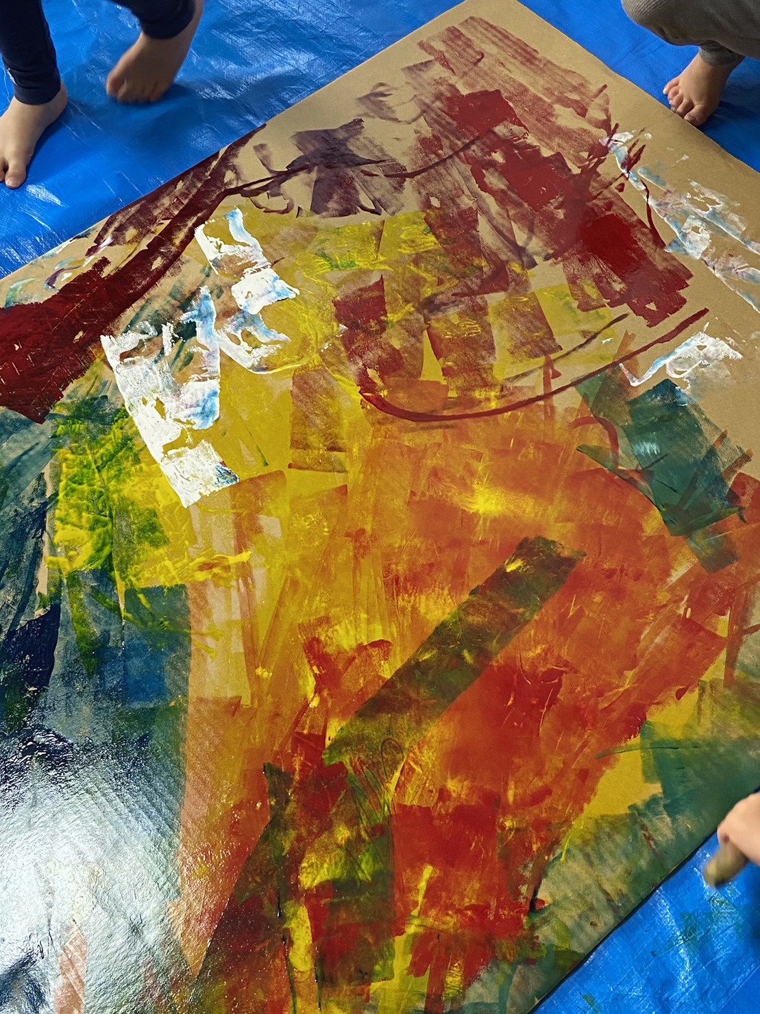 大きな紙の周りにみんなで座って、自分の持ち場を作り、お友達が描いた線をバトンタッチしながら繋げて描いていくという。。小さい子たちにとっては、このリレーがドキドキハラハラするようで、わちゃわちゃと盛り上がりました✨