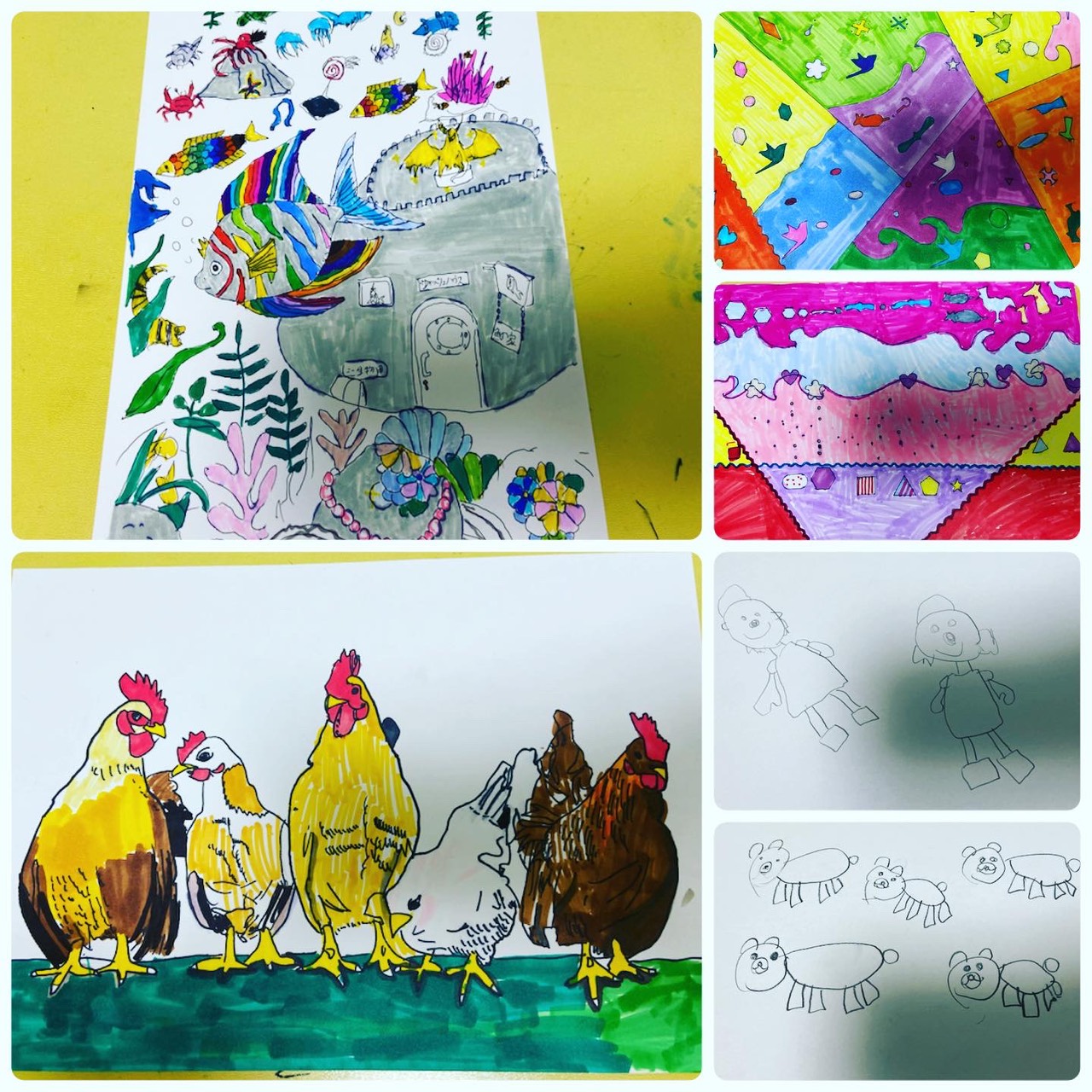幼稚園生から小学生高学年まで同じ題材を今回はやってみましたが、本当に予想を超える素敵な作品がたくさんできました✨