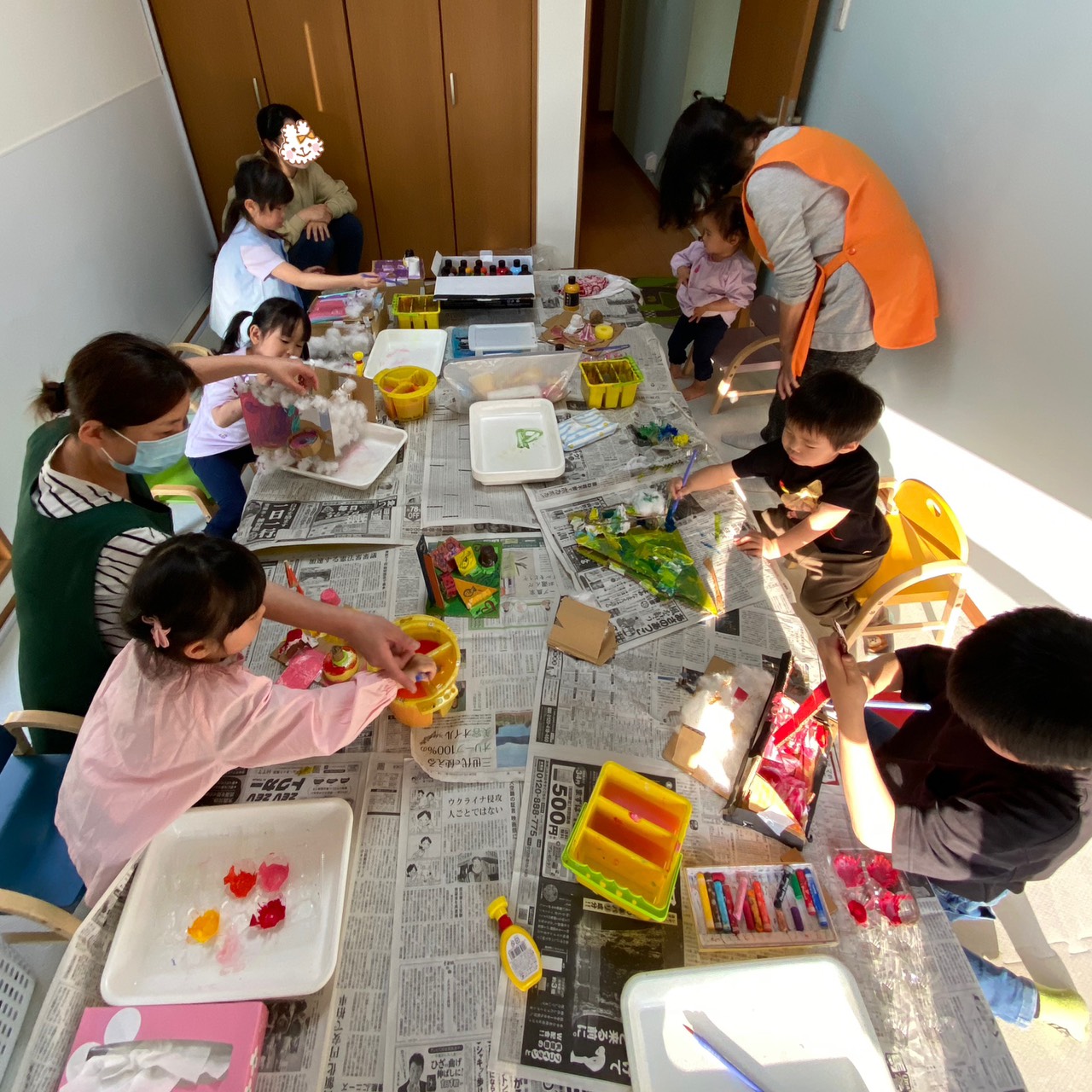 スタッフ自体も当日に来られるメンバーを見ながら、前回は立体物を作ったから、今回はぐちゃぐちゃ遊びをしようかなとか、みんなその間、こういうことやりたいと言っていたから、この活動をしてみよう♪などなど、そんな感じで、すすめていきます😊
