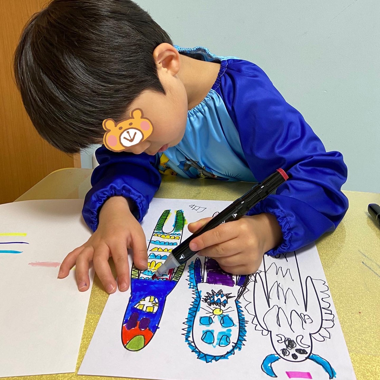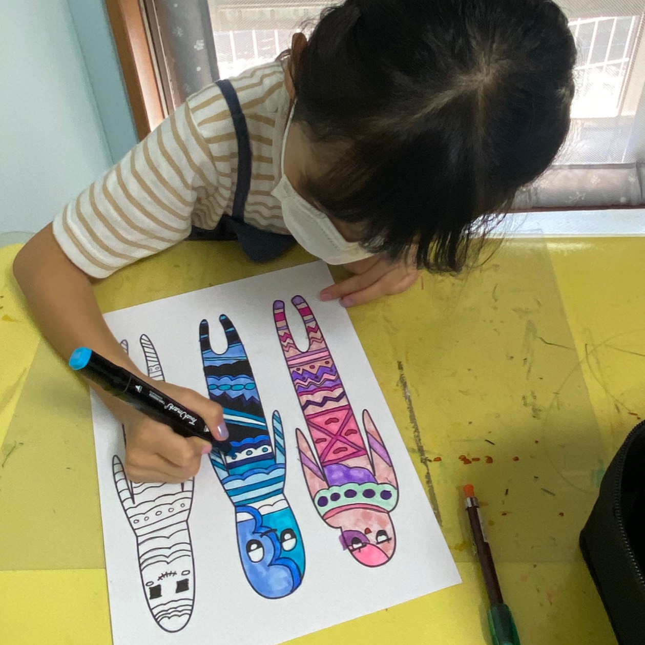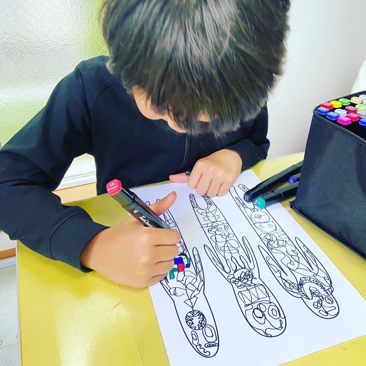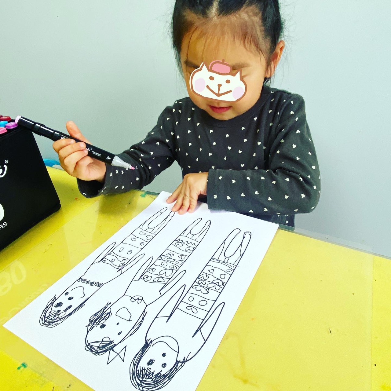 昨年5月からスタートしました線画デザイン教室ですが、幼稚園の年齢のお友達も多く通われています✨