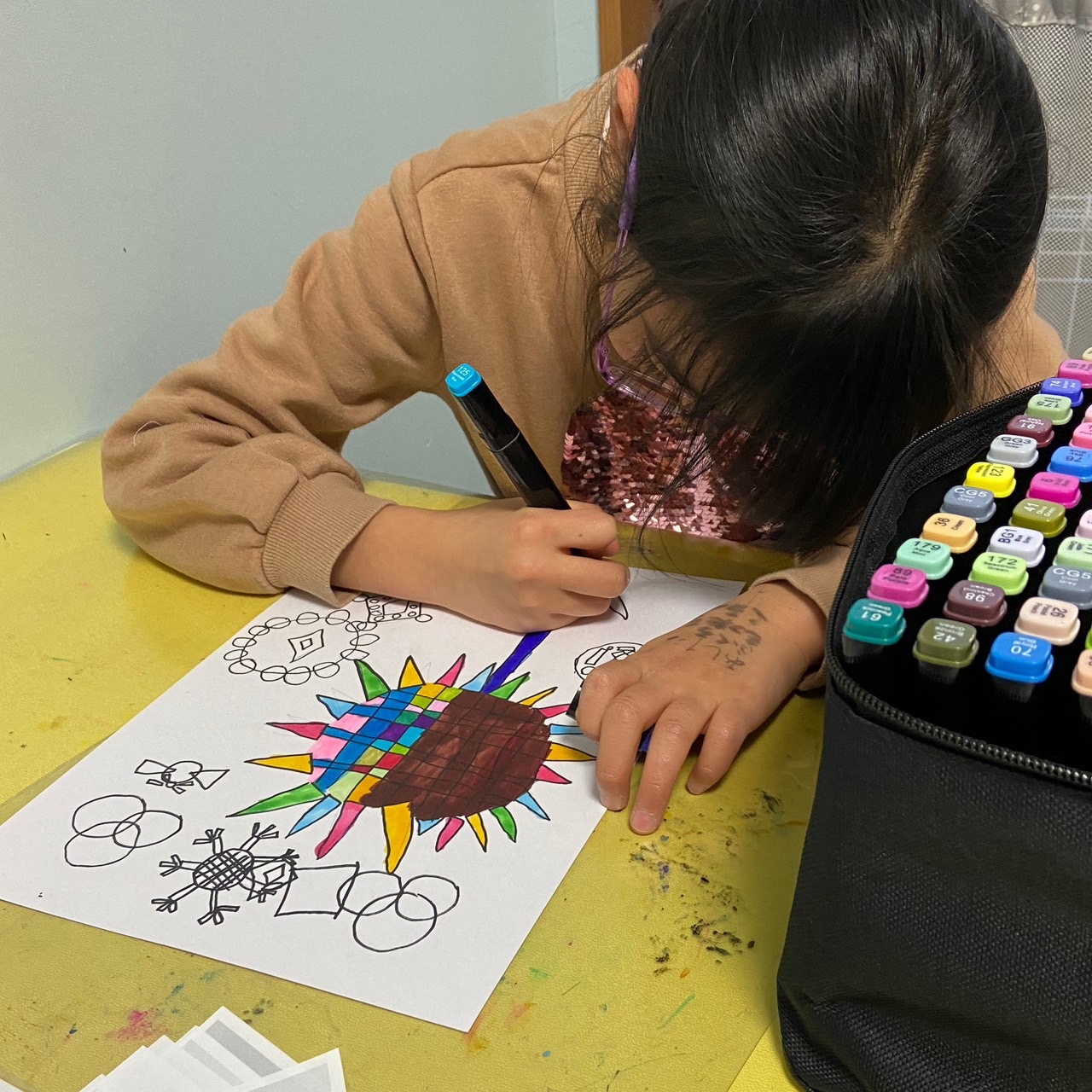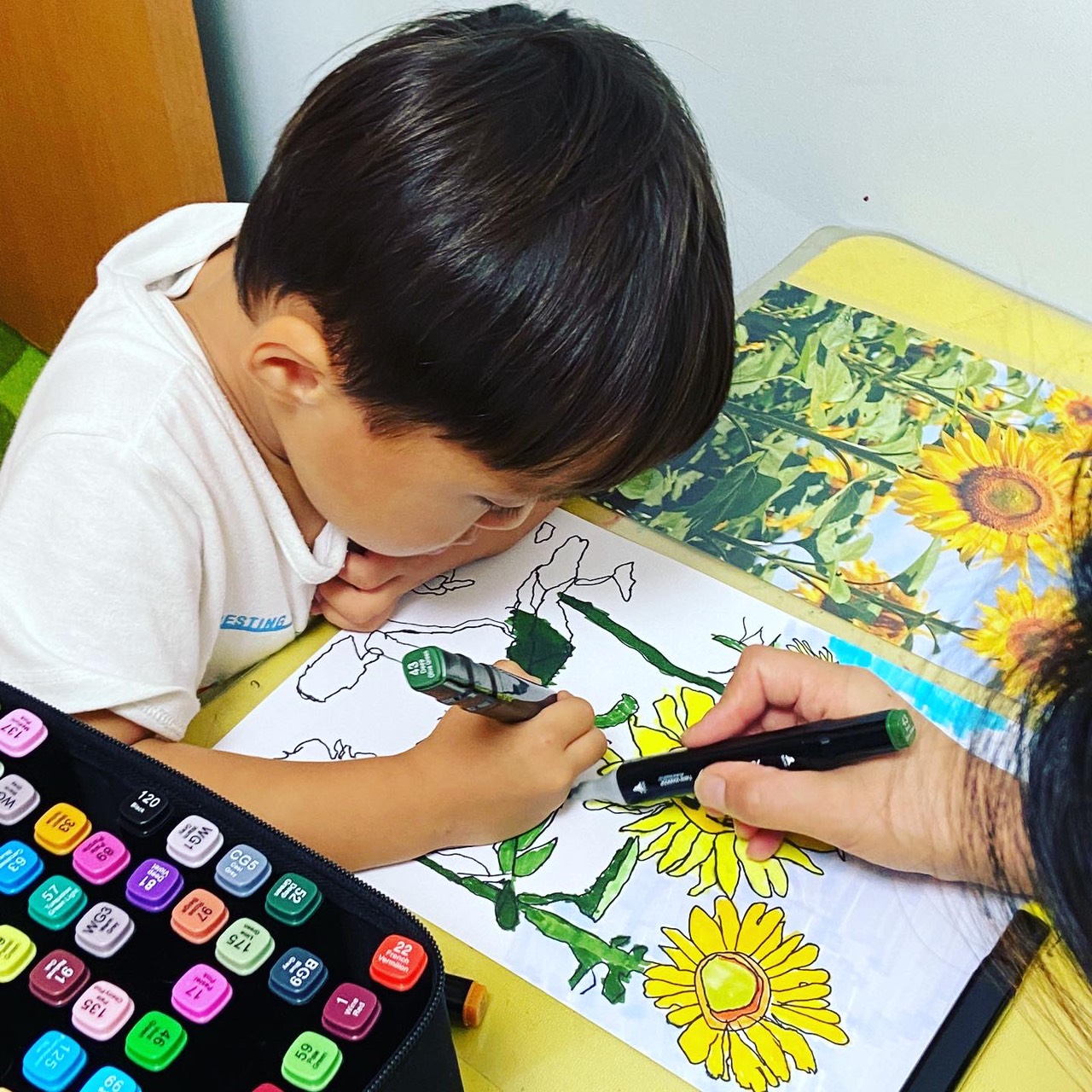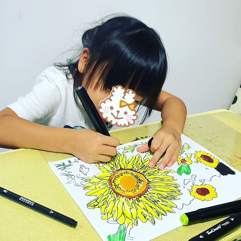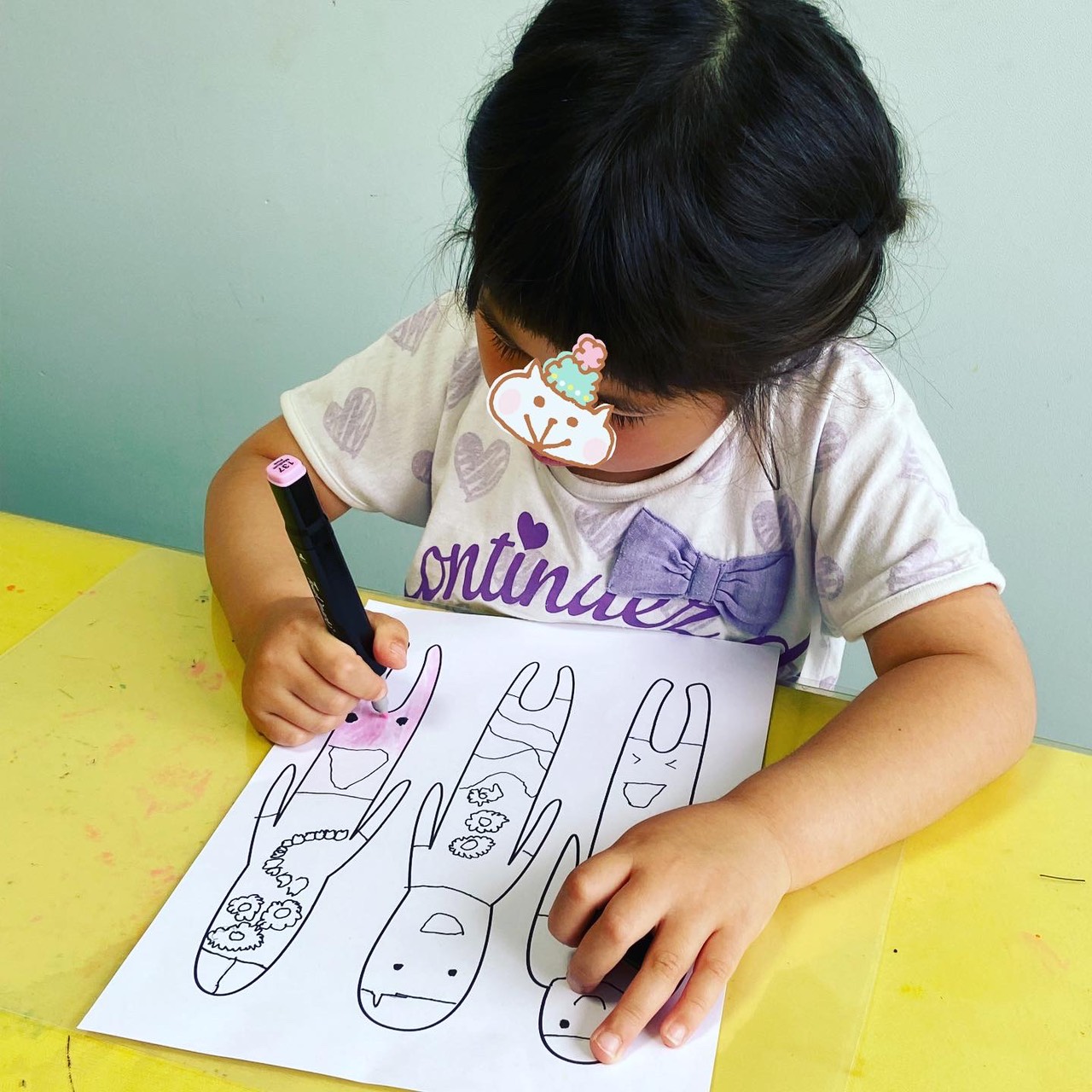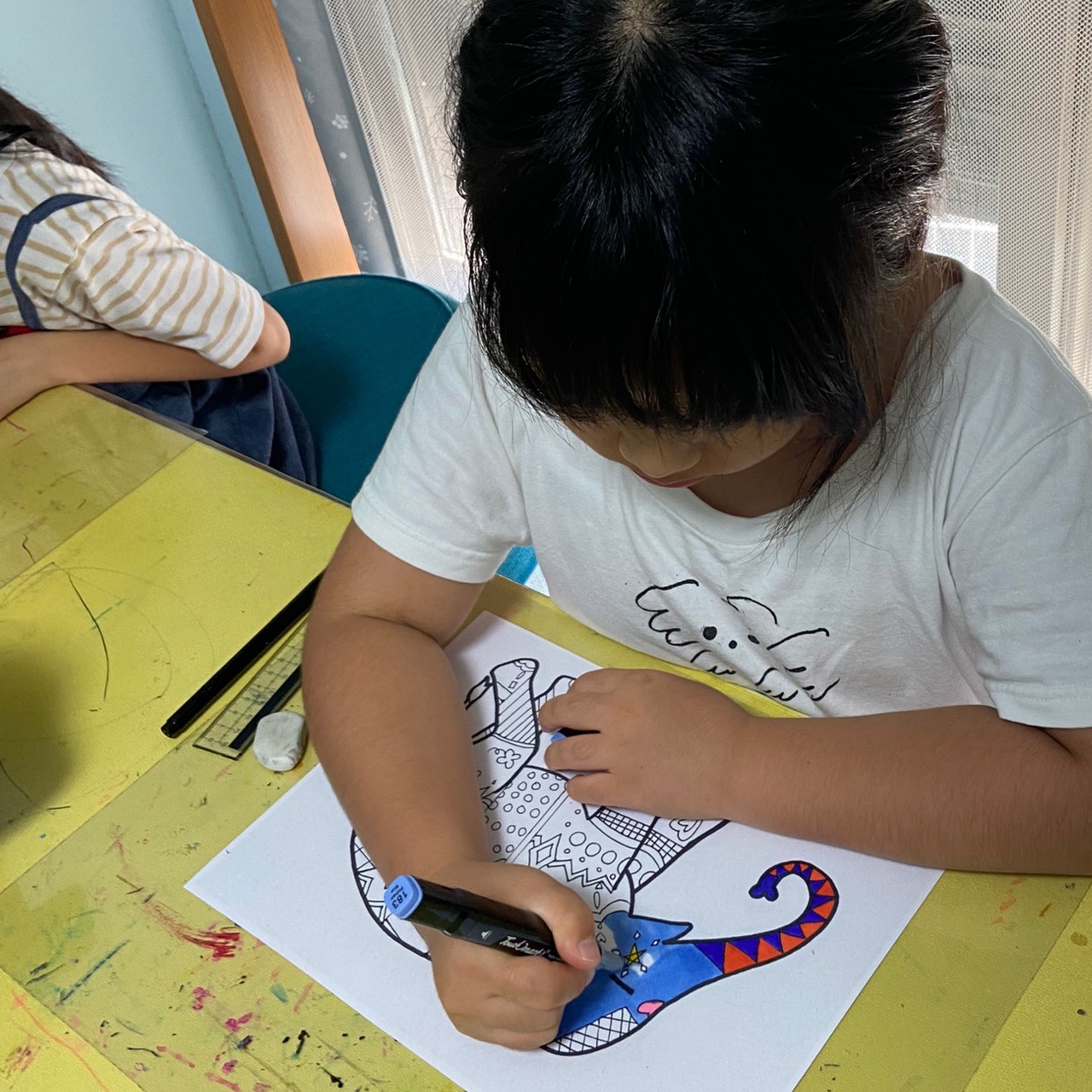 昨年5月からスタートしました線画デザイン教室ですが、幼稚園の年齢のお友達も多く通われています✨