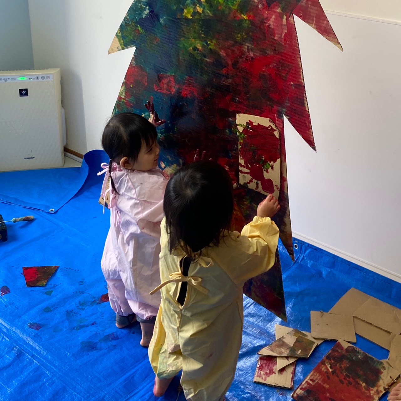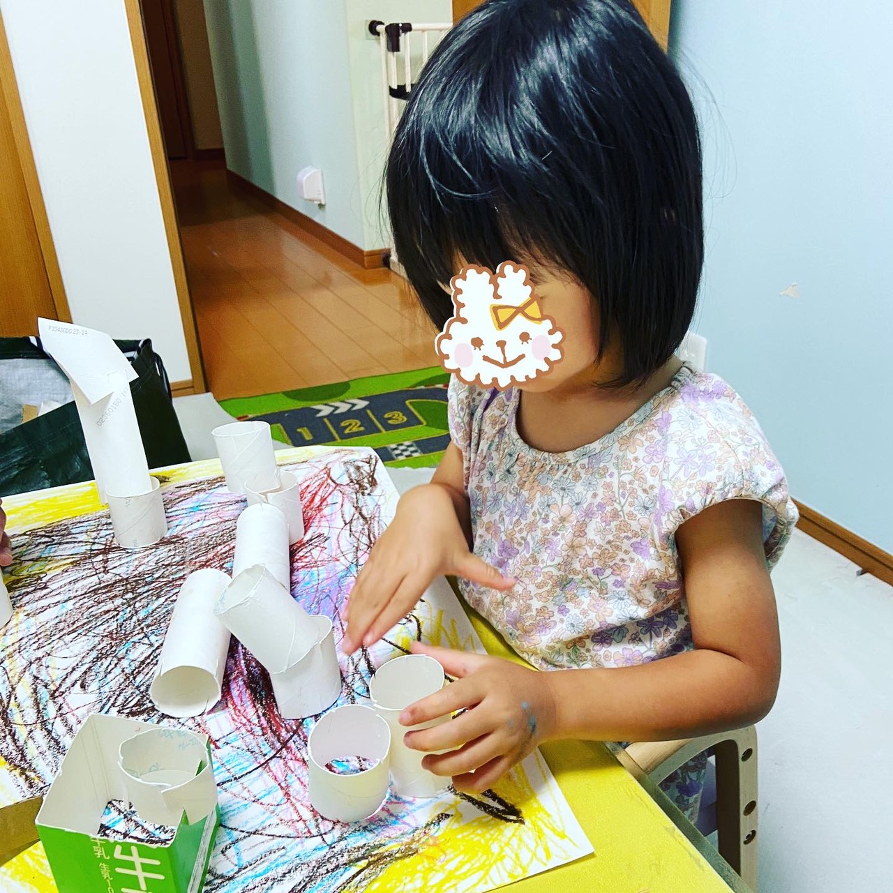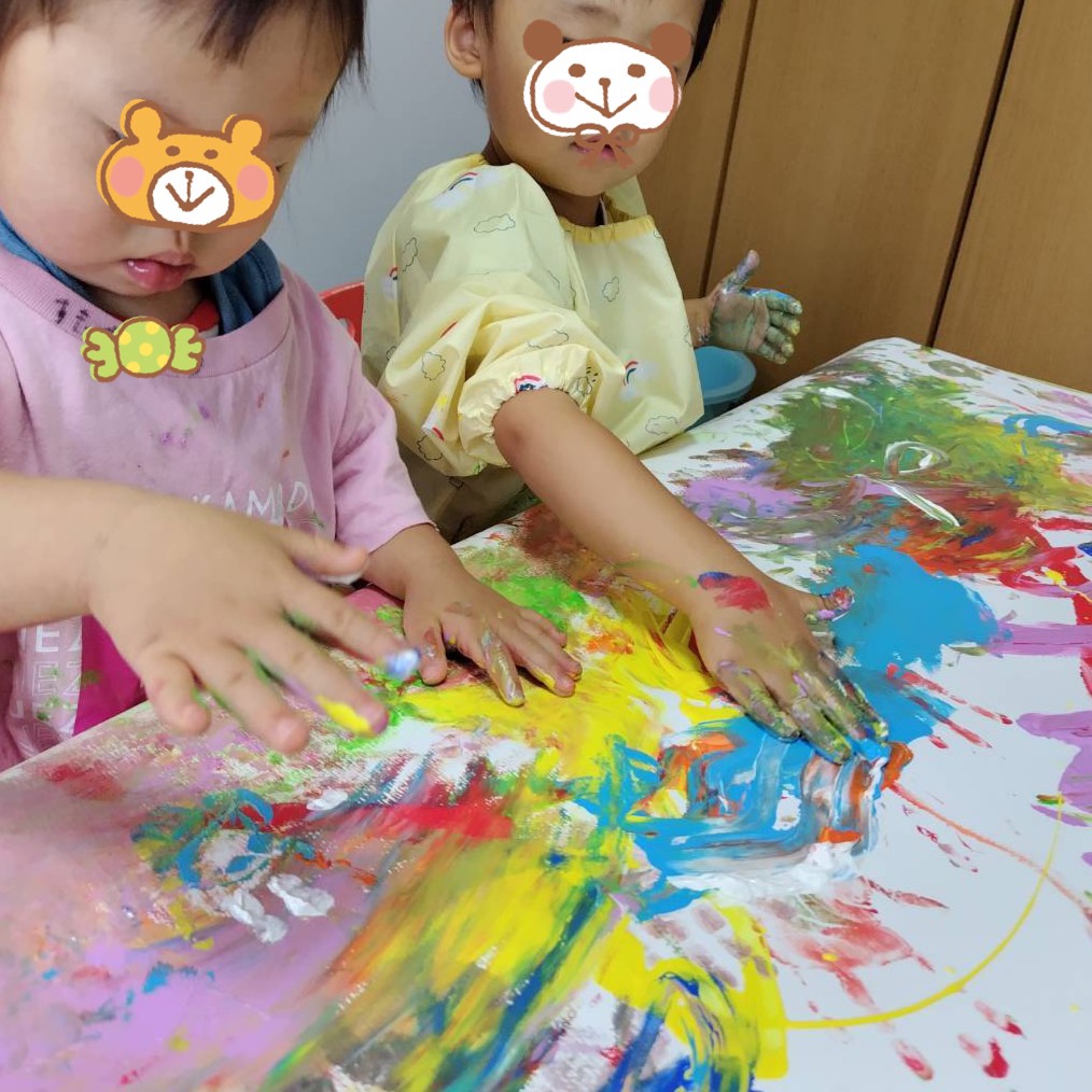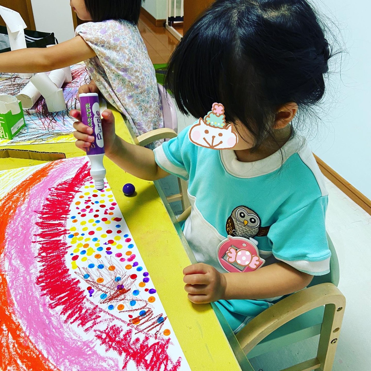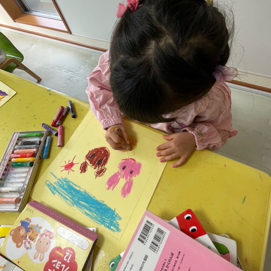 クレヨンで思い切りぐるぐる描いてみたり、テープを貼って飾り付けしてみたり、おもちゃを持ってきて遊んでみたり。。とっても楽しかったね✨