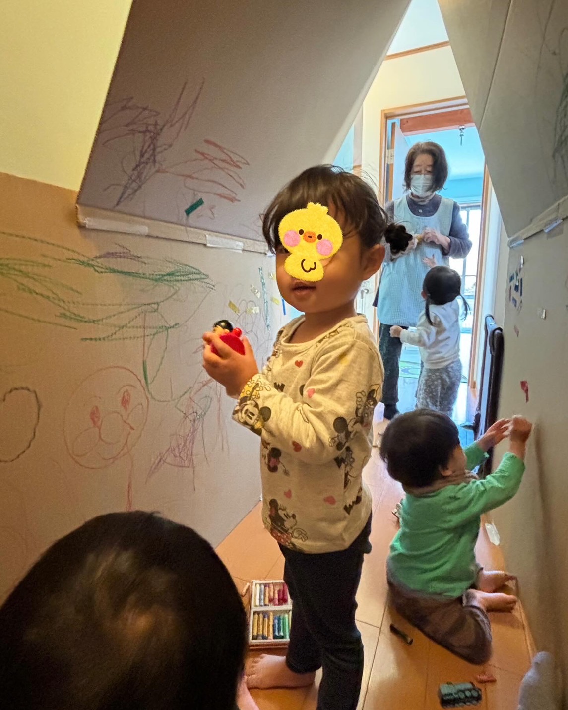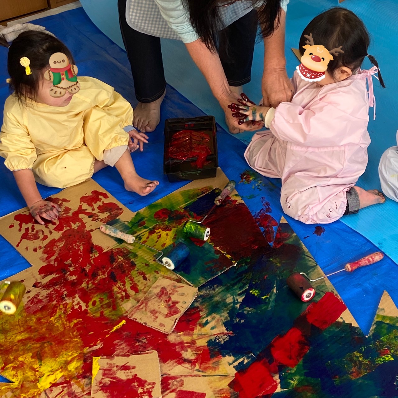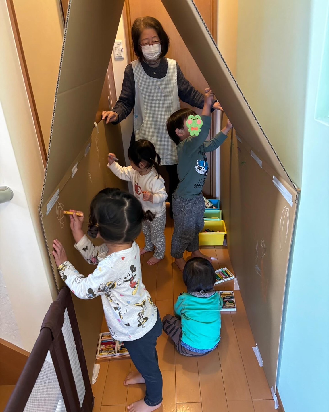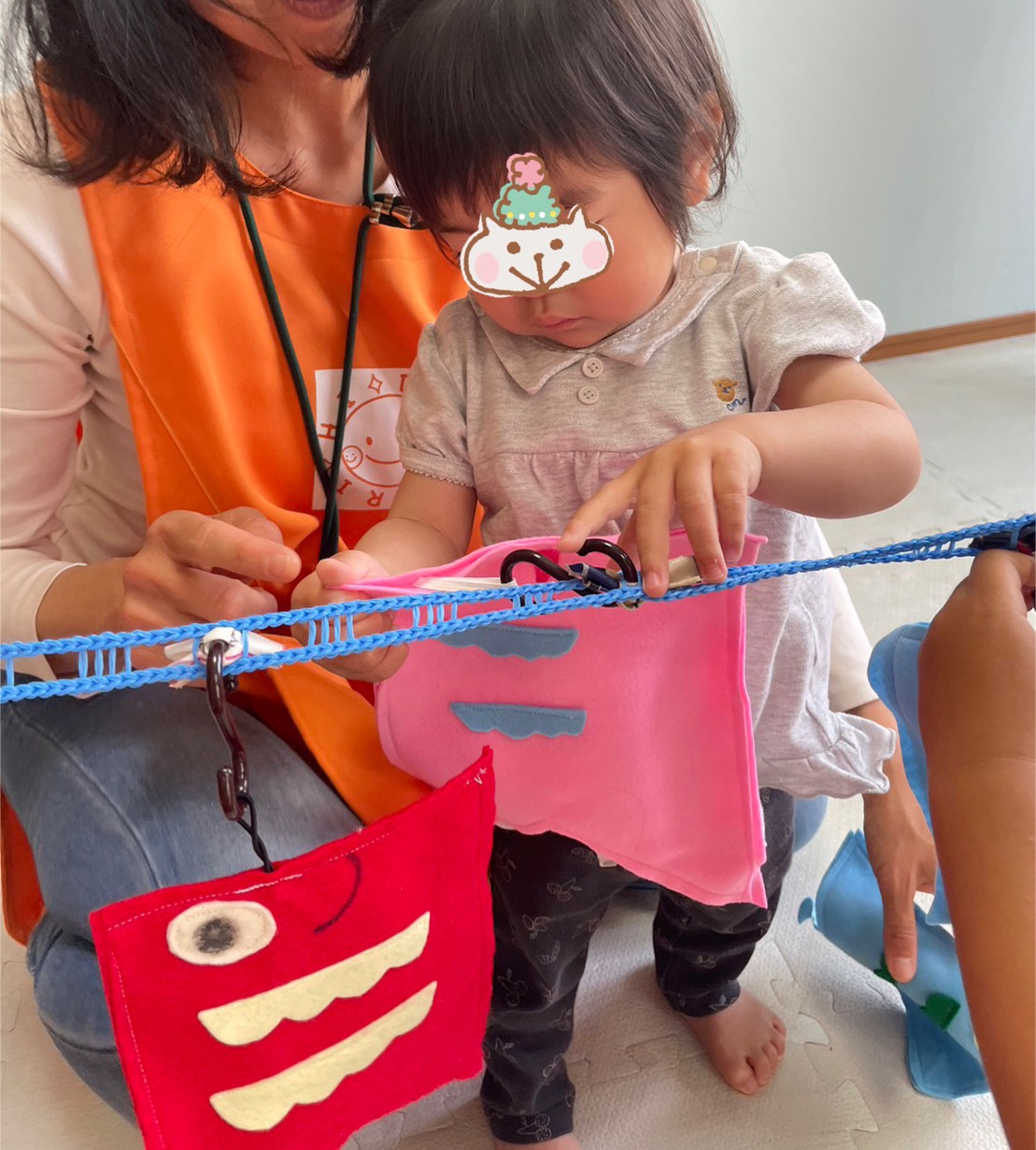 クレヨンで思い切りぐるぐる描いてみたり、テープを貼って飾り付けしてみたり、おもちゃを持ってきて遊んでみたり。。とっても楽しかったね✨