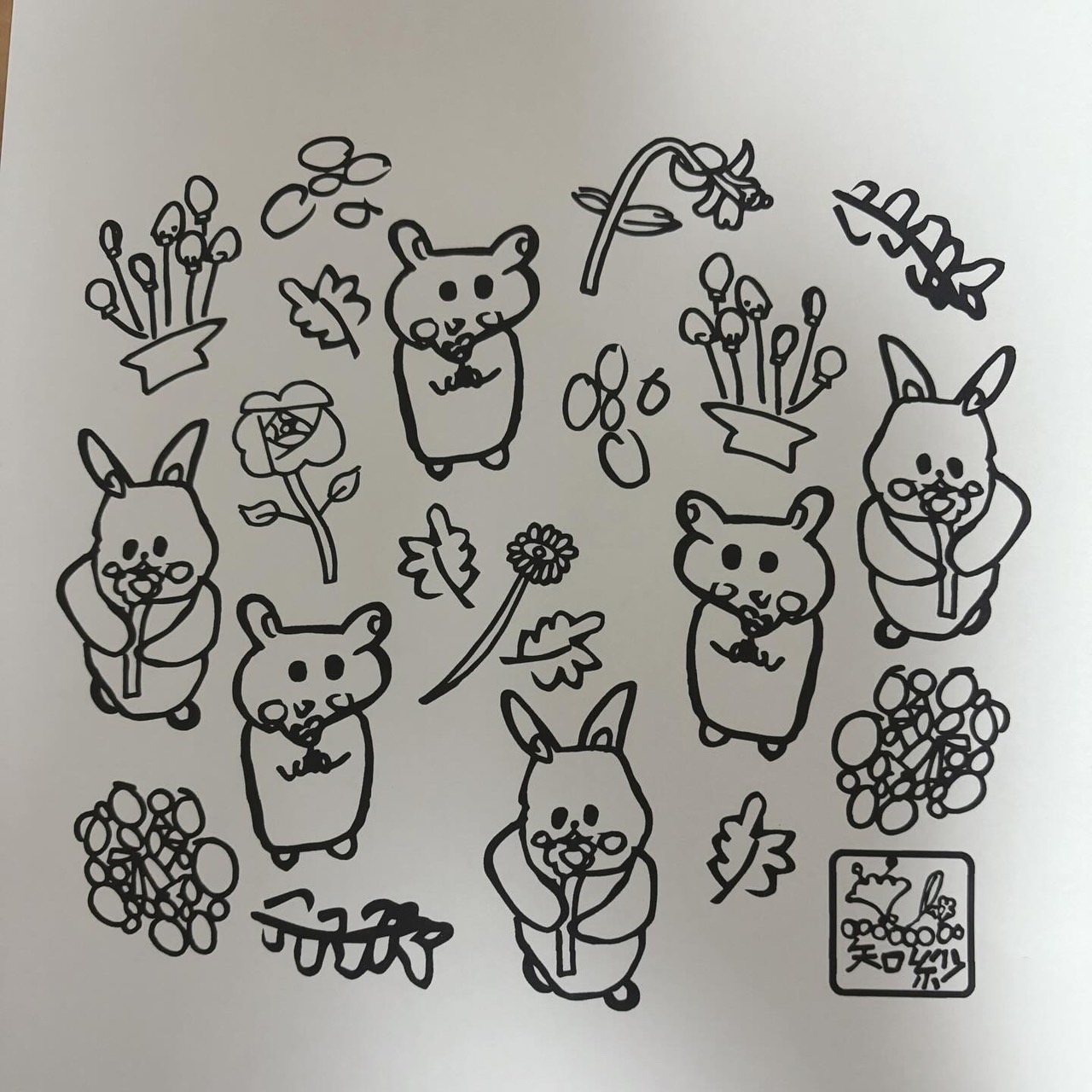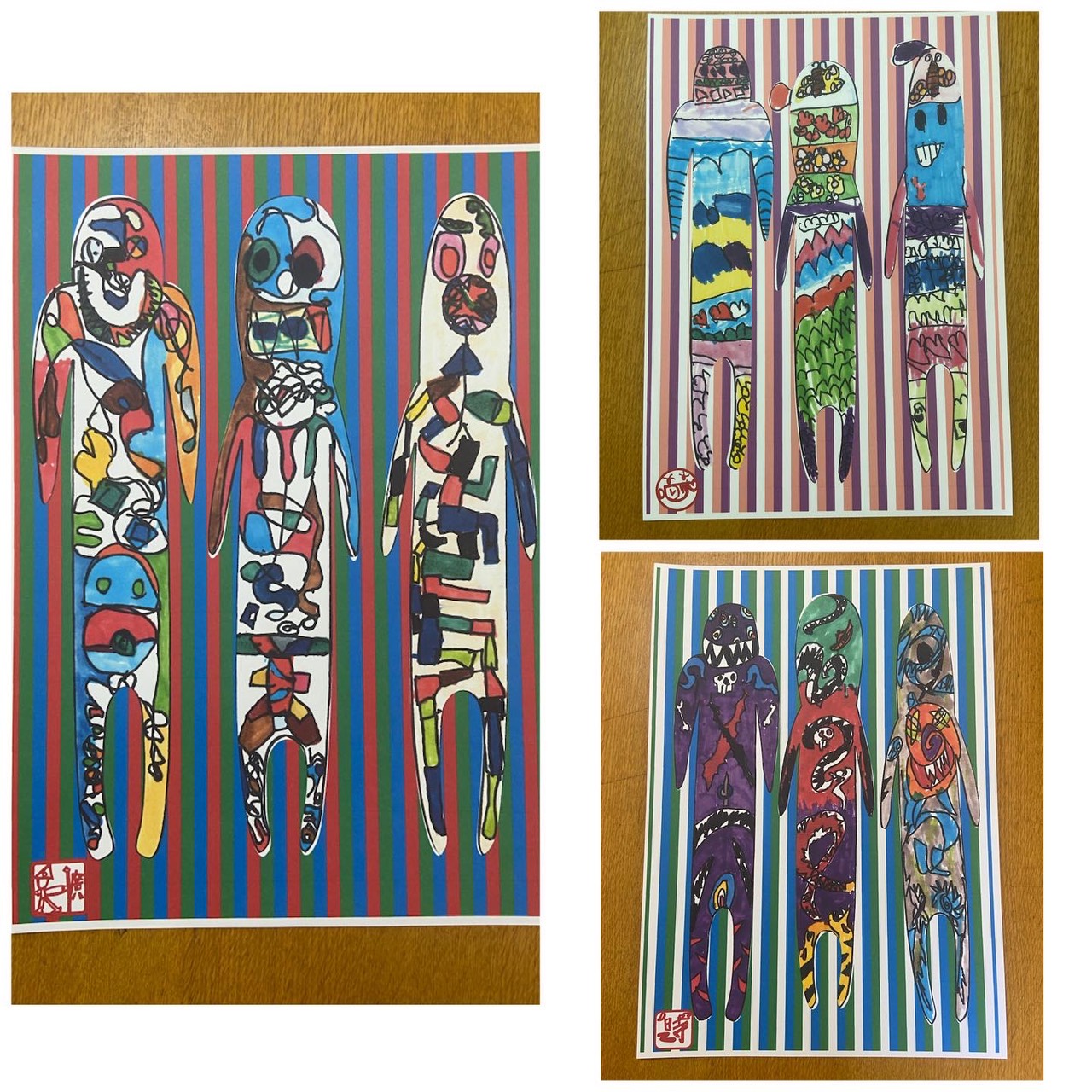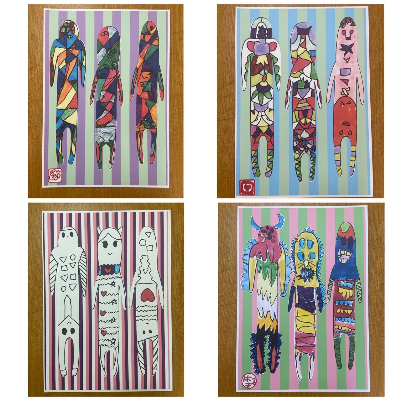 生徒さんのイラストをイラストレーターで紙全体に展開させて、模様風に私の方で配置してみたのですが。。これが。。また素晴らしい作品ばかり✨
