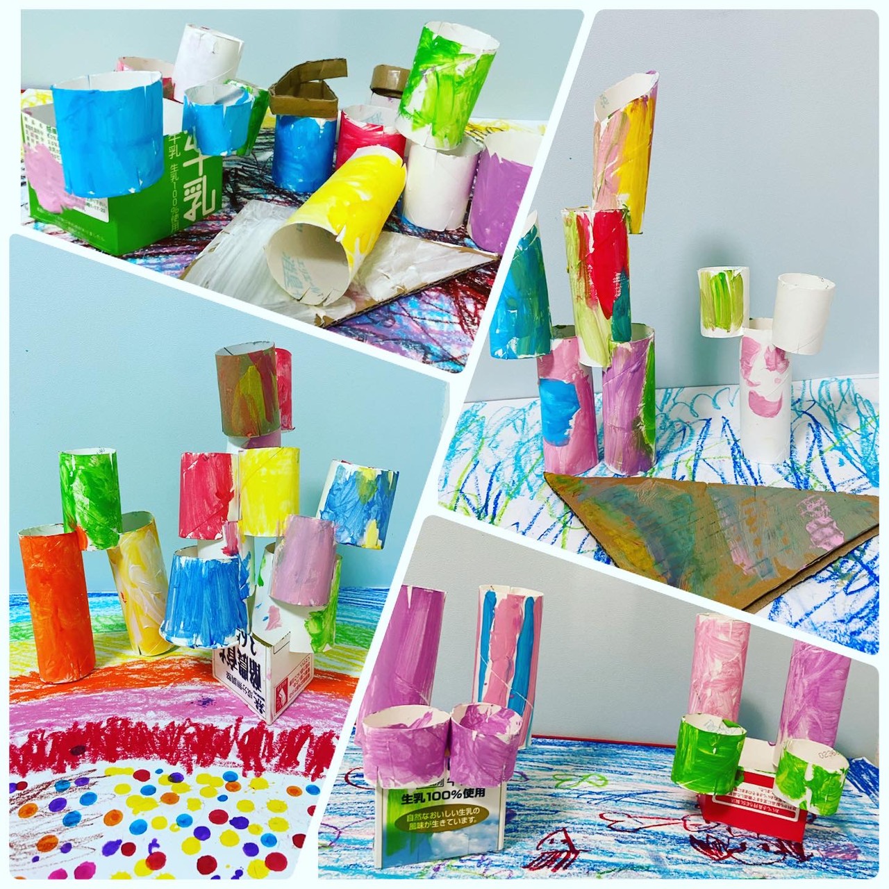 持ち帰りの作品の完成度を高めるよりも、その場の時間を大切に、失敗は成功の元!日々発想力の引き出しを増やせるように、子どもたちの自分で考えて作る力を育みます✨