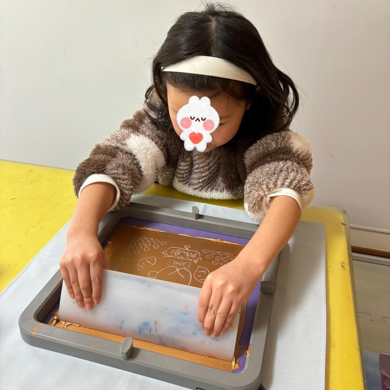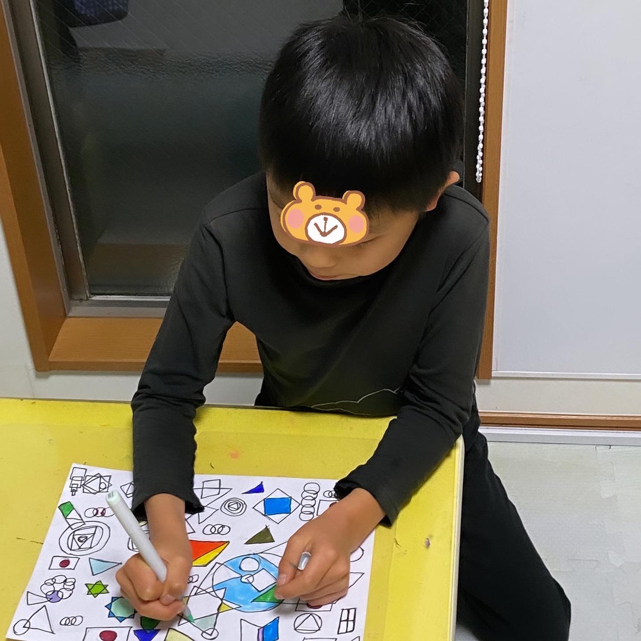お友達がプリント作業をしている間、他の生徒さんたちは、今度は紙用のデザインに色を塗って完成させていきます✨