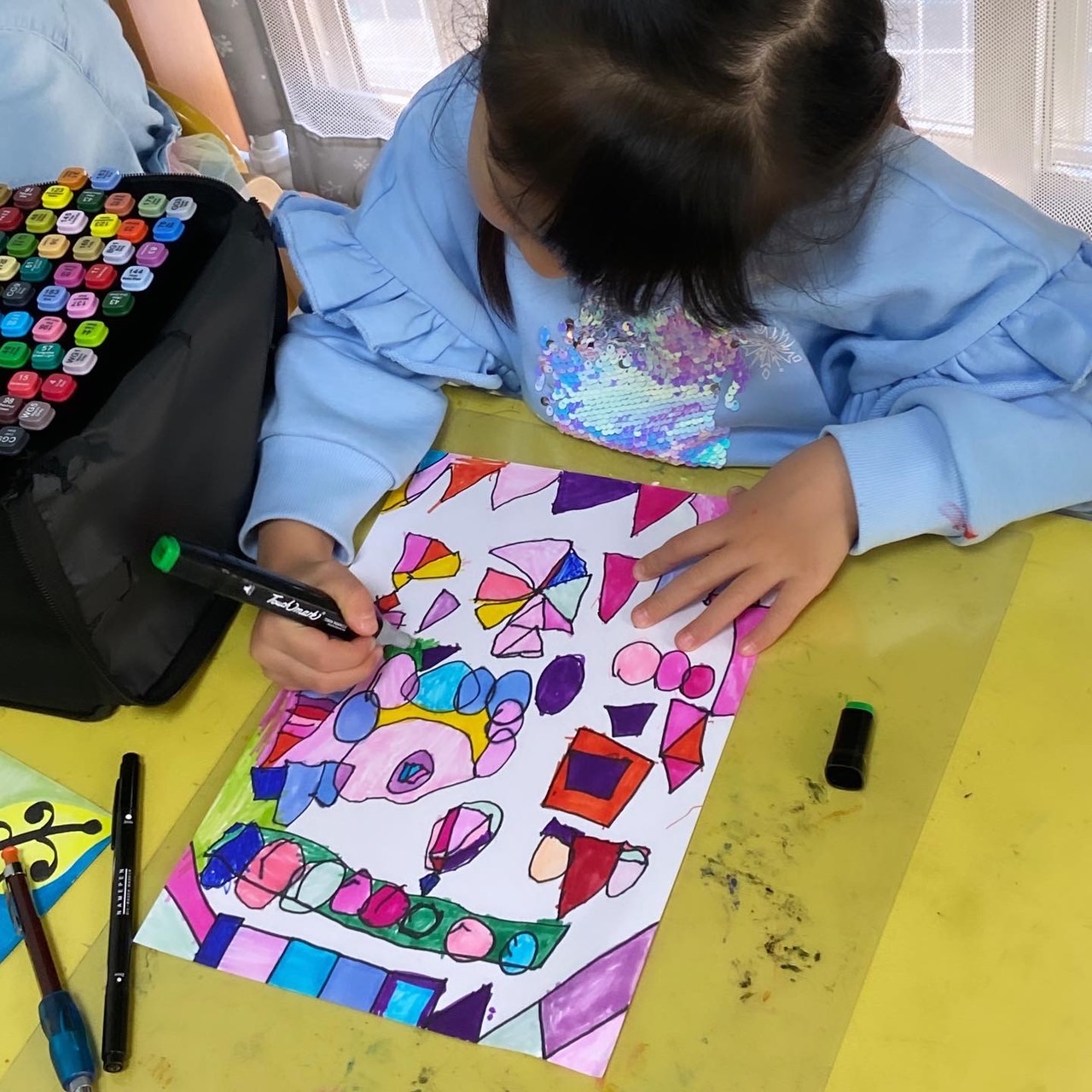 メンバーも増えてきて、絵を描くことが好きな子が集まっているので、周りのお友達に刺激されながら、どんどんイメージを膨らませて吸収していっています✨
