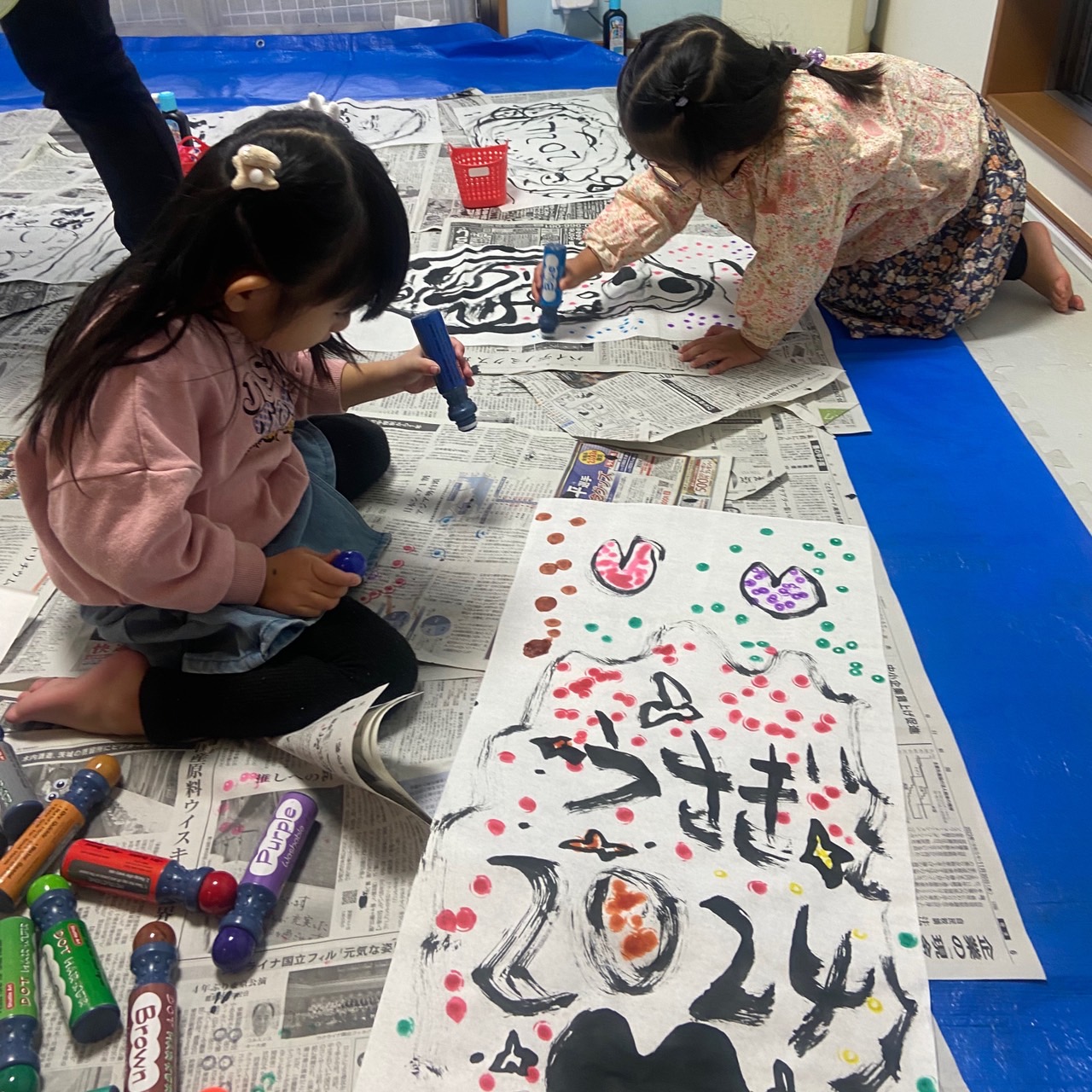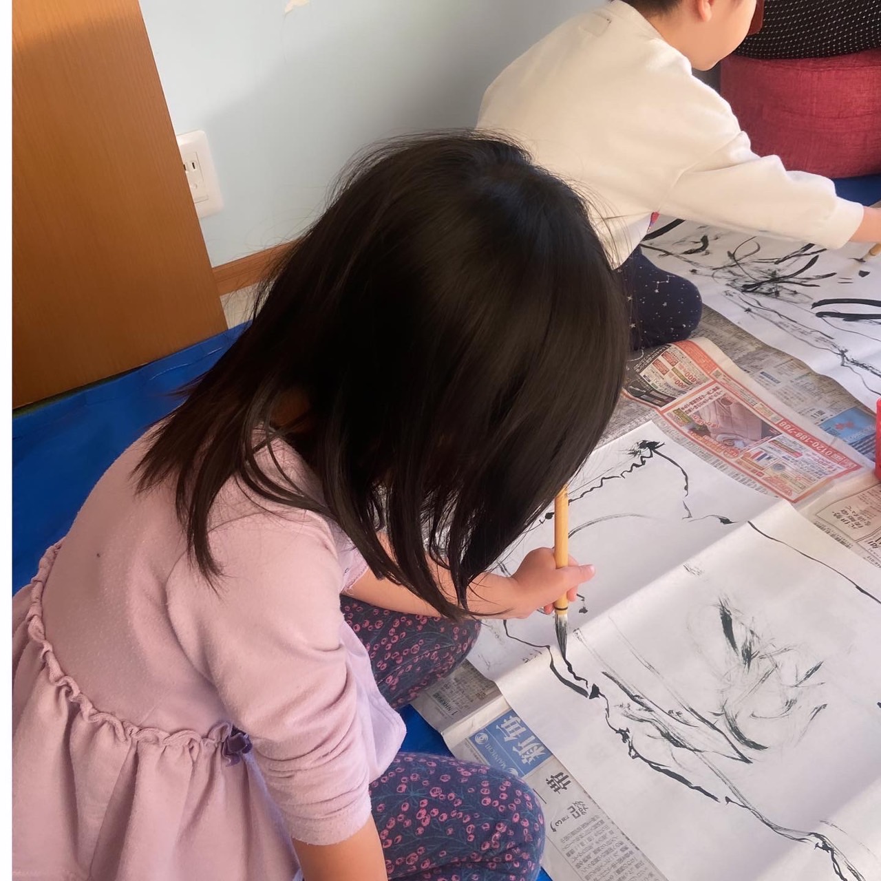 墨汁も筆も初めての子がほとんどでしたが、絵の具とはまた違った味が出て、良い経験ができたのではないかと思います😊
