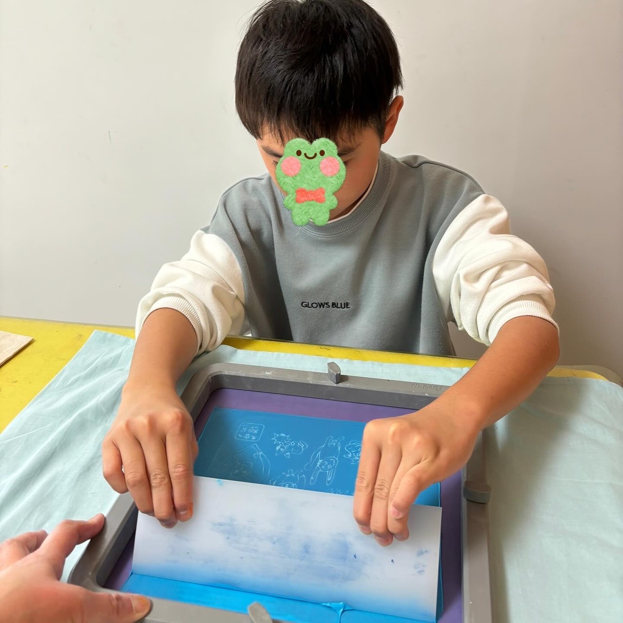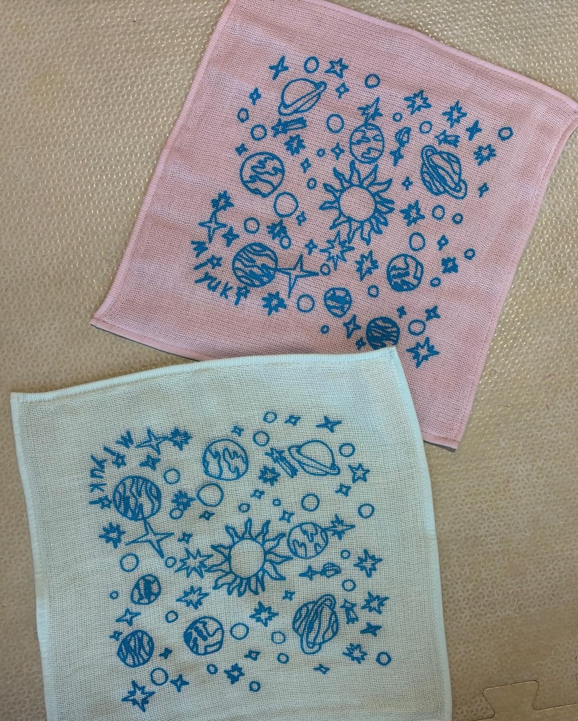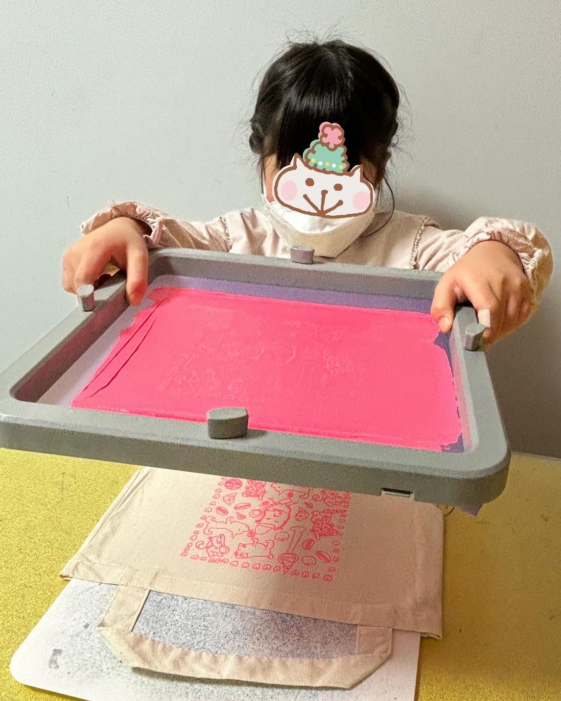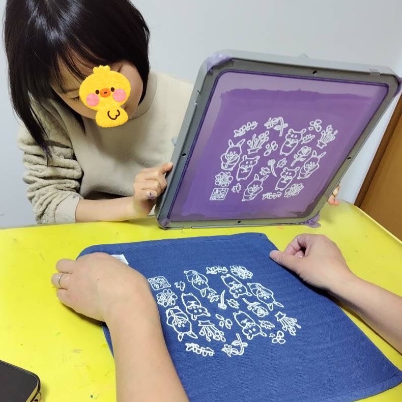 自分でデザインした線画を、Tシャツやトートバッグ、ハンカチなどにプリントしていきます🔥