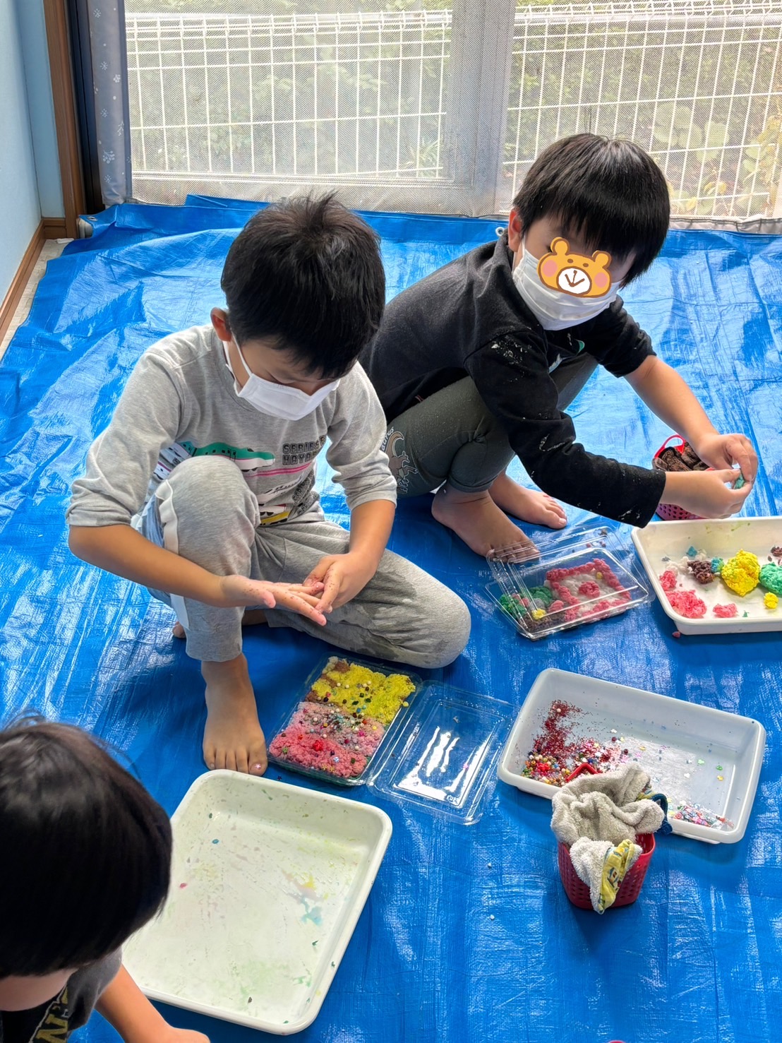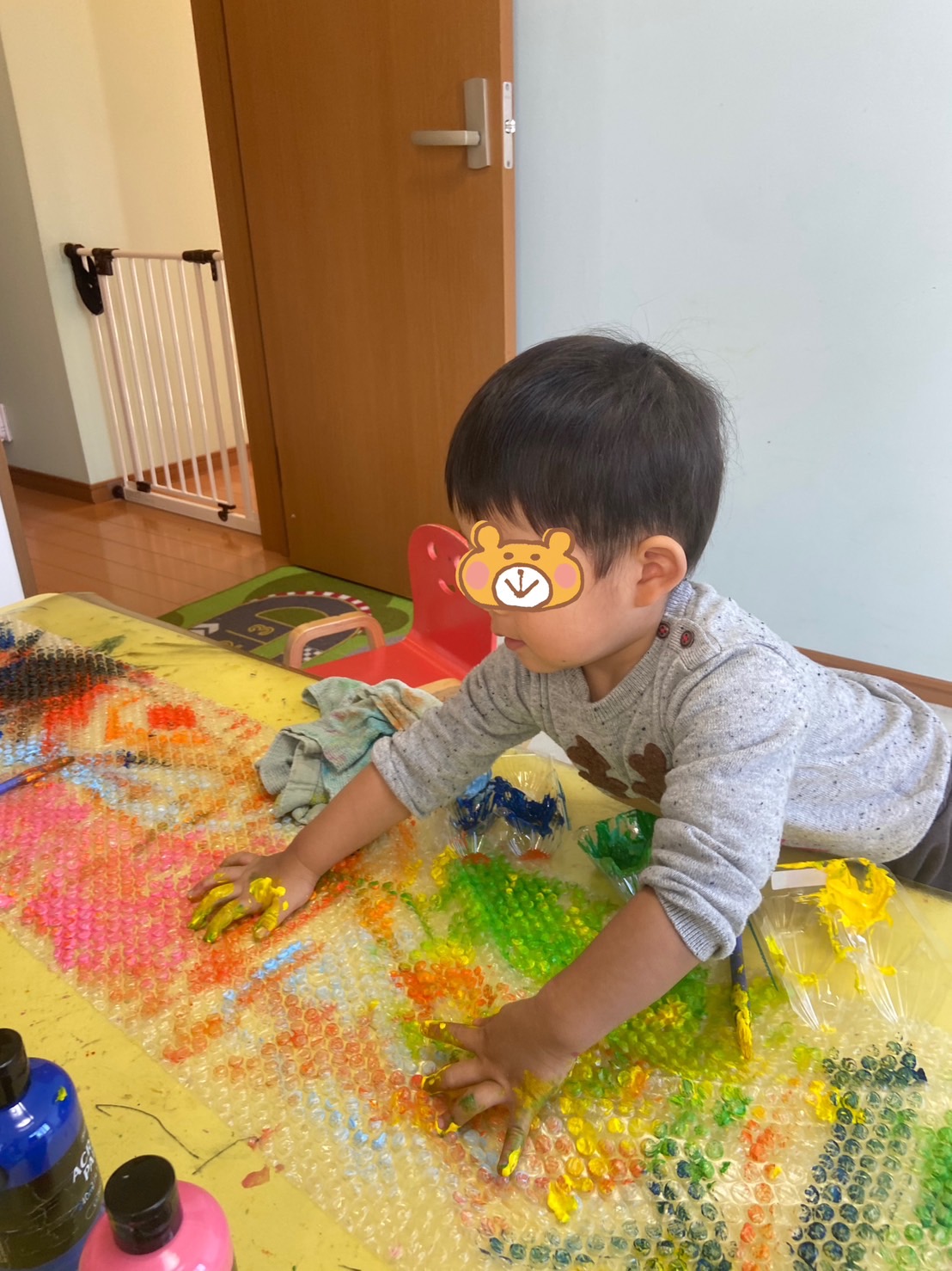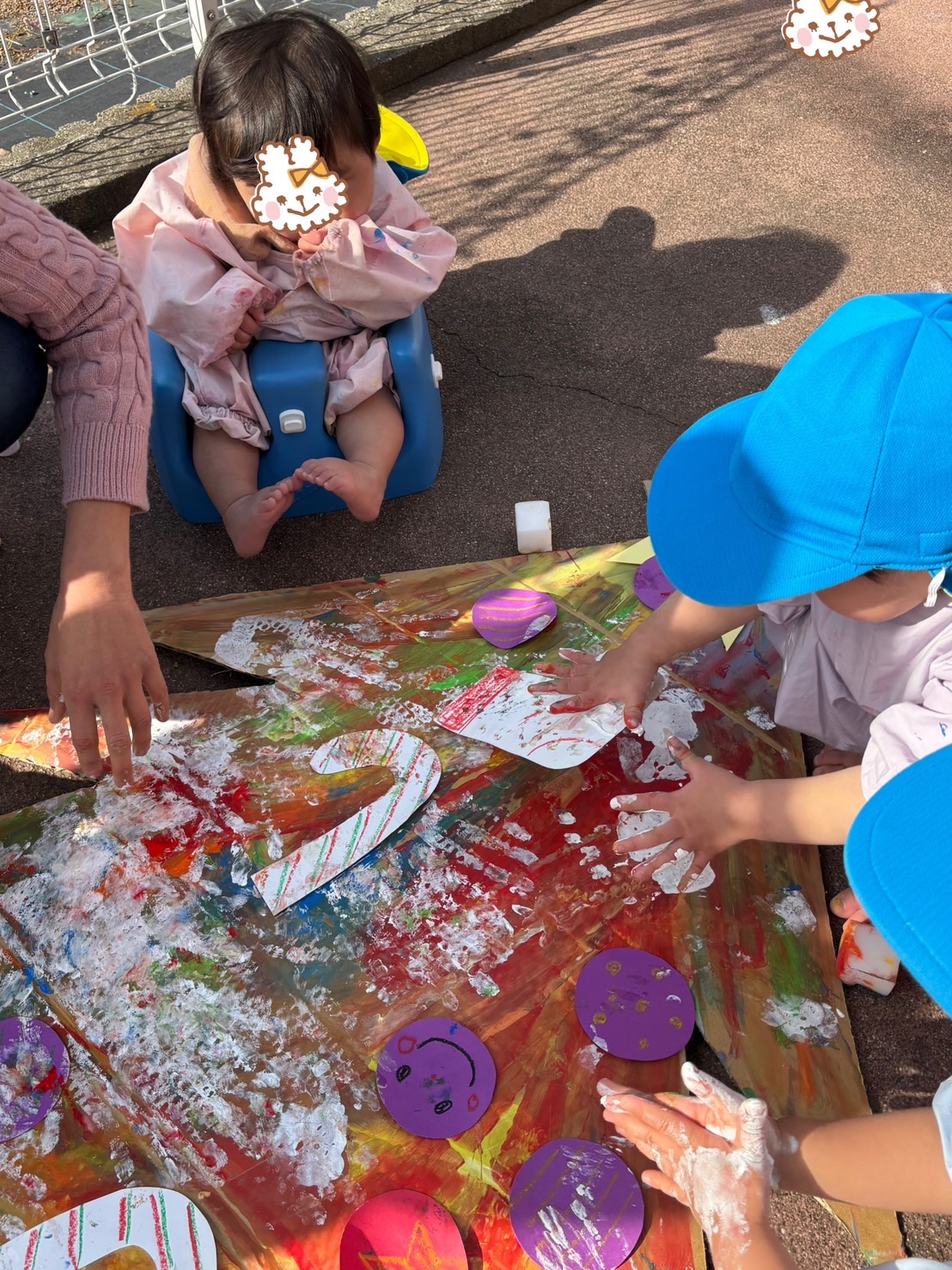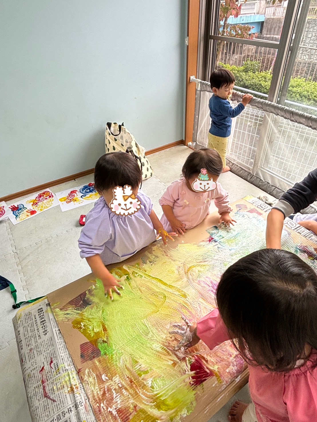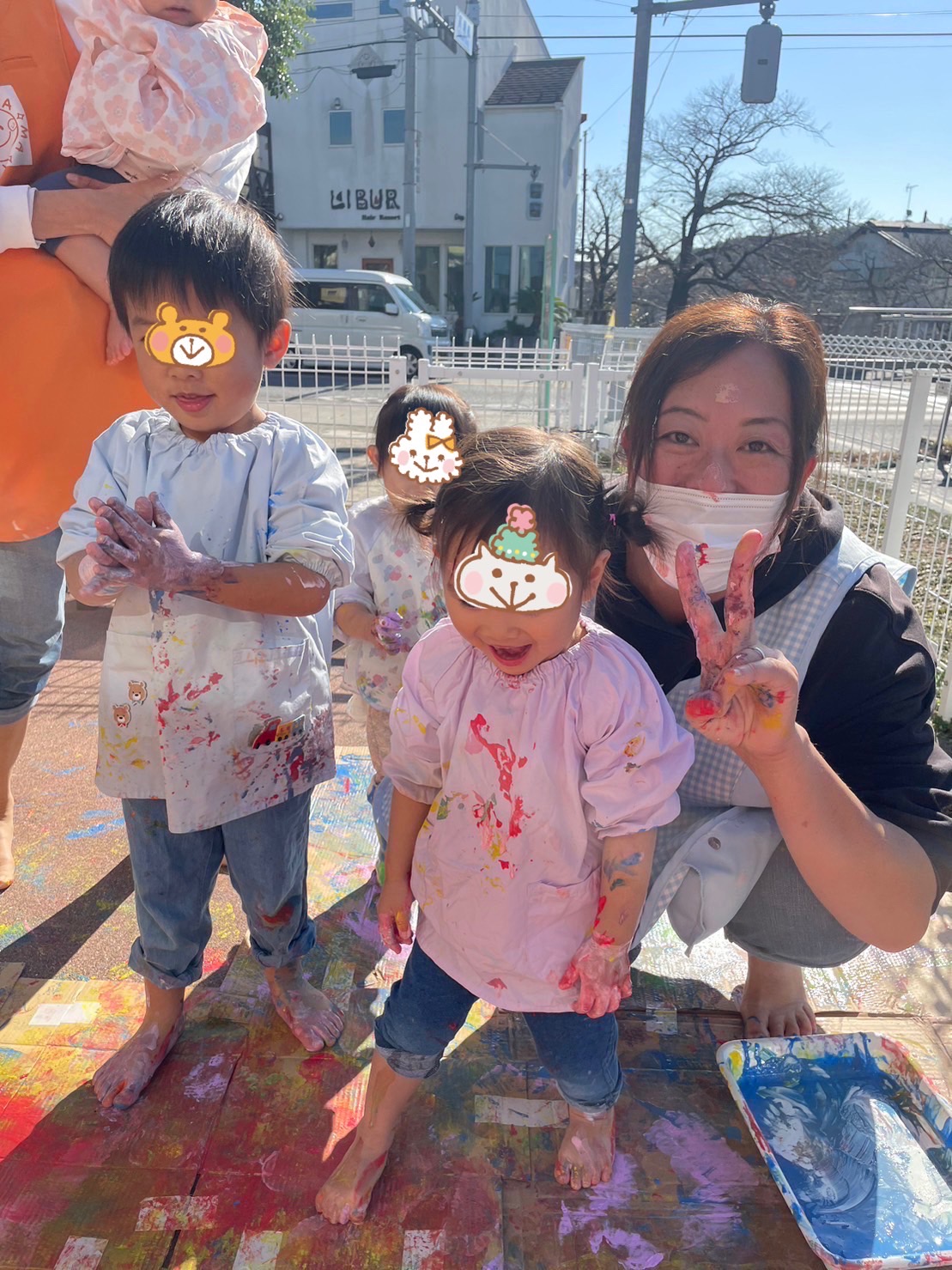ぐちゃぐちゃあそび以外にも、造形遊びはもちろん、季節のあそびや知育あそび、運動あそび。。たくさんの五感を育む遊びを交えて、たくさん遊んだね♪