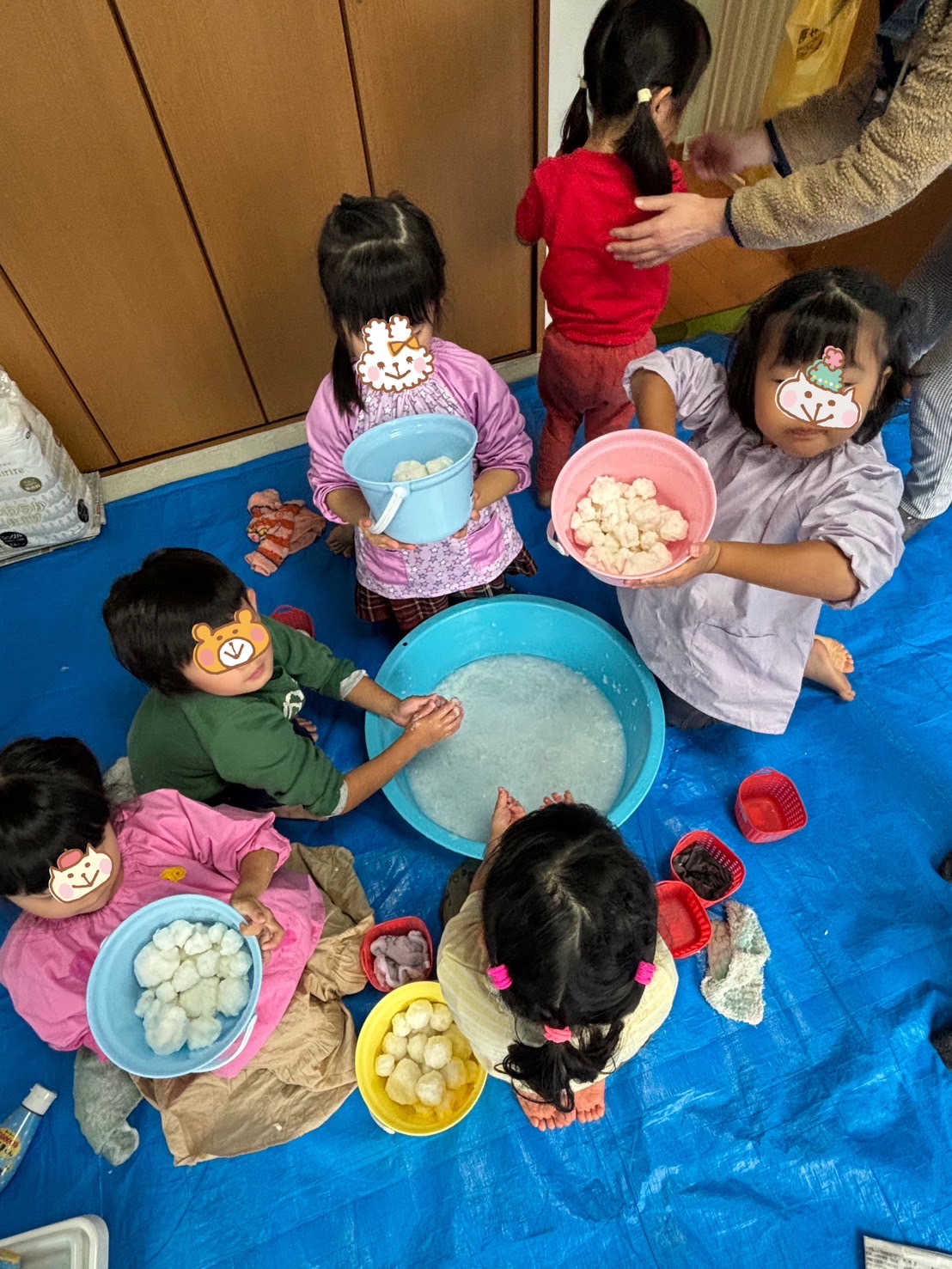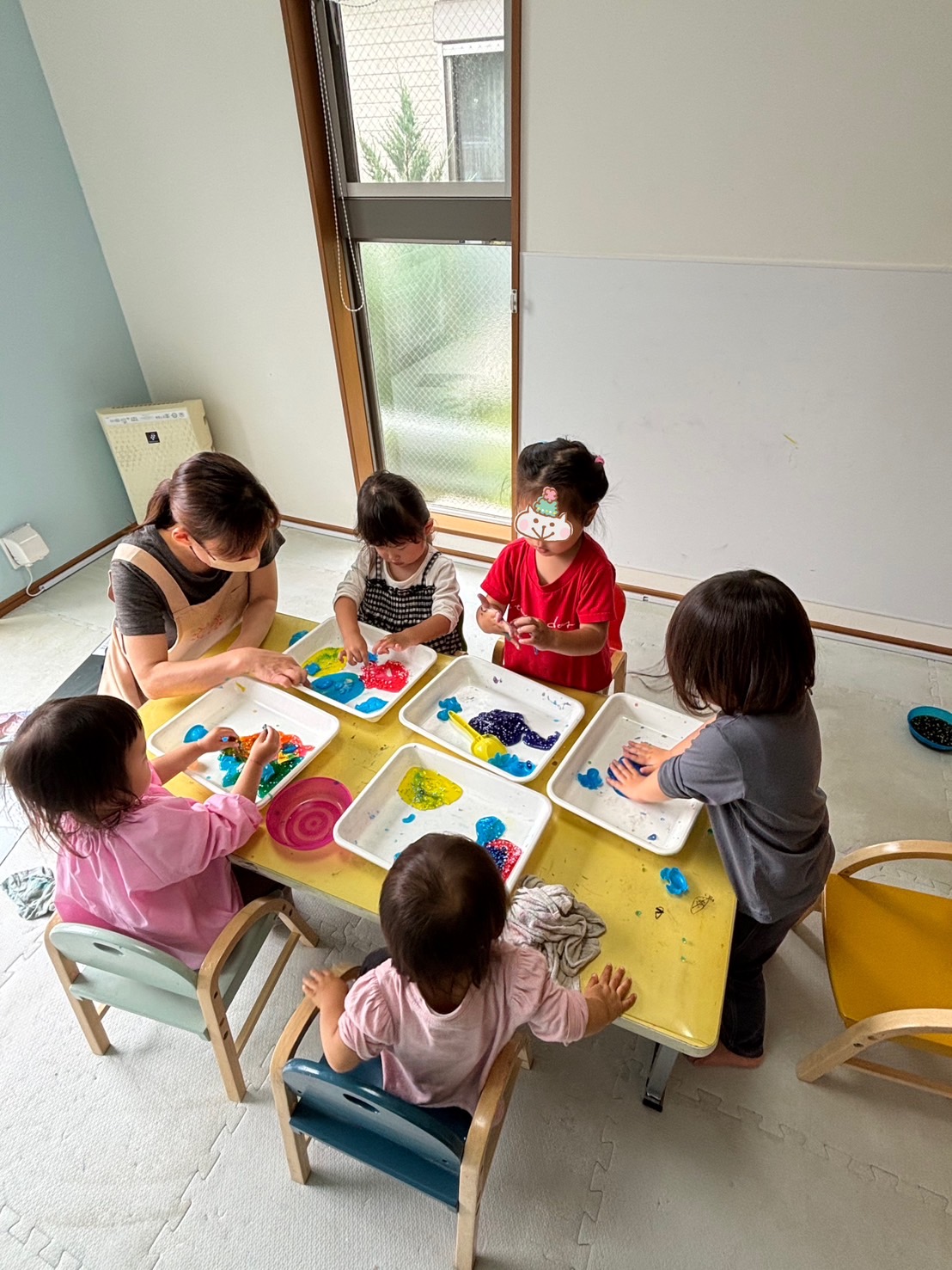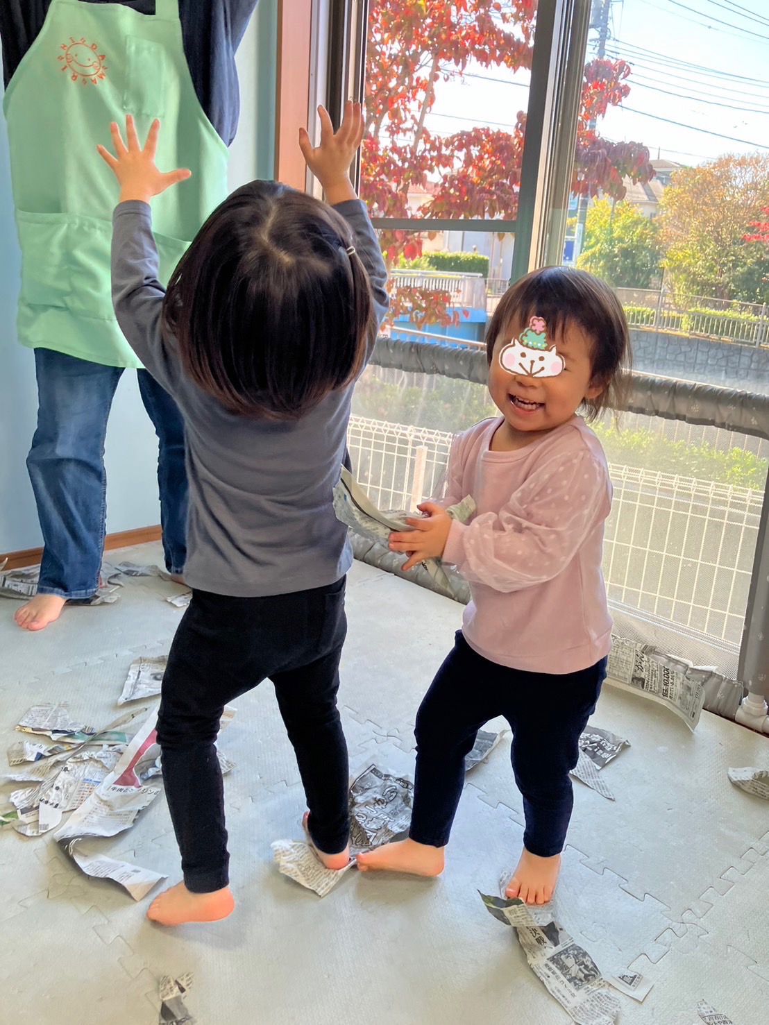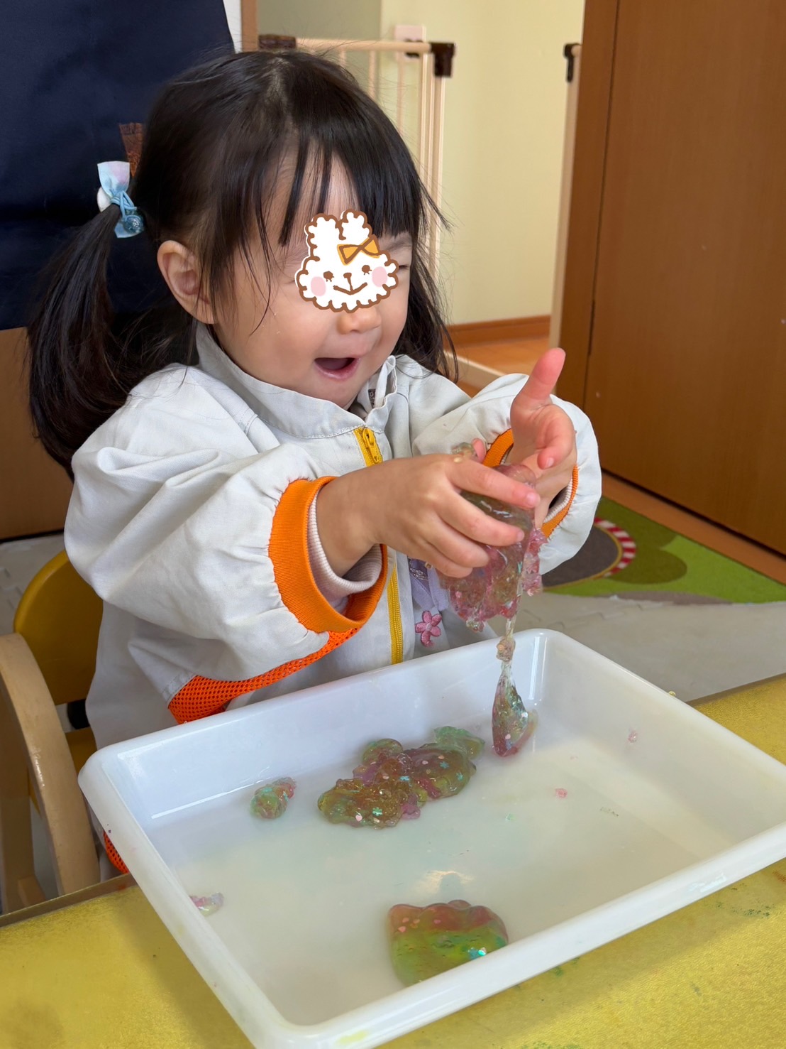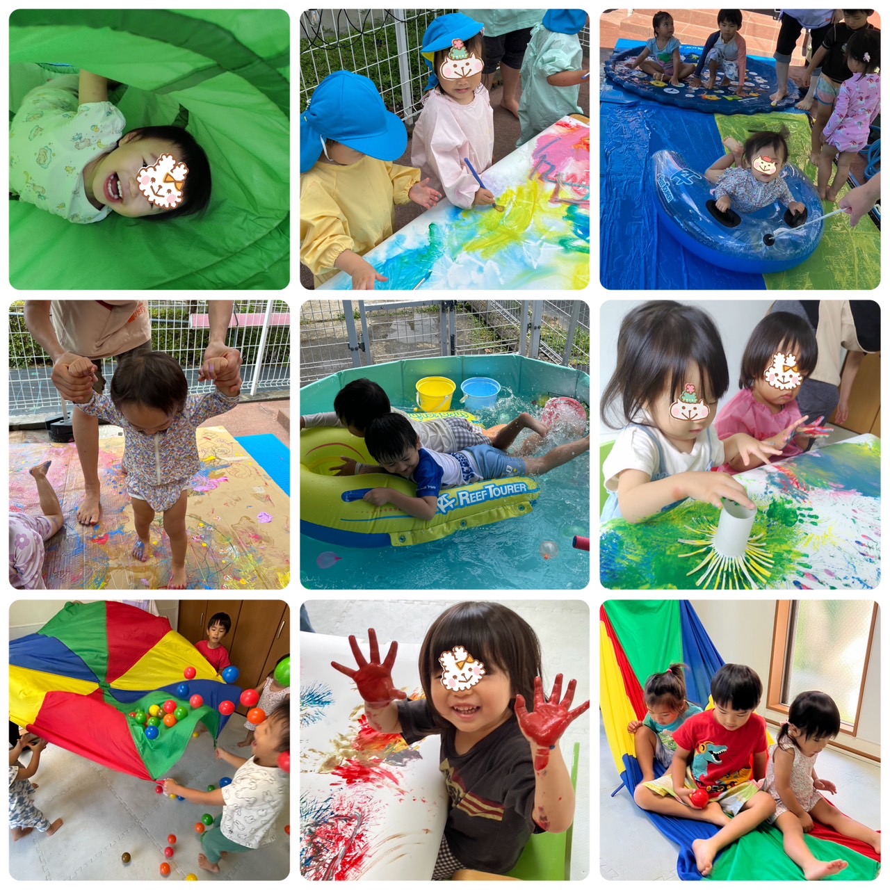 ぐちゃぐちゃあそび以外にも、造形遊びはもちろん、季節のあそびや知育あそび、運動あそび。。たくさんの五感を育む遊びを交えて、たくさん遊んだね♪