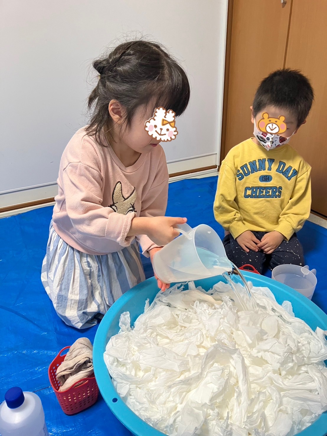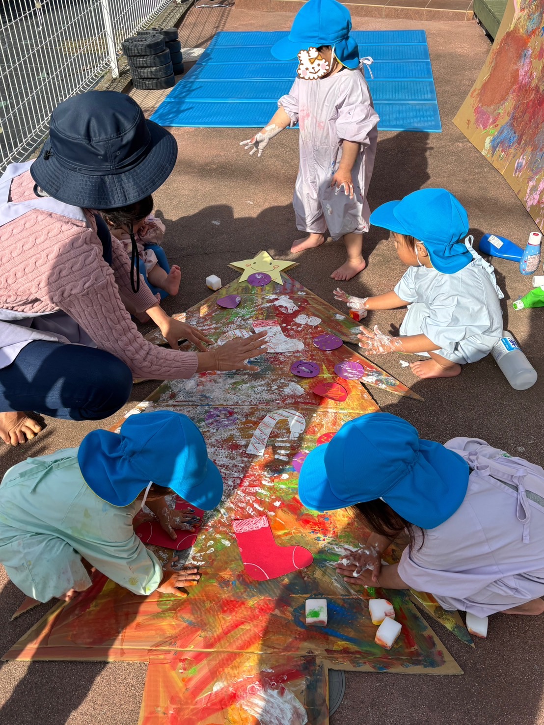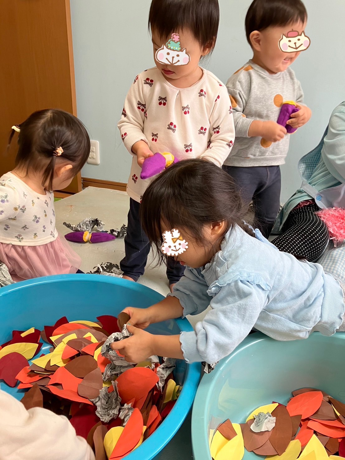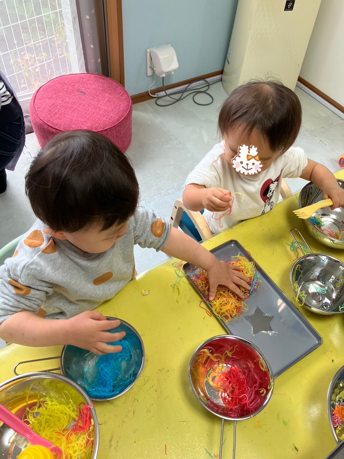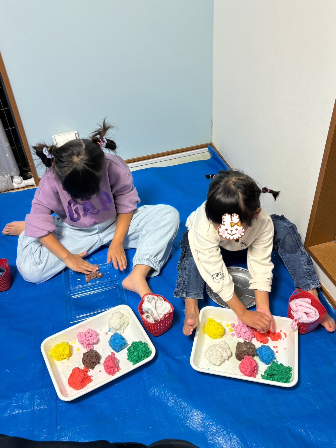 ぐちゃぐちゃあそび以外にも、造形遊びはもちろん、季節のあそびや知育あそび、運動あそび。。たくさんの五感を育む遊びを交えて、たくさん遊んだね♪