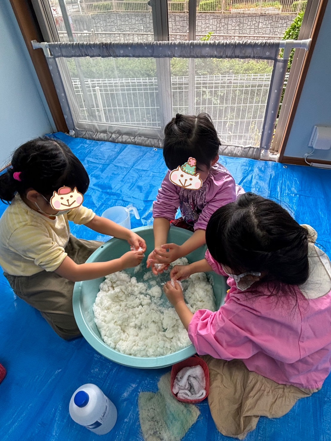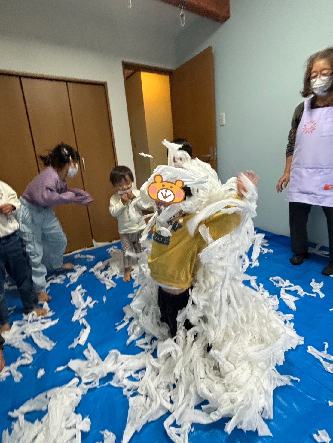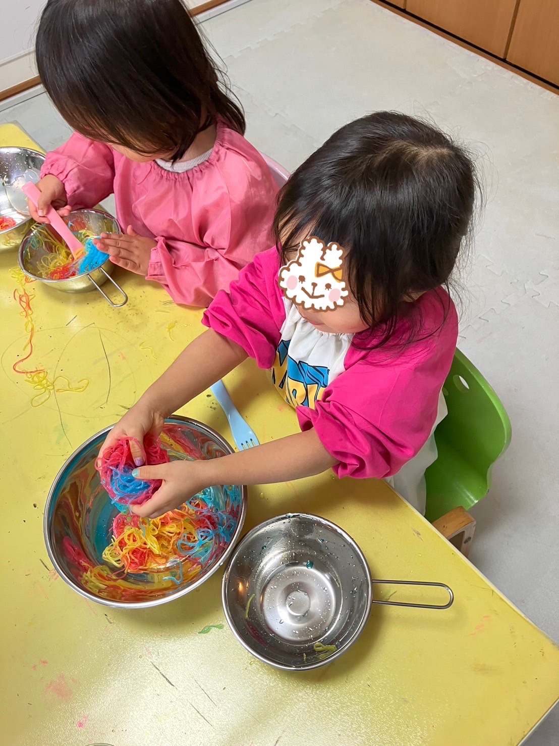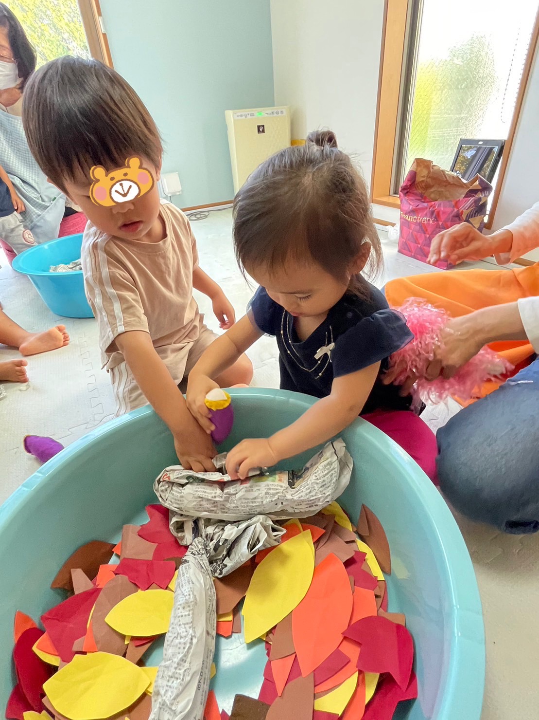 ぐちゃぐちゃあそび以外にも、造形遊びはもちろん、季節のあそびや知育あそび、運動あそび。。たくさんの五感を育む遊びを交えて、たくさん遊んだね♪
