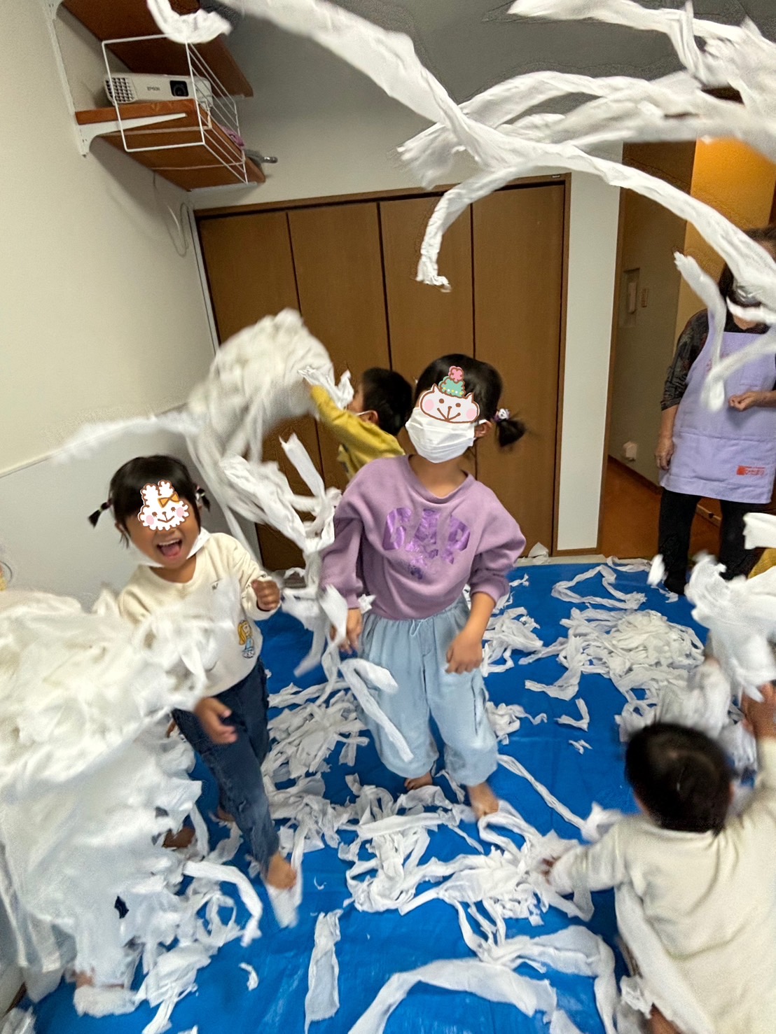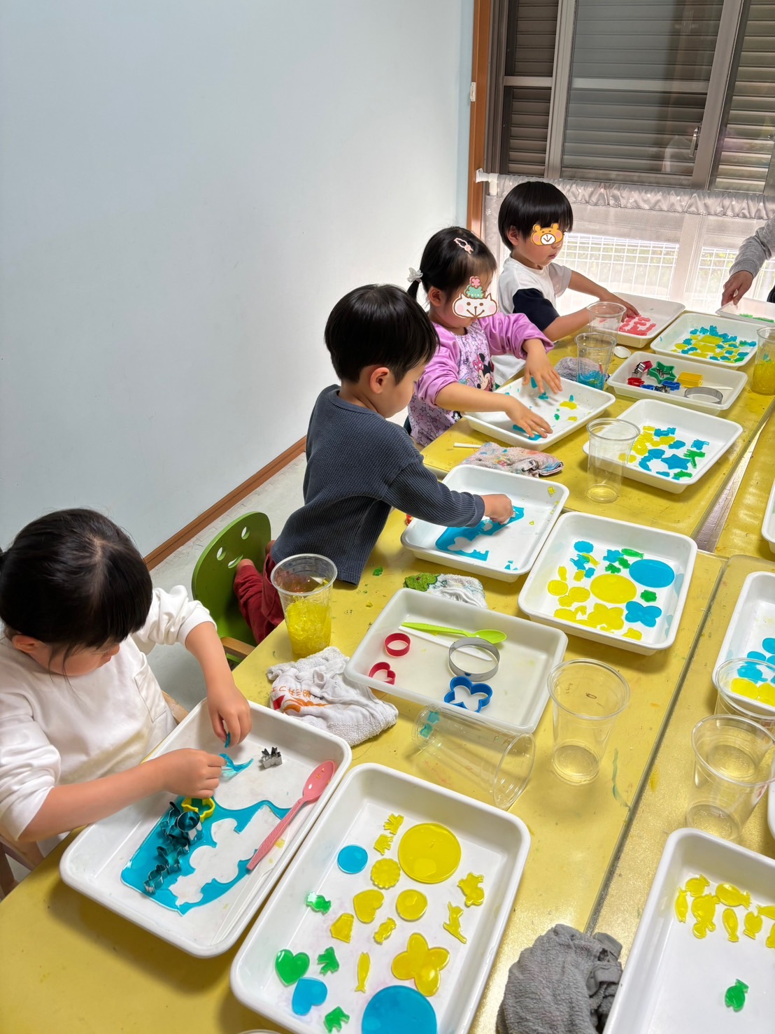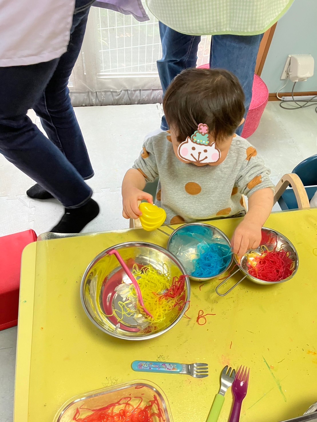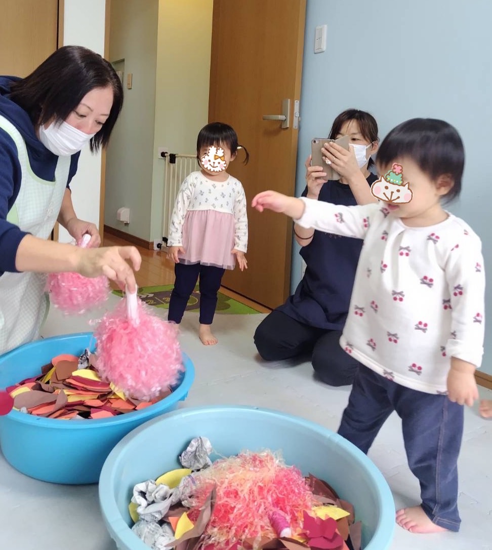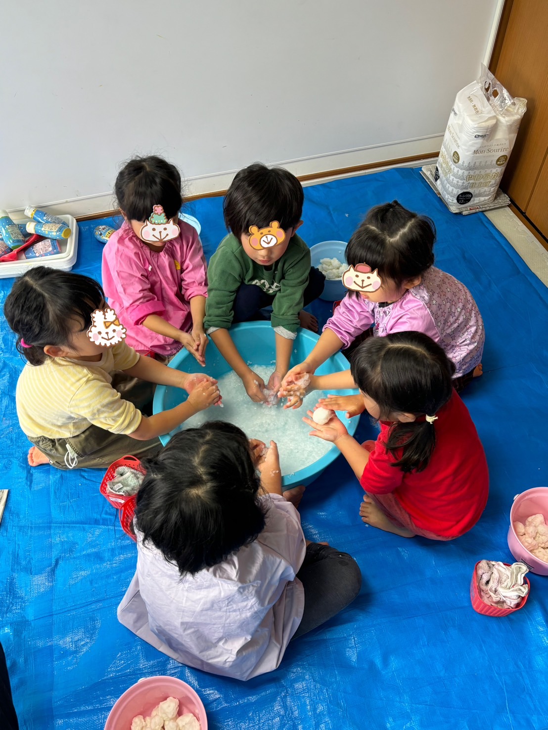 ぐちゃぐちゃあそび以外にも、造形遊びはもちろん、季節のあそびや知育あそび、運動あそび。。たくさんの五感を育む遊びを交えて、たくさん遊んだね♪