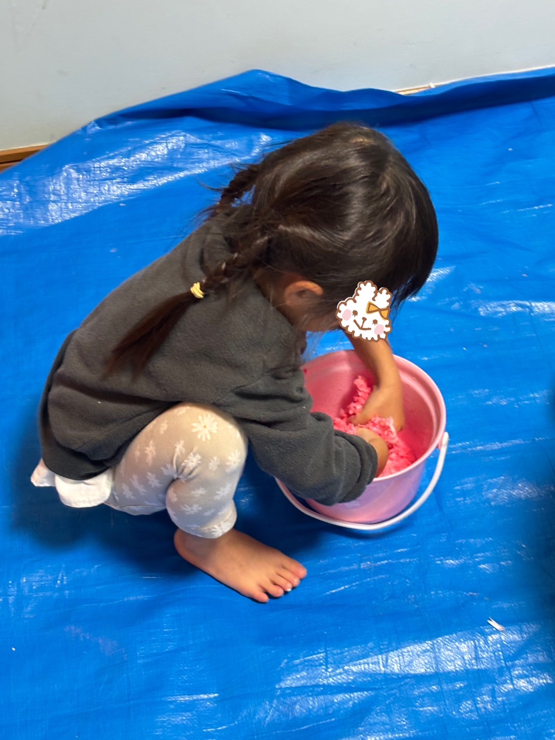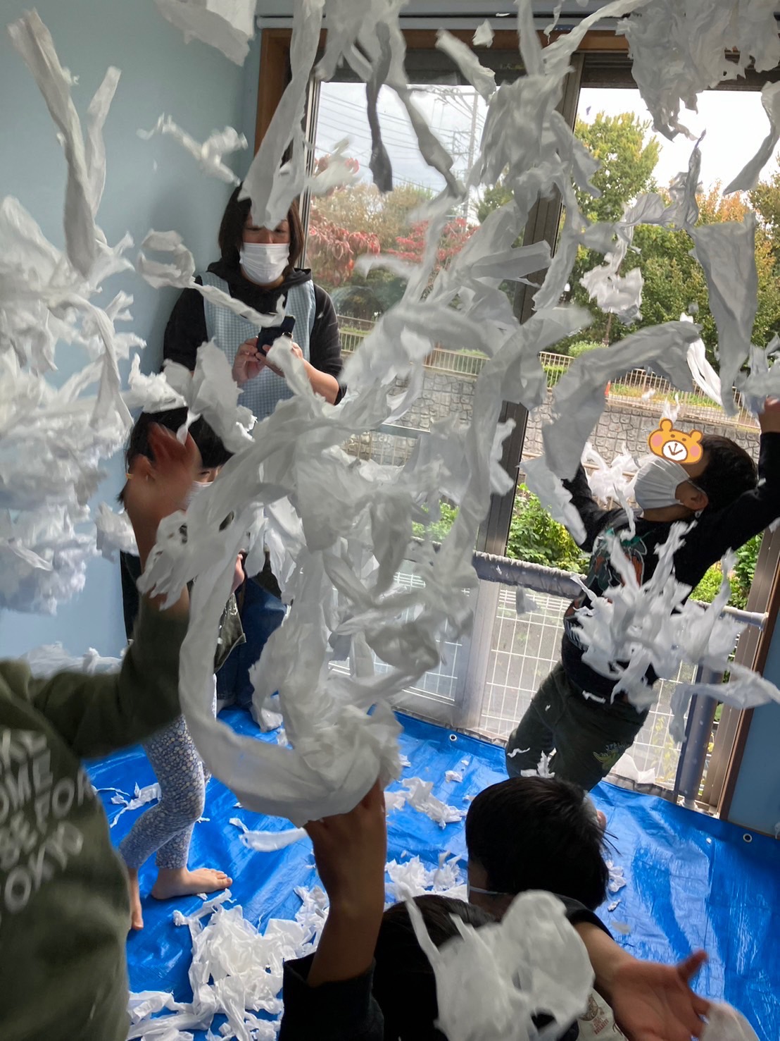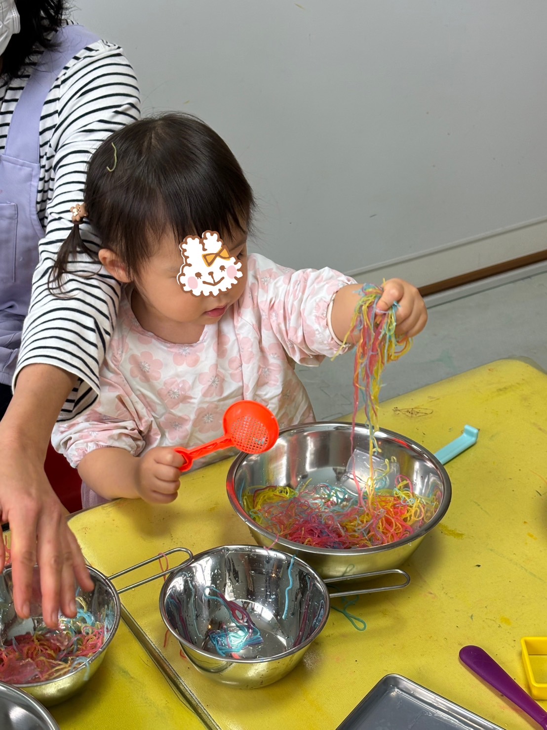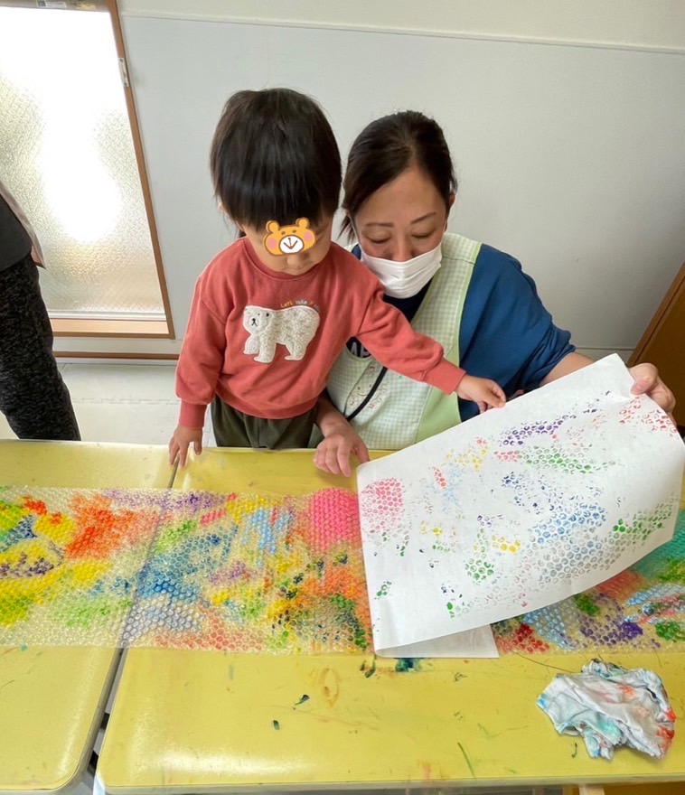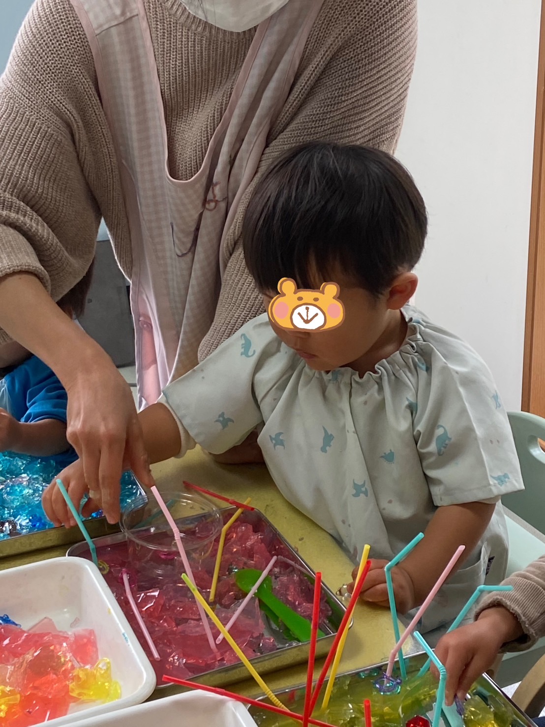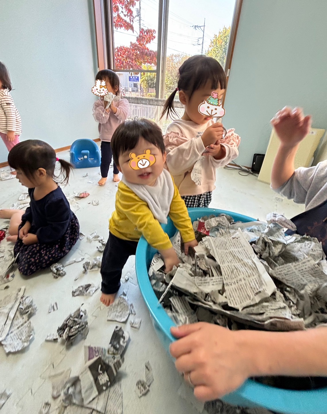 ぐちゃぐちゃあそび以外にも、造形遊びはもちろん、季節のあそびや知育あそび、運動あそび。。たくさんの五感を育む遊びを交えて、たくさん遊んだね♪