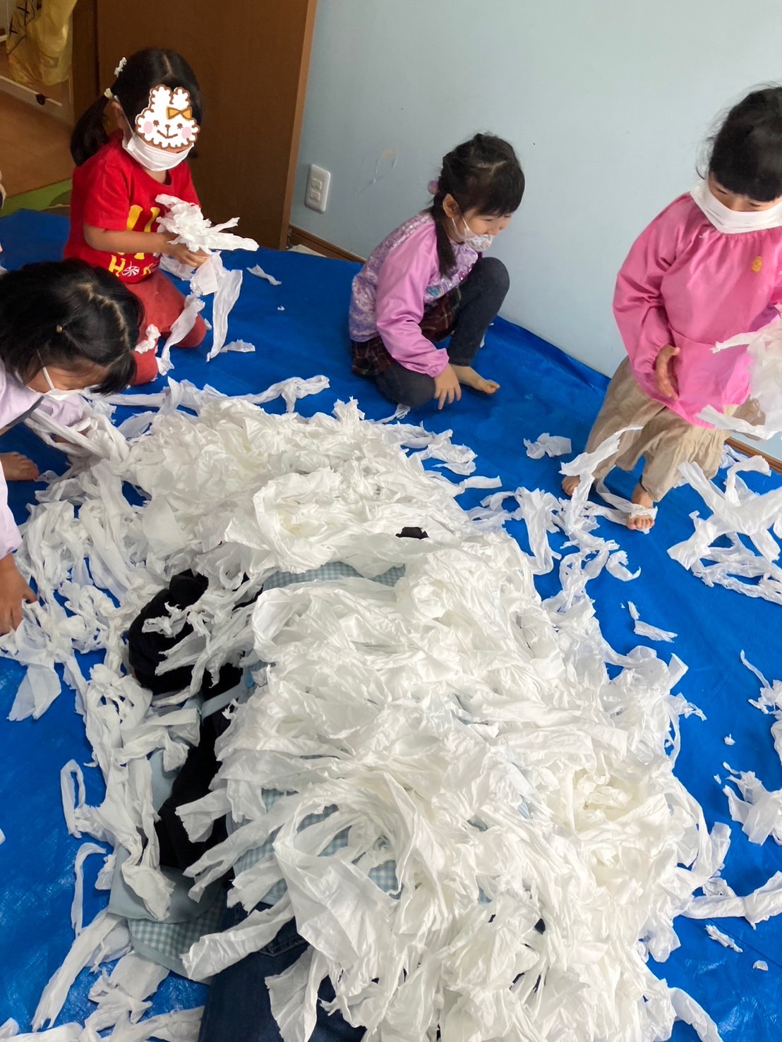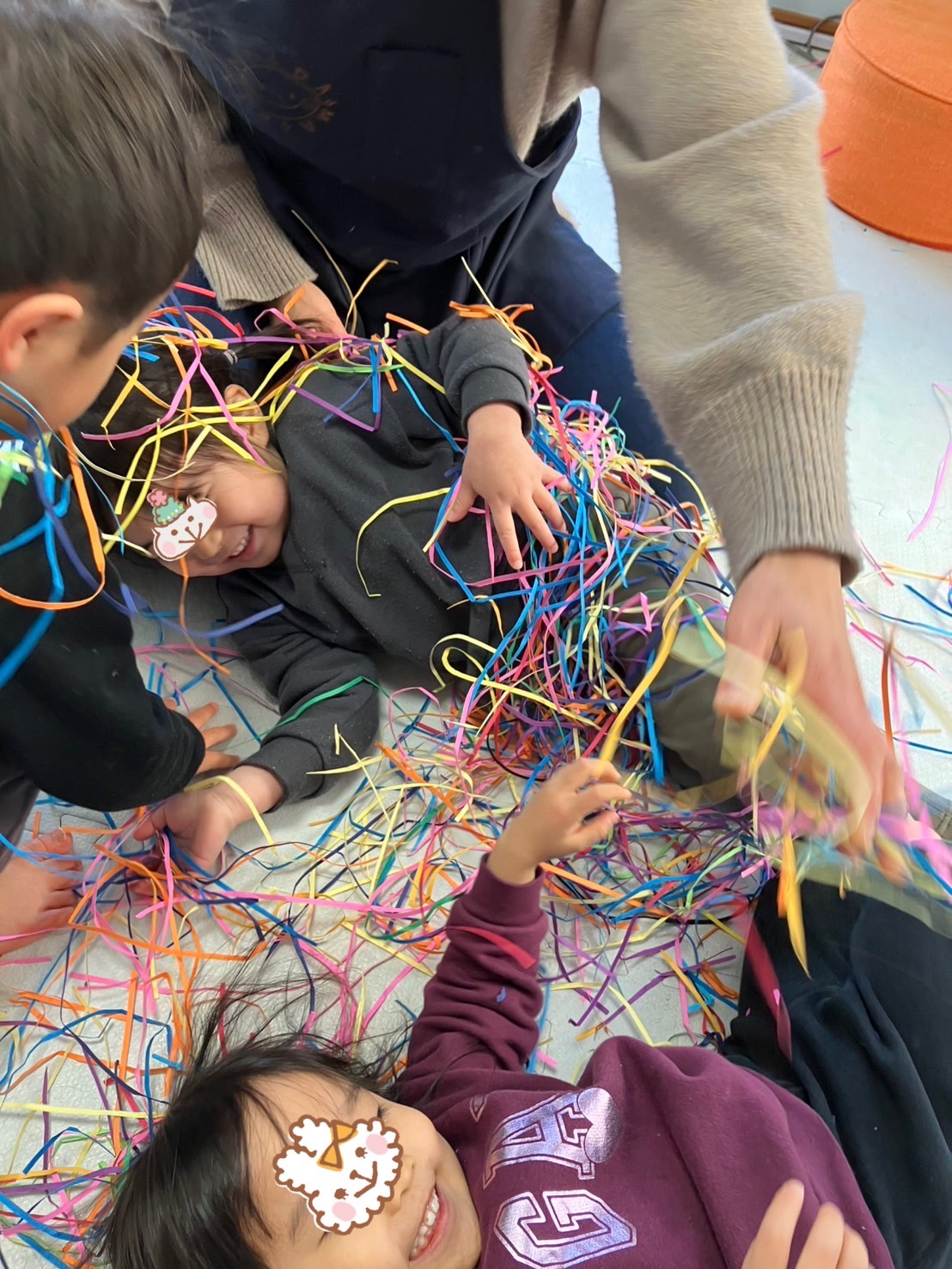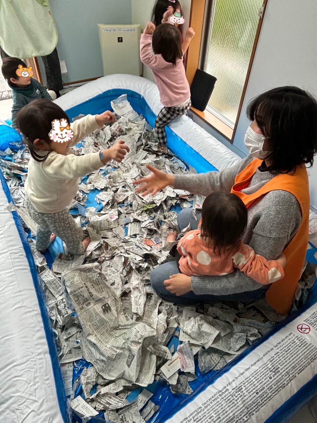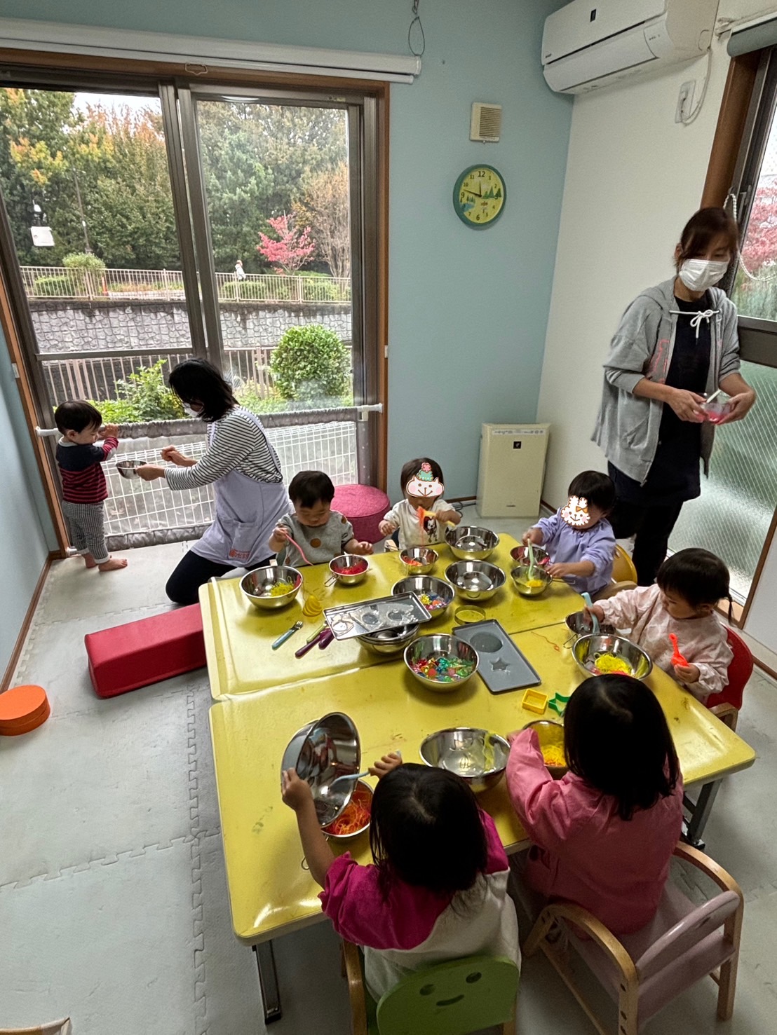 ぐちゃぐちゃあそび以外にも、造形遊びはもちろん、季節のあそびや知育あそび、運動あそび。。たくさんの五感を育む遊びを交えて、たくさん遊んだね♪