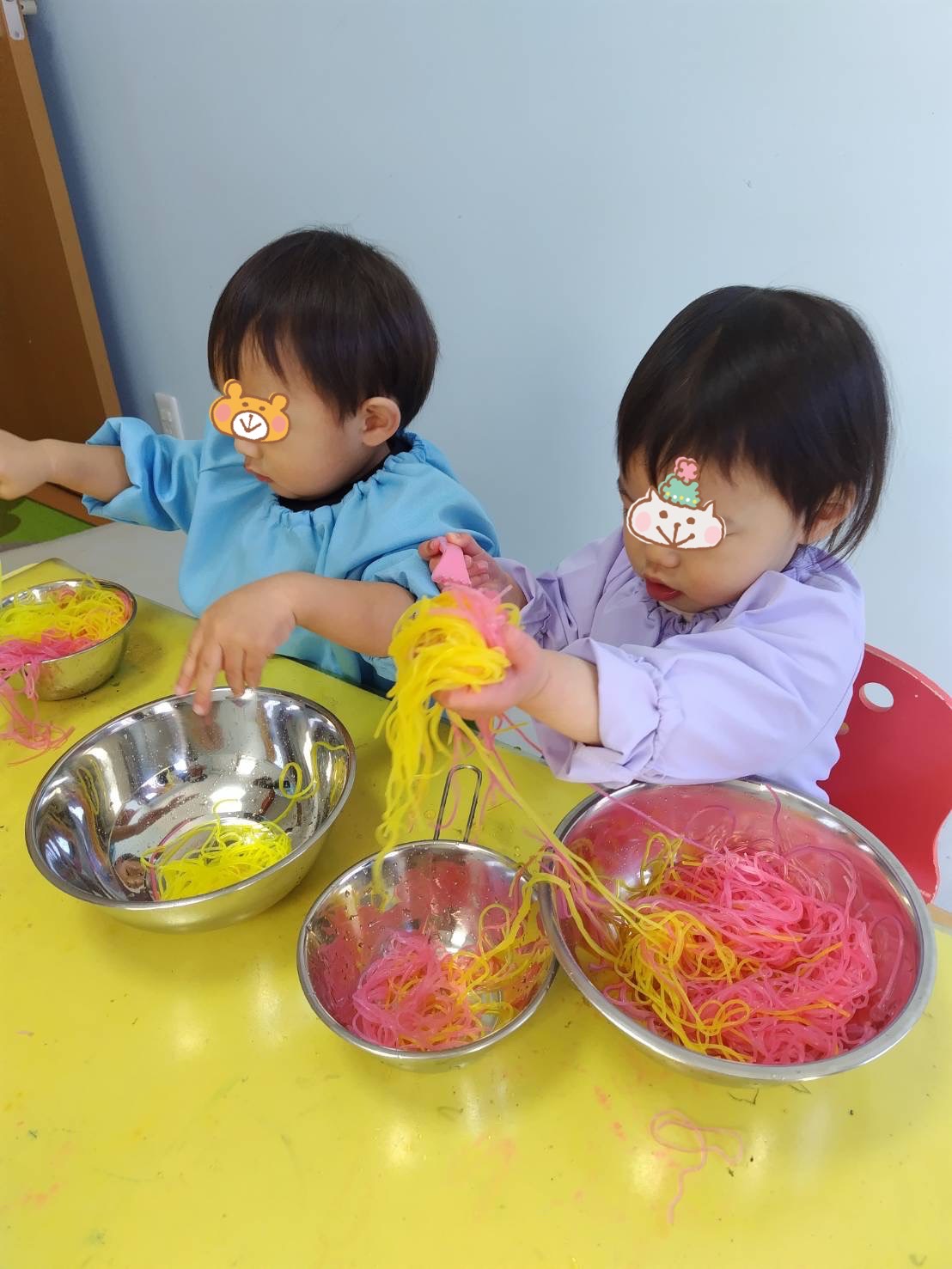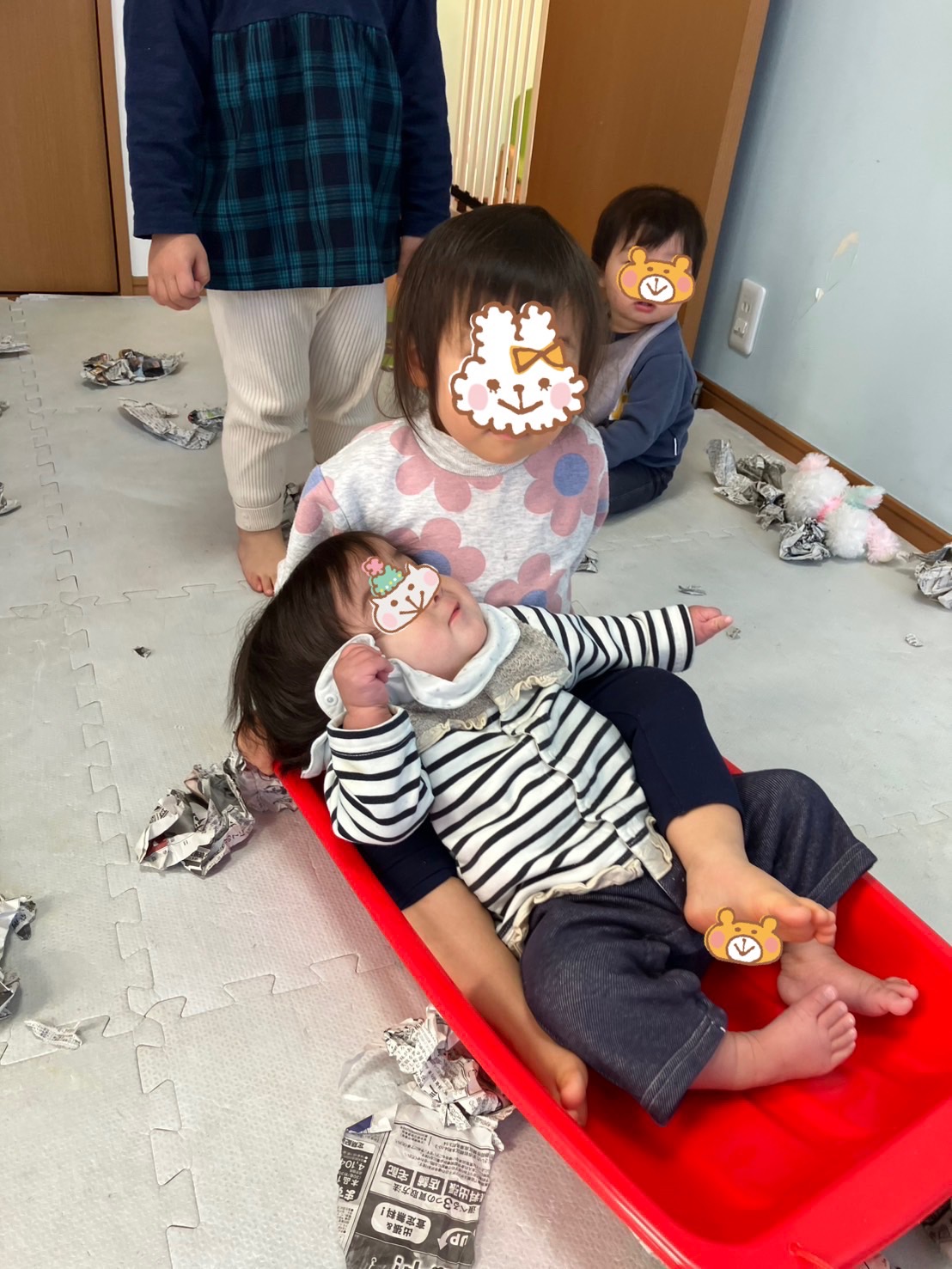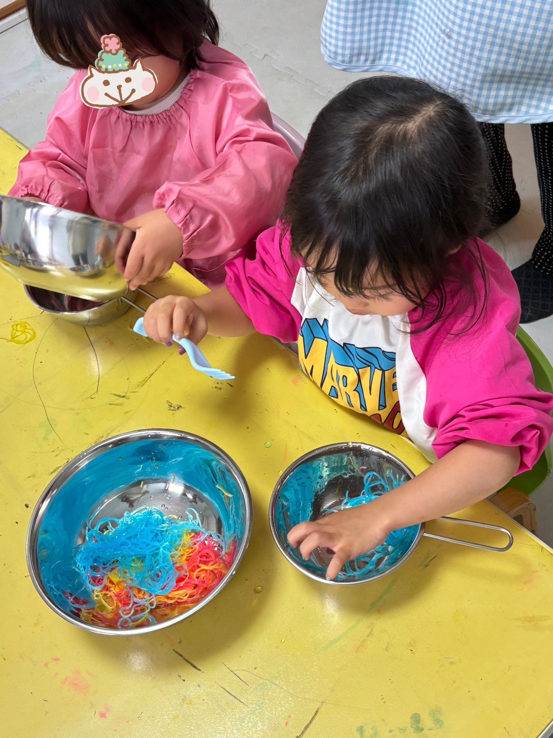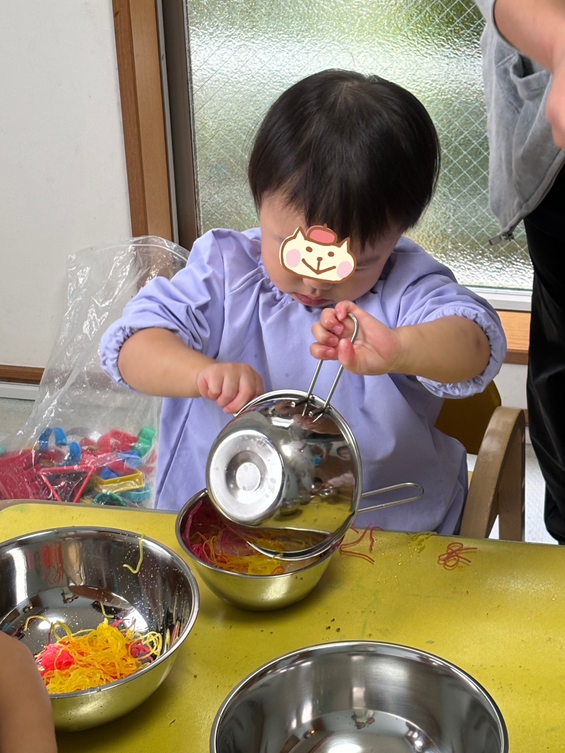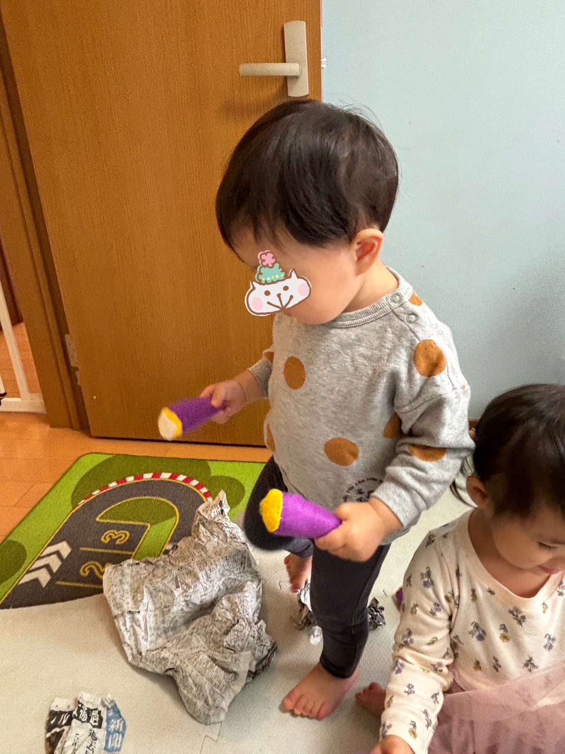 ぐちゃぐちゃあそび以外にも、造形遊びはもちろん、季節のあそびや知育あそび、運動あそび。。たくさんの五感を育む遊びを交えて、たくさん遊んだね♪