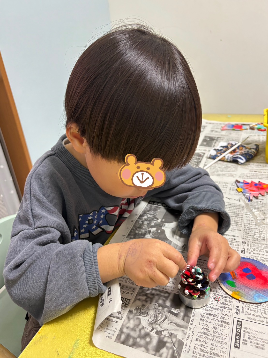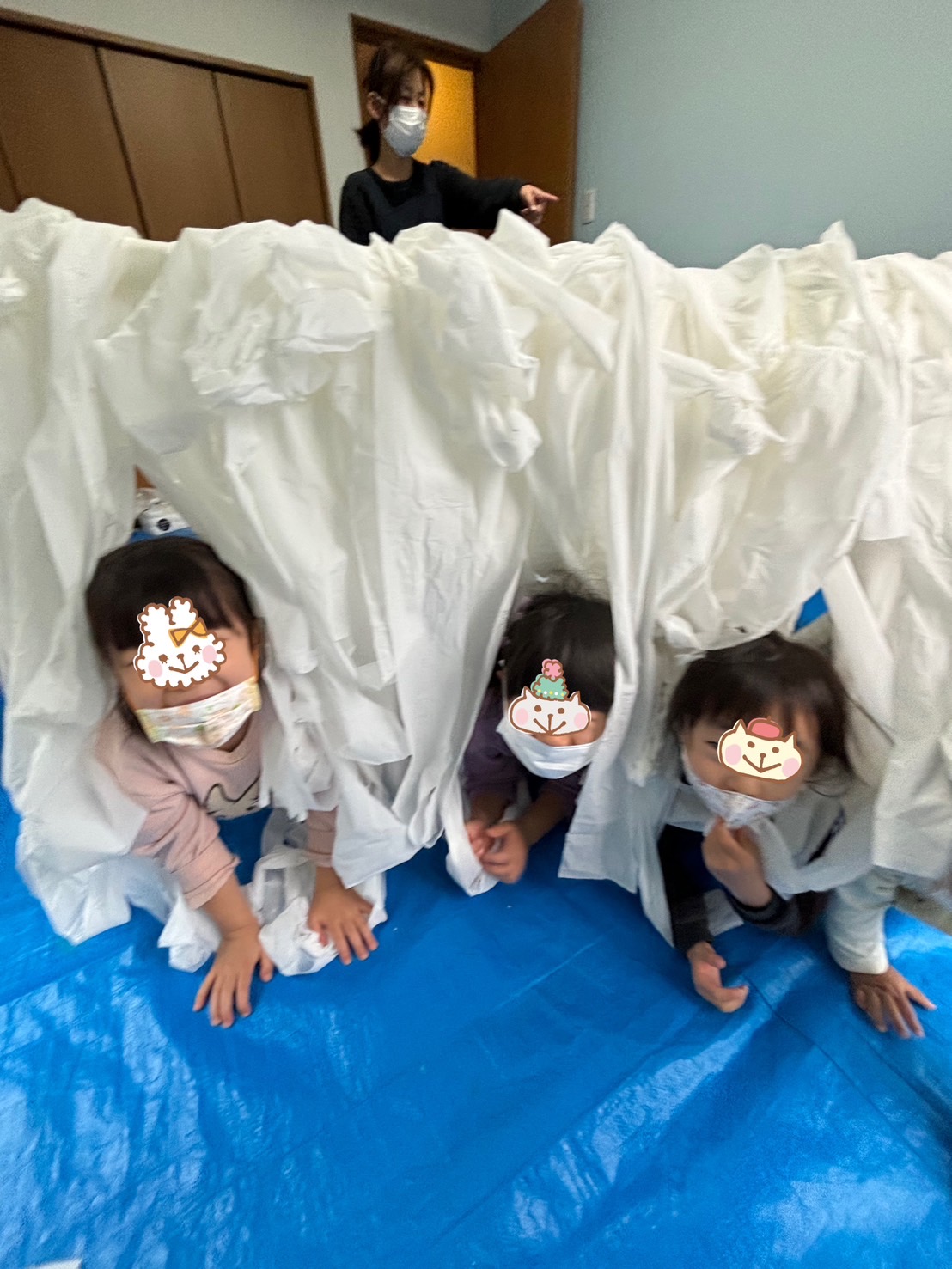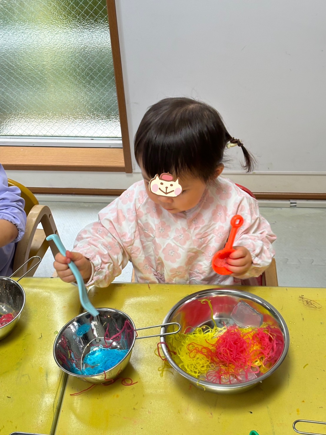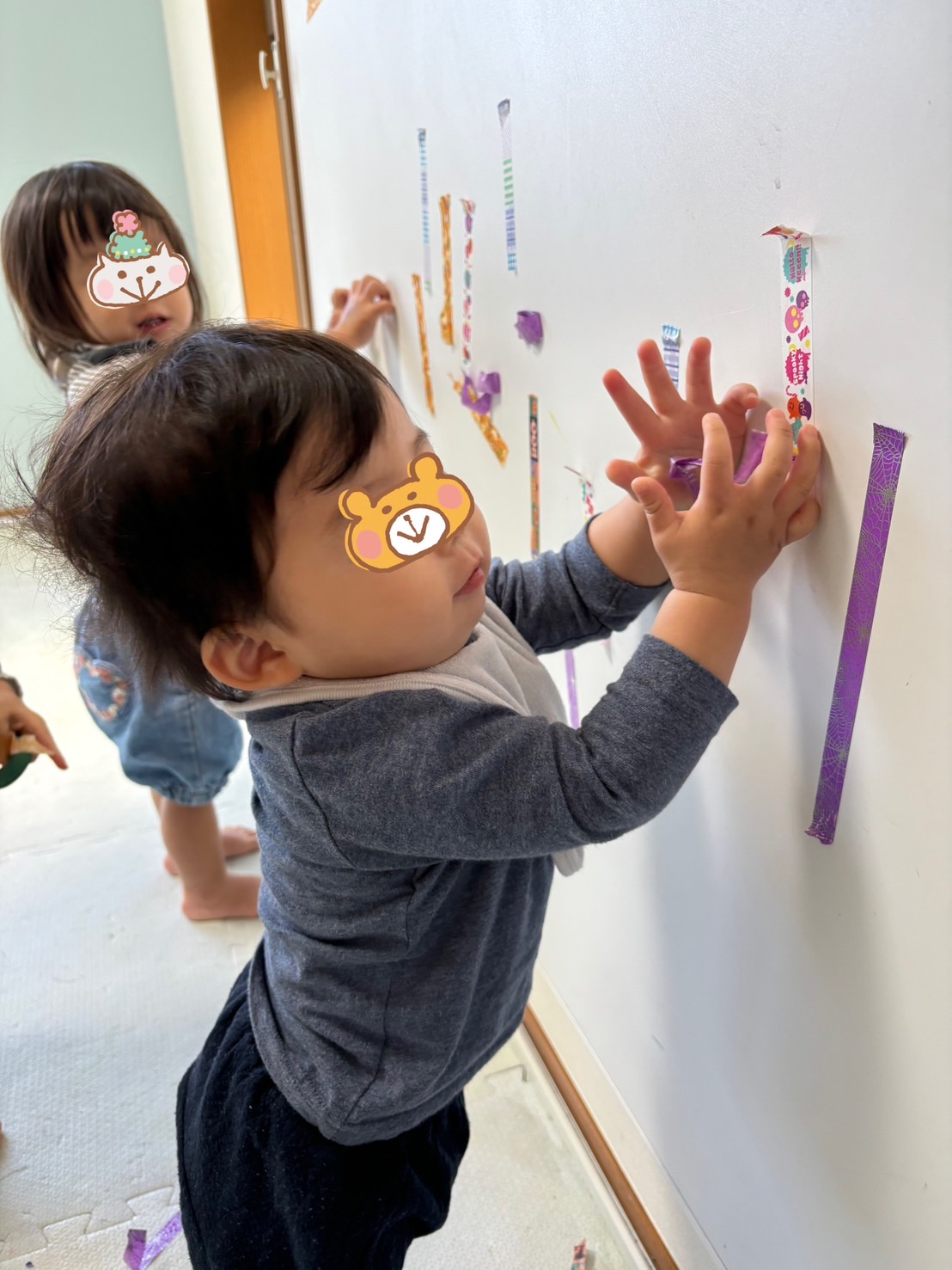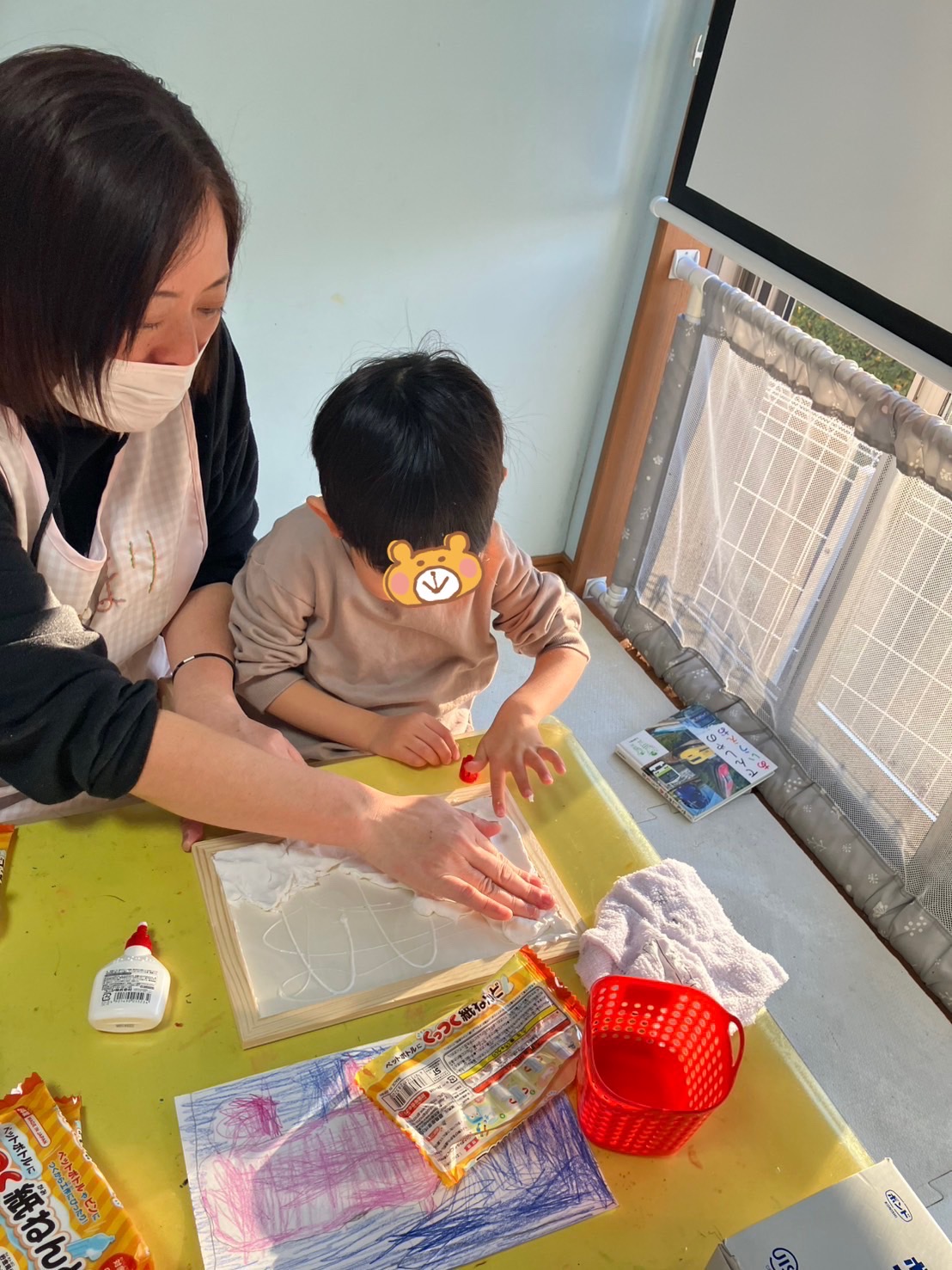 ぐちゃぐちゃあそび以外にも、造形遊びはもちろん、季節のあそびや知育あそび、運動あそび。。たくさんの五感を育む遊びを交えて、たくさん遊んだね♪