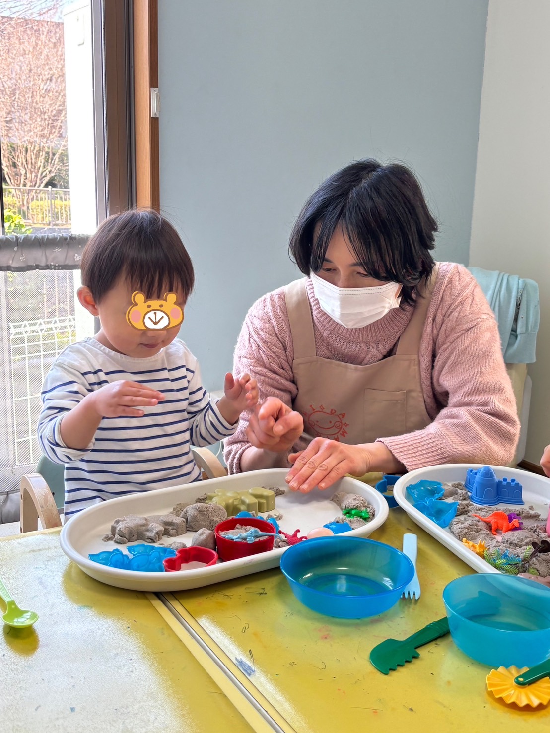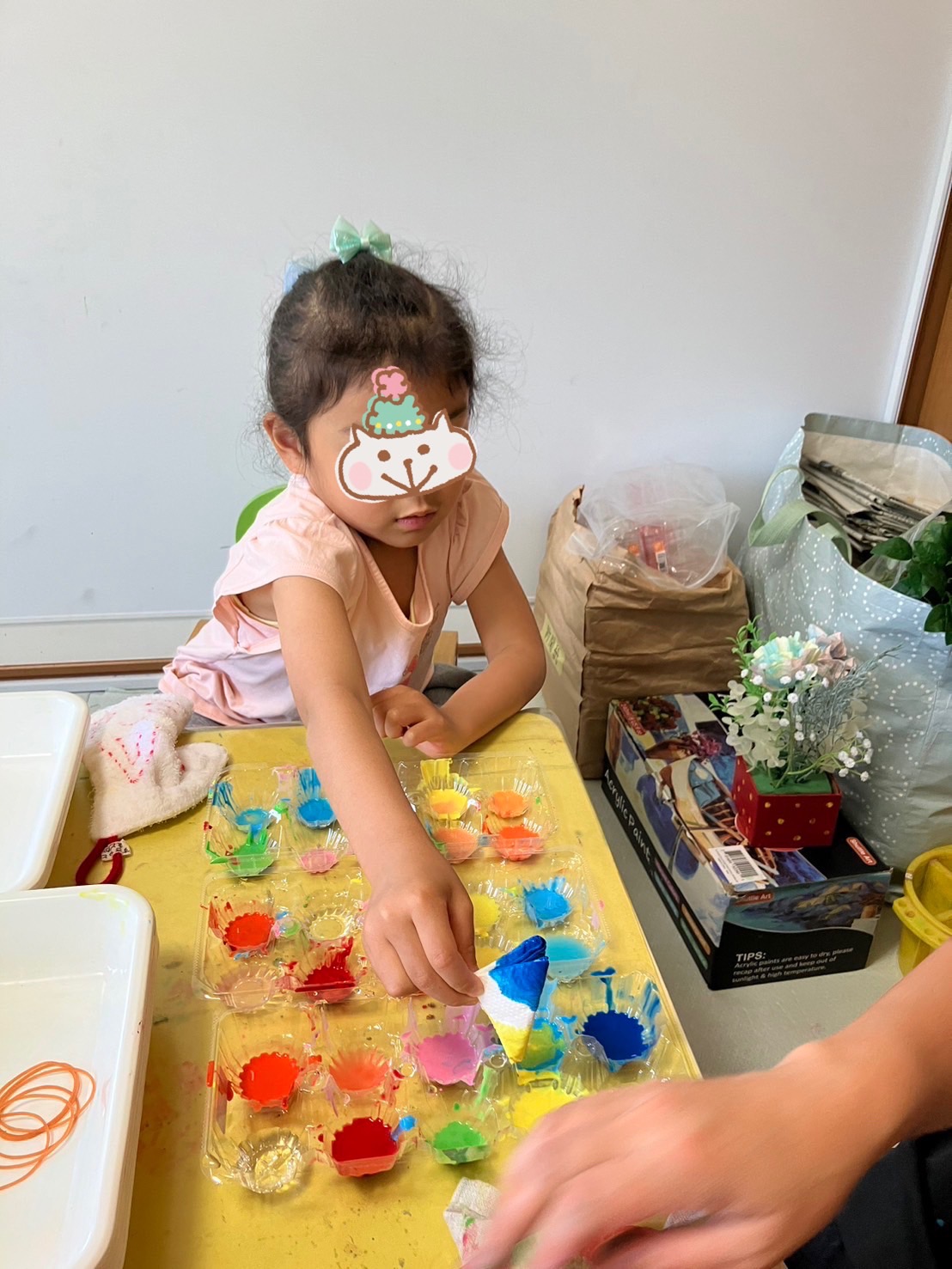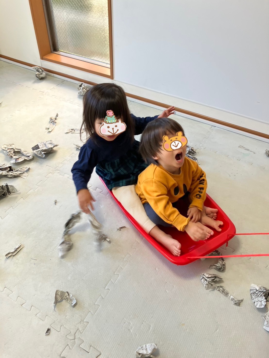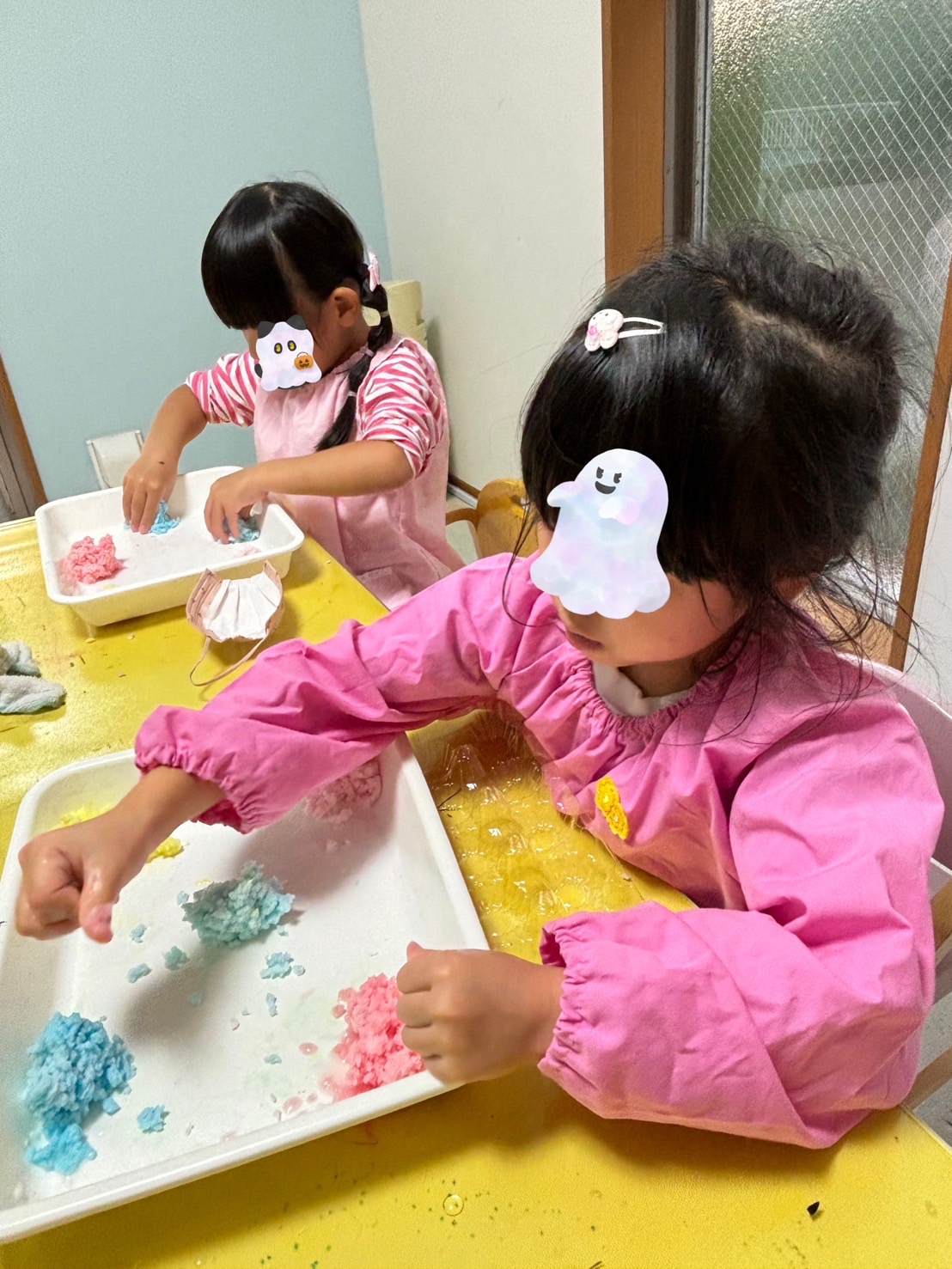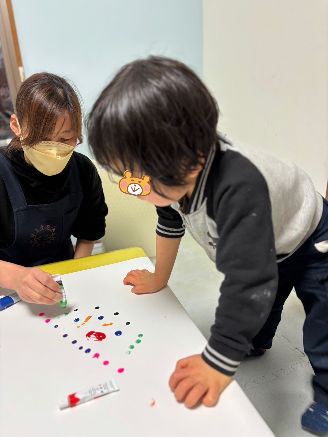 ぐちゃぐちゃあそび以外にも、造形遊びはもちろん、季節のあそびや知育あそび、運動あそび。。たくさんの五感を育む遊びを交えて、たくさん遊んだね♪