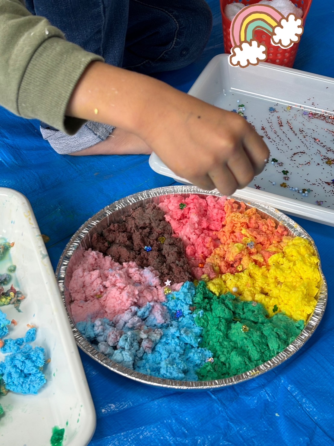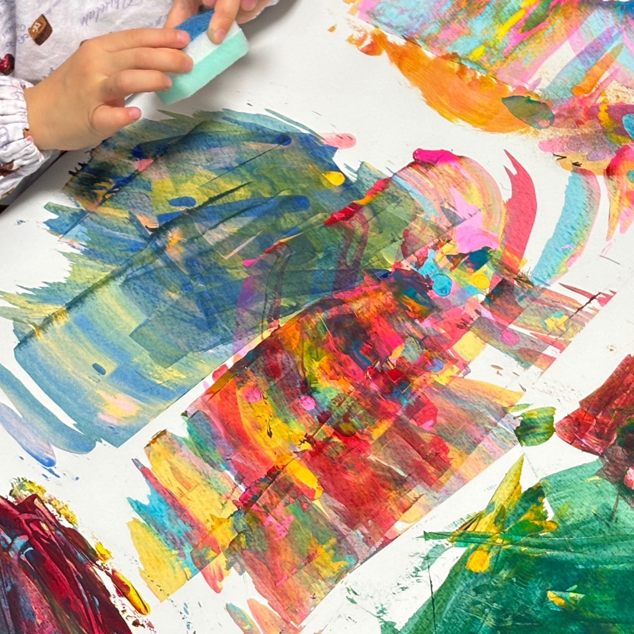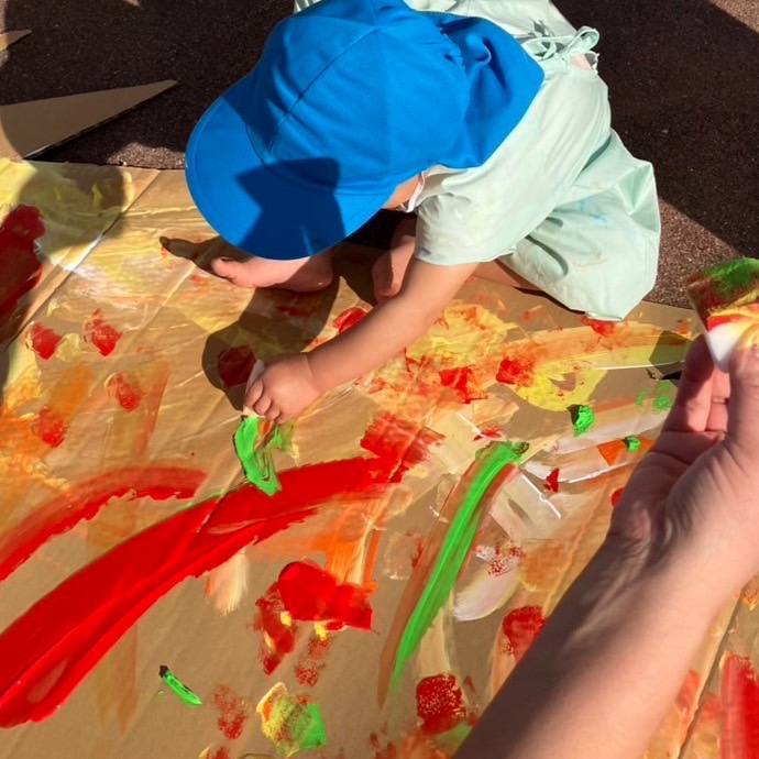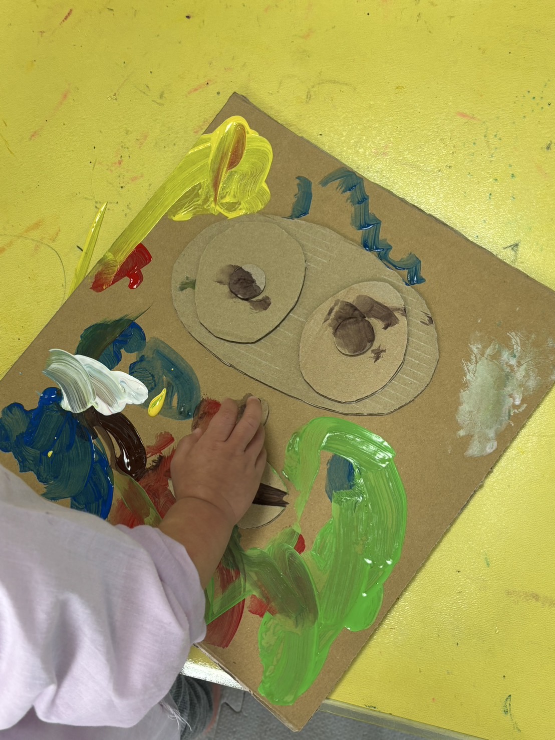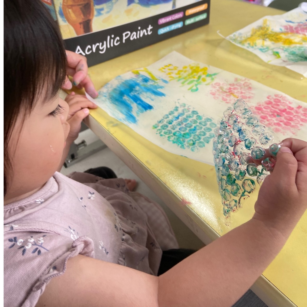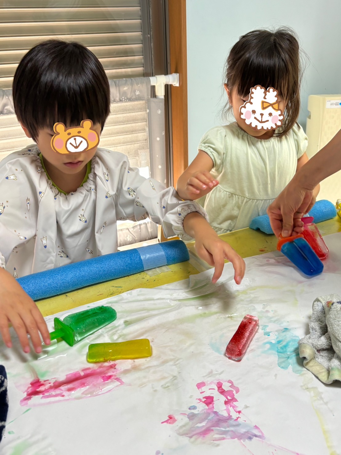 五感をフル回転させながら、途中からは手に色を塗って楽しむ子や、絵の具を混ぜて嬉しそうな子や、これだけ遊んでくれたら、絵の具も喜びます✨