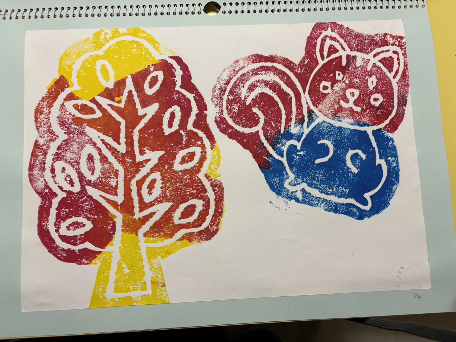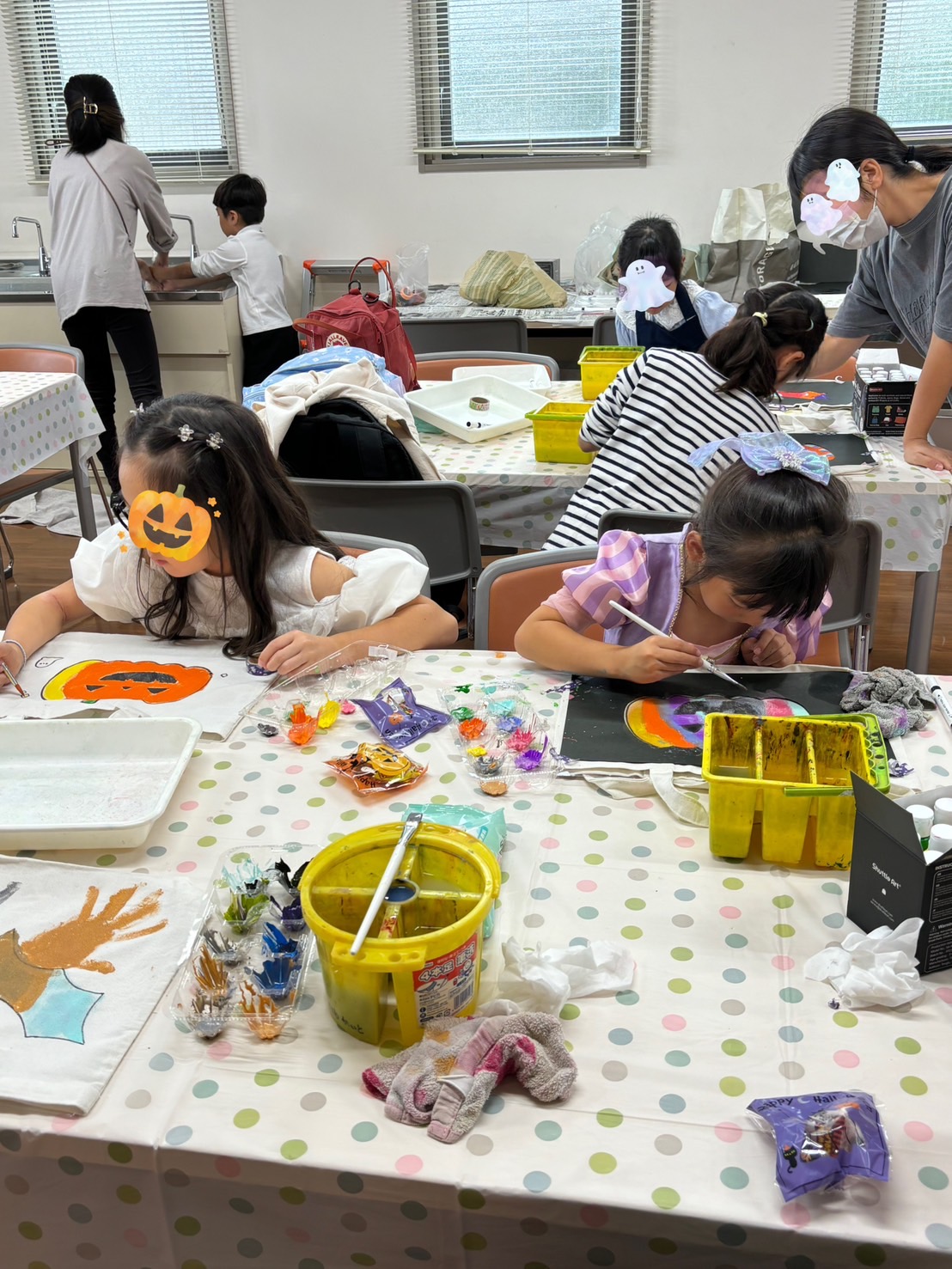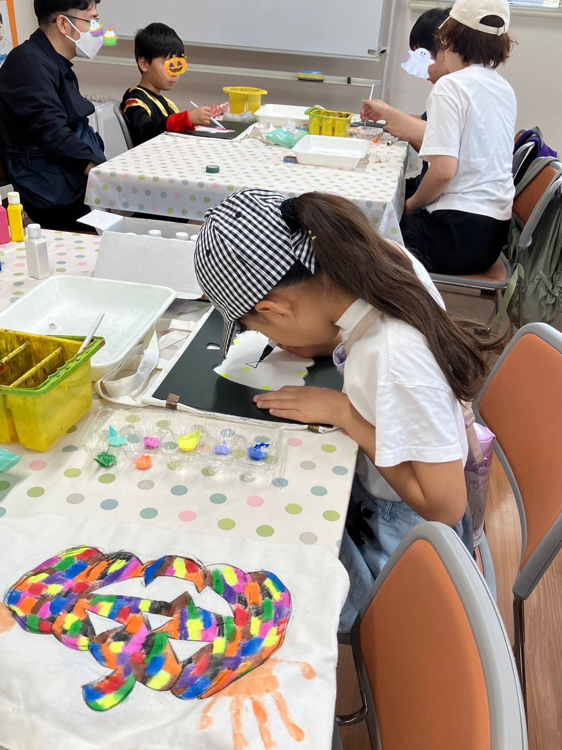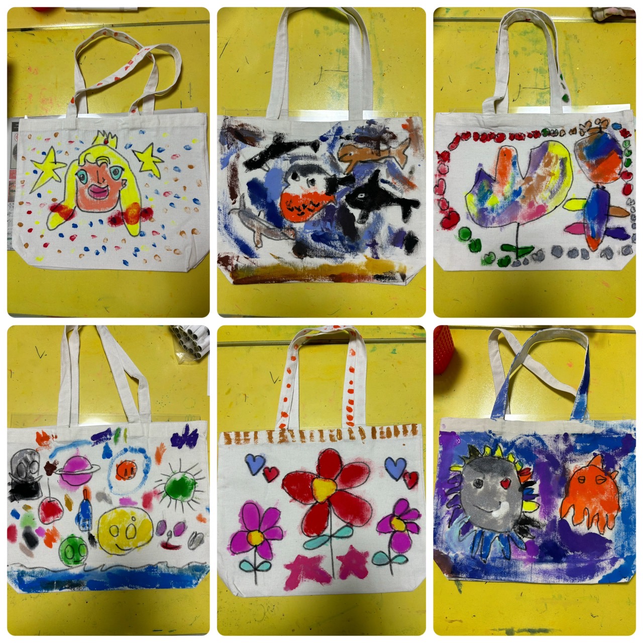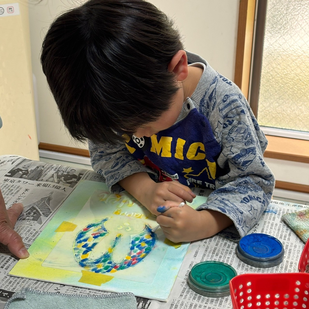 プリント作業が終わった生徒さんたちは、布絵の具で色を少し入れてみたり、私の方で生徒さんたちのイラストを配置換えした紙用の柄に色を塗ったりして、布地、紙地共に完成させていきました✨