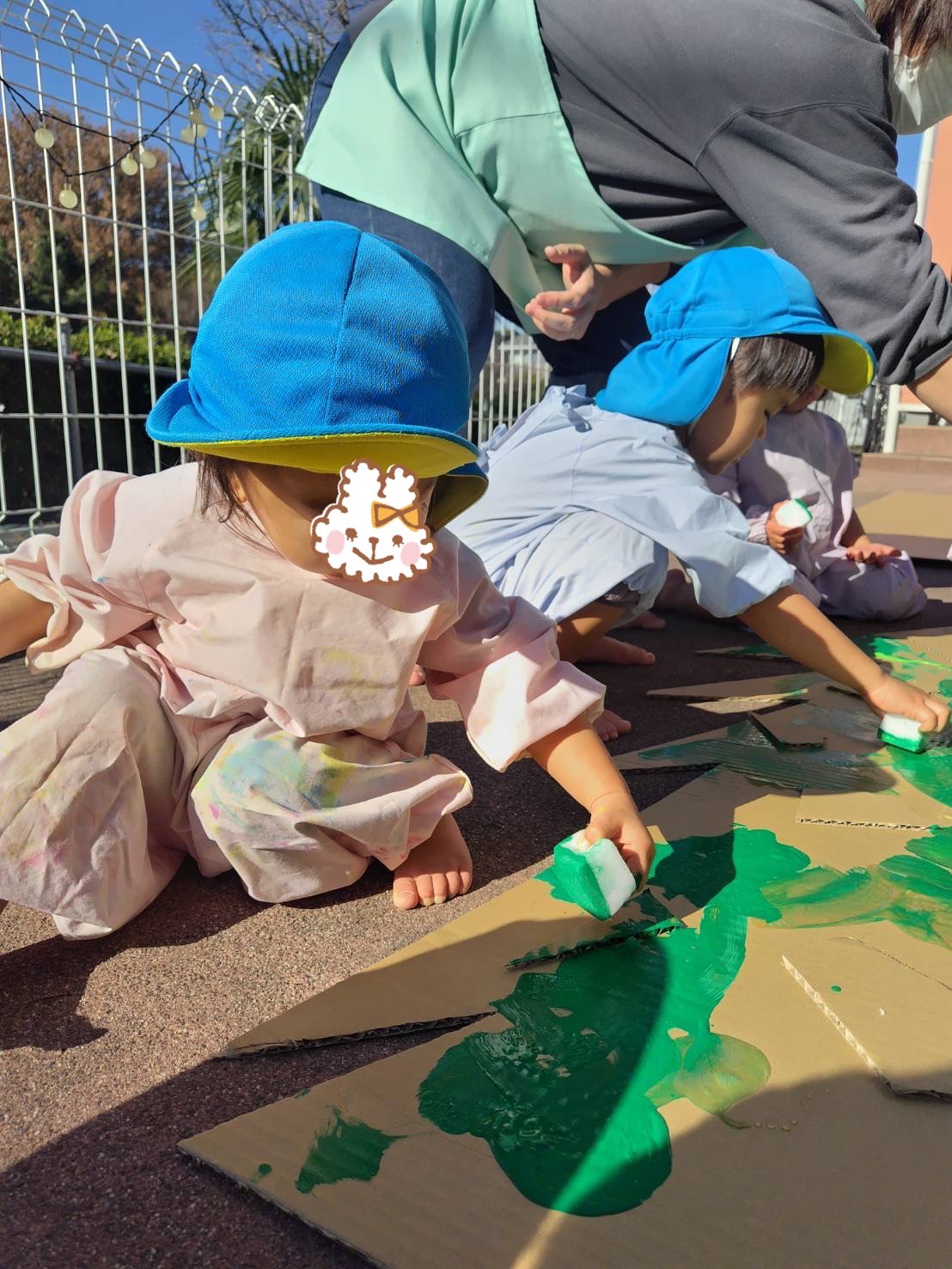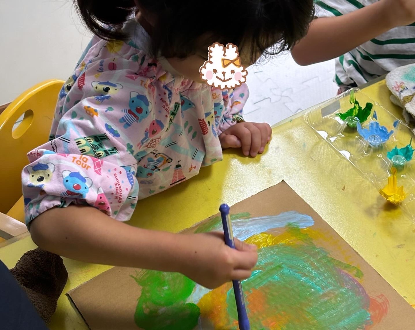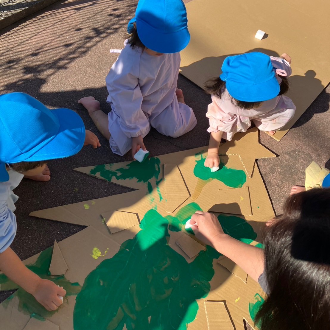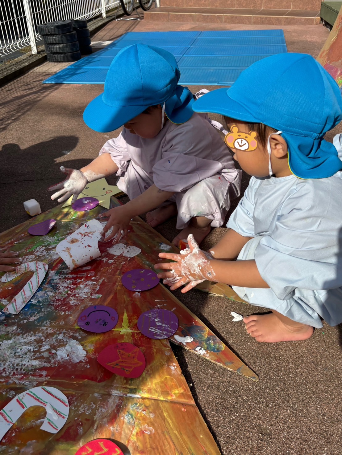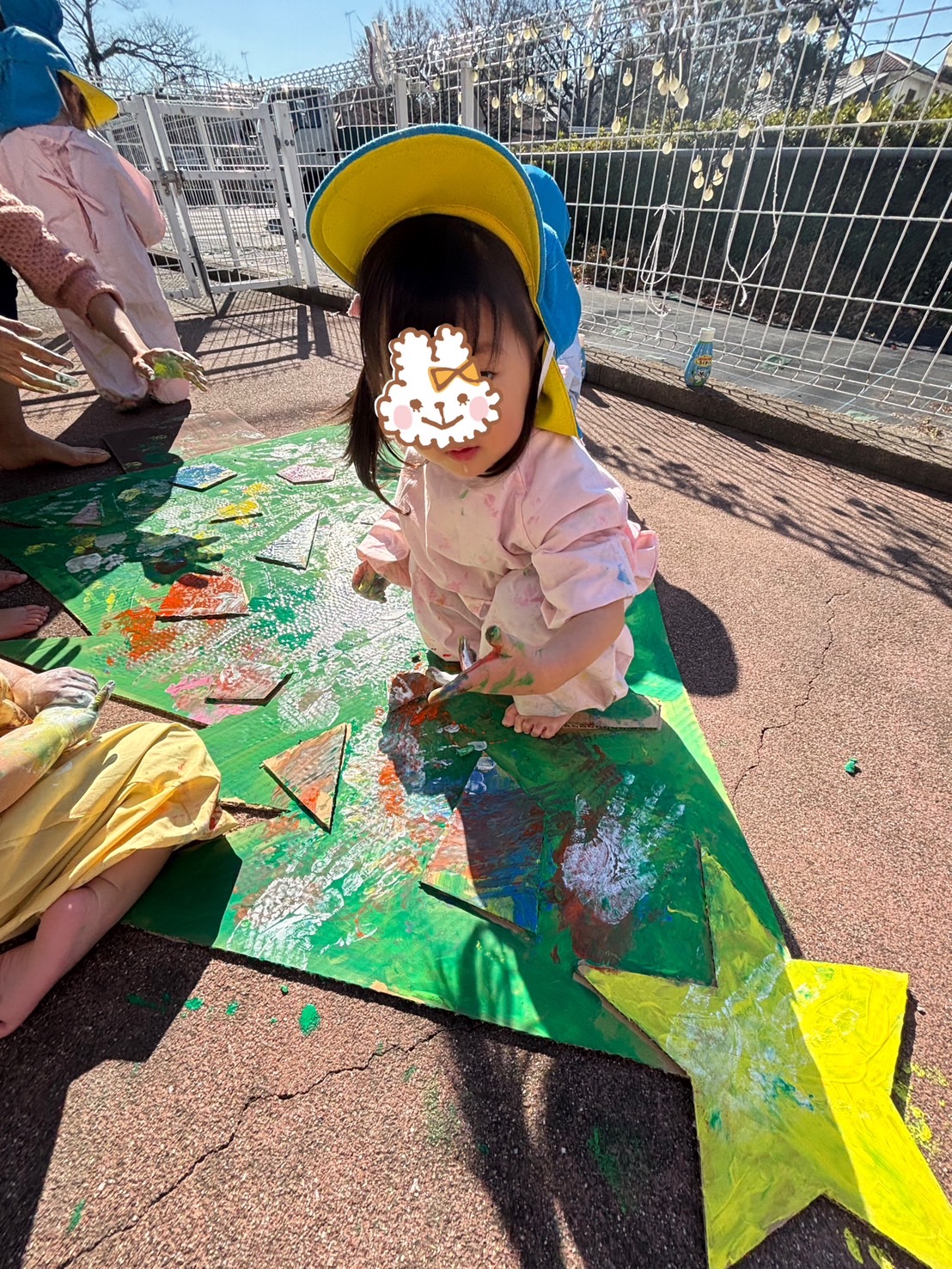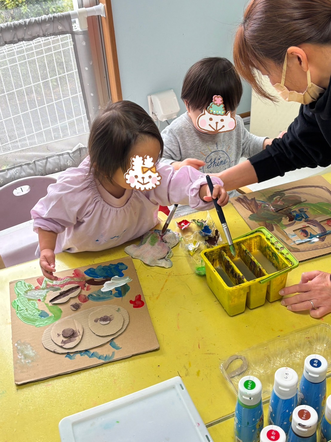 昨年の4月頃は、まだまだ子どもたちが小さくて、まだまだ造形活動は難しい部分がありましたが、今では、絵の具にも慣れて、色塗りの楽しさに目覚めています♪