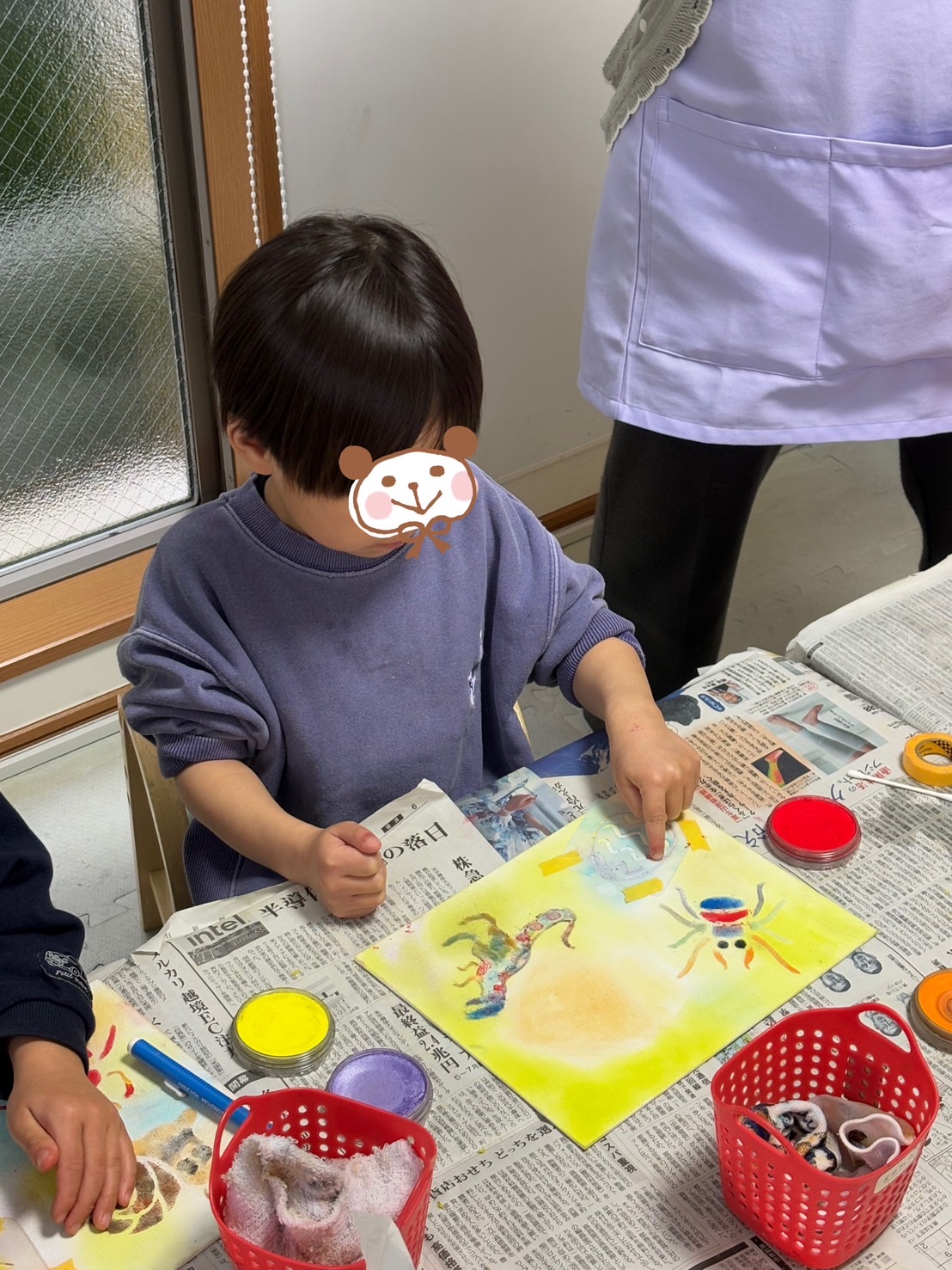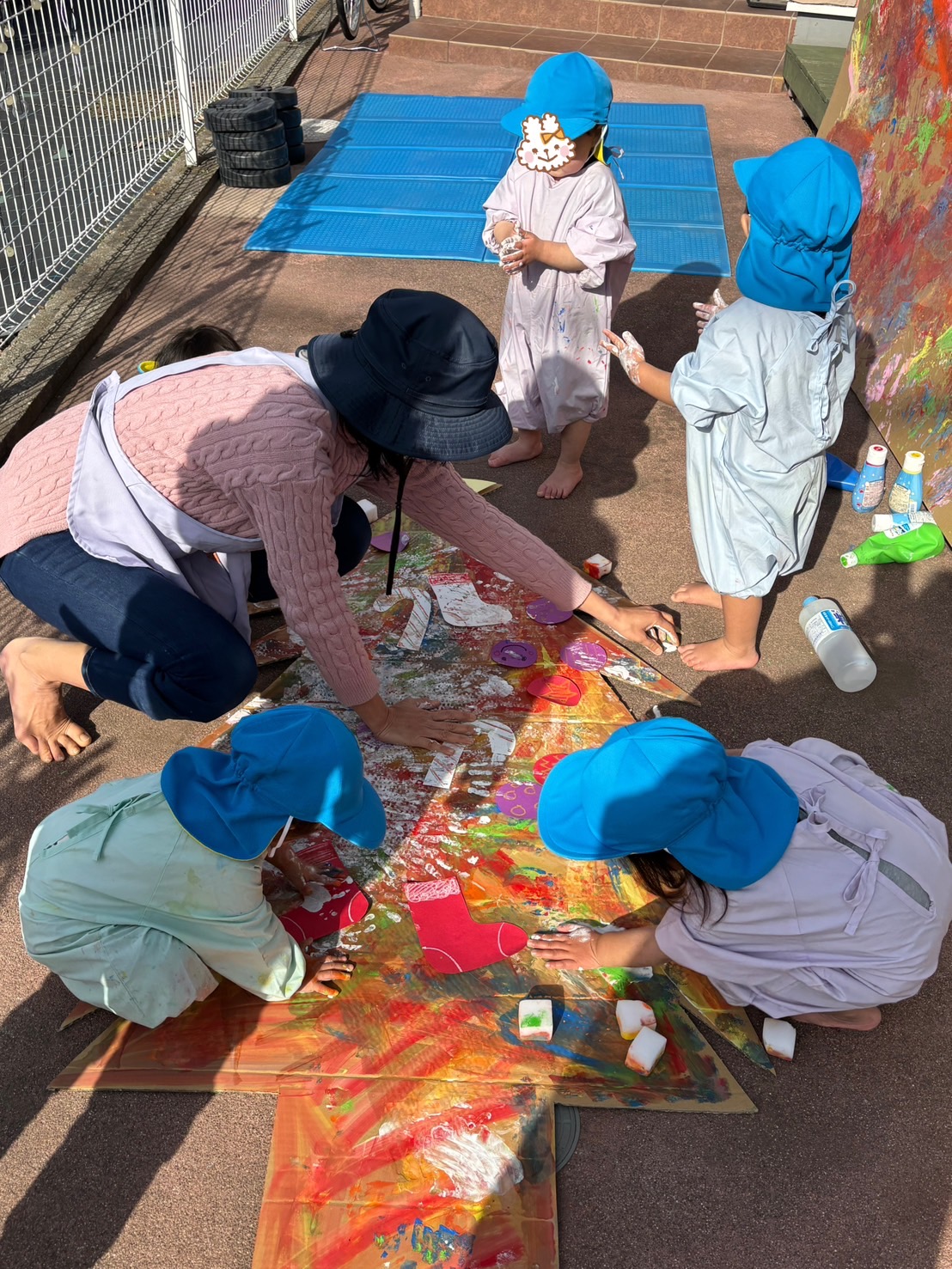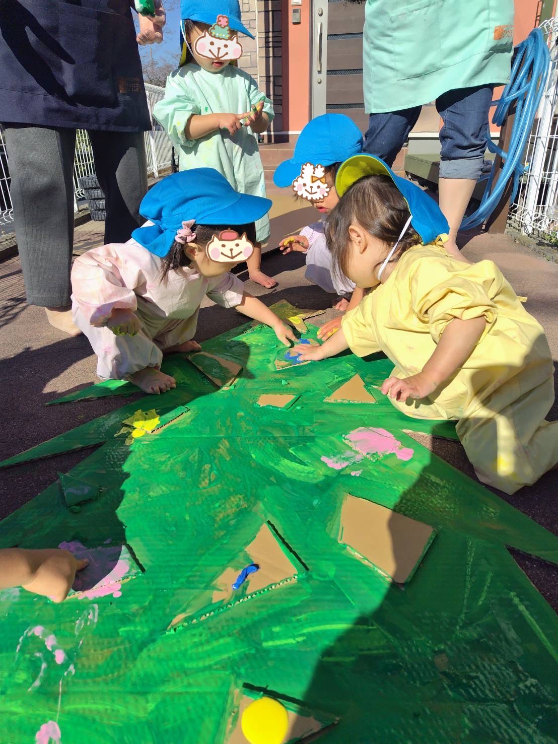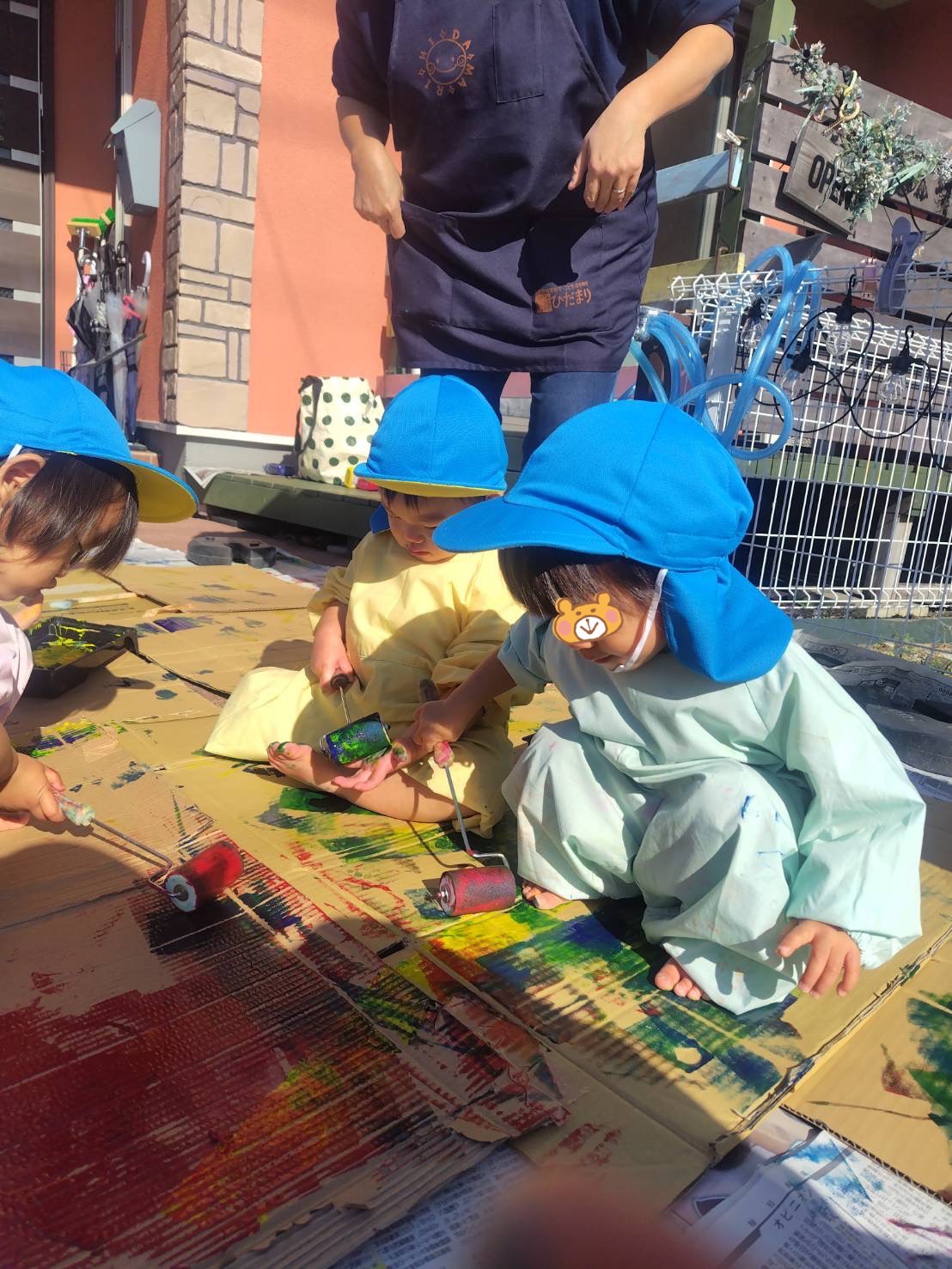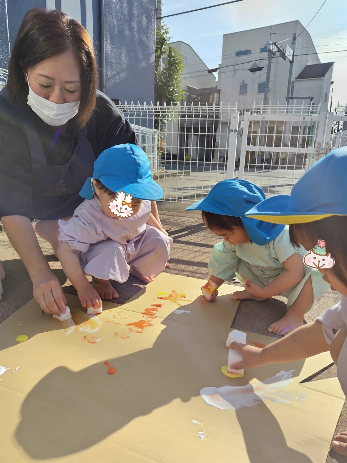 昨年の4月頃は、まだまだ子どもたちが小さくて、まだまだ造形活動は難しい部分がありましたが、今では、絵の具にも慣れて、色塗りの楽しさに目覚めています♪