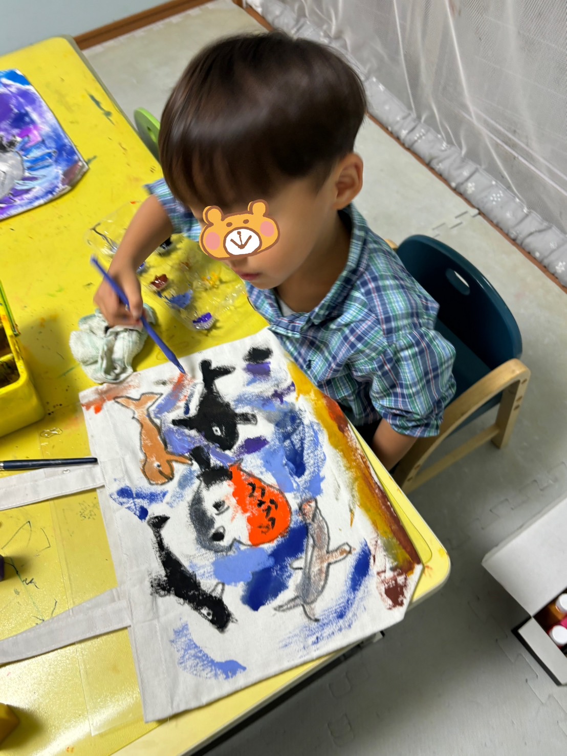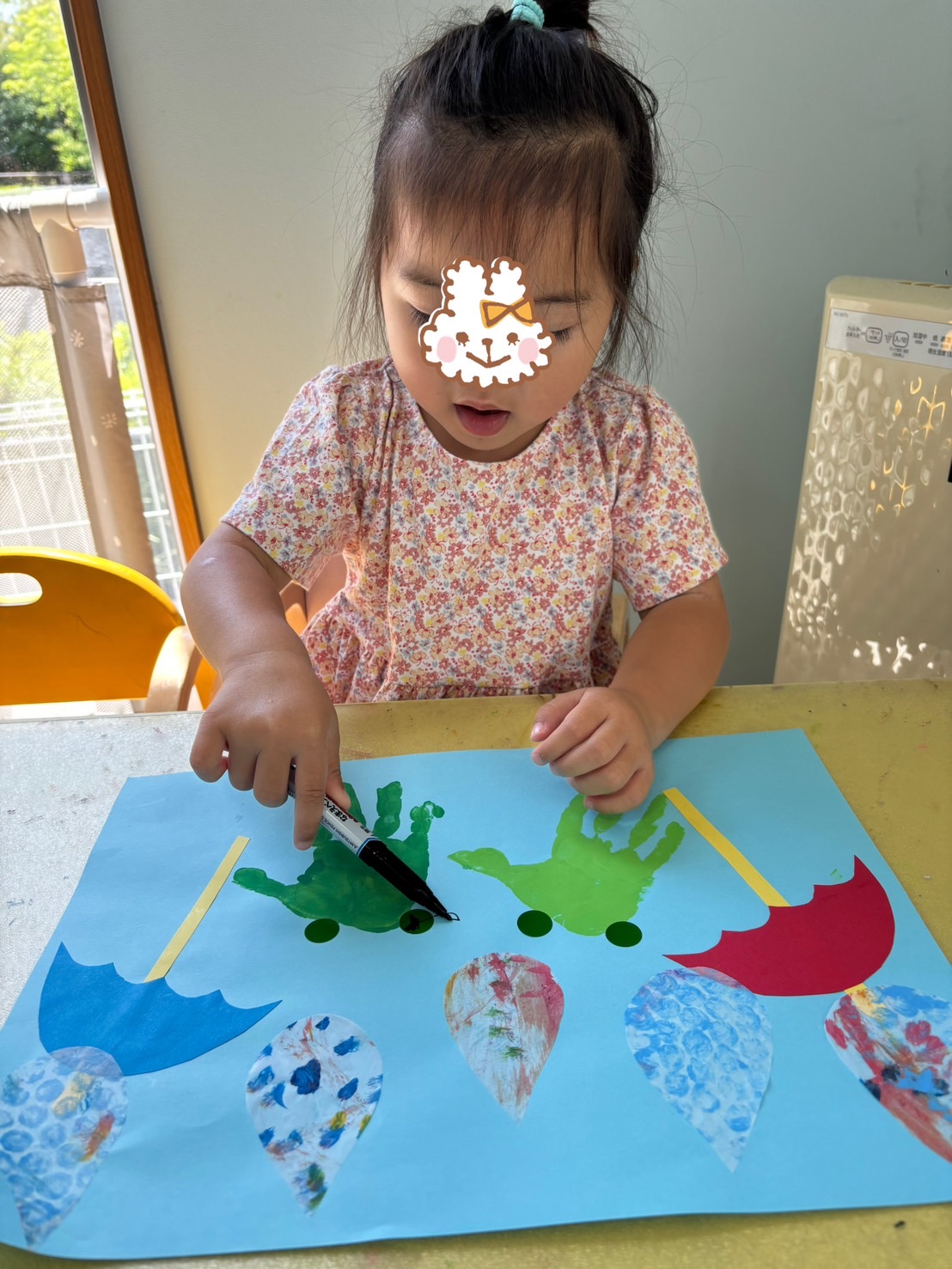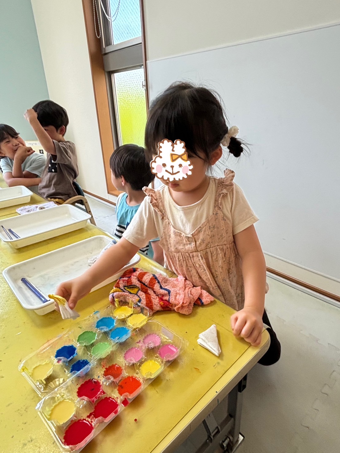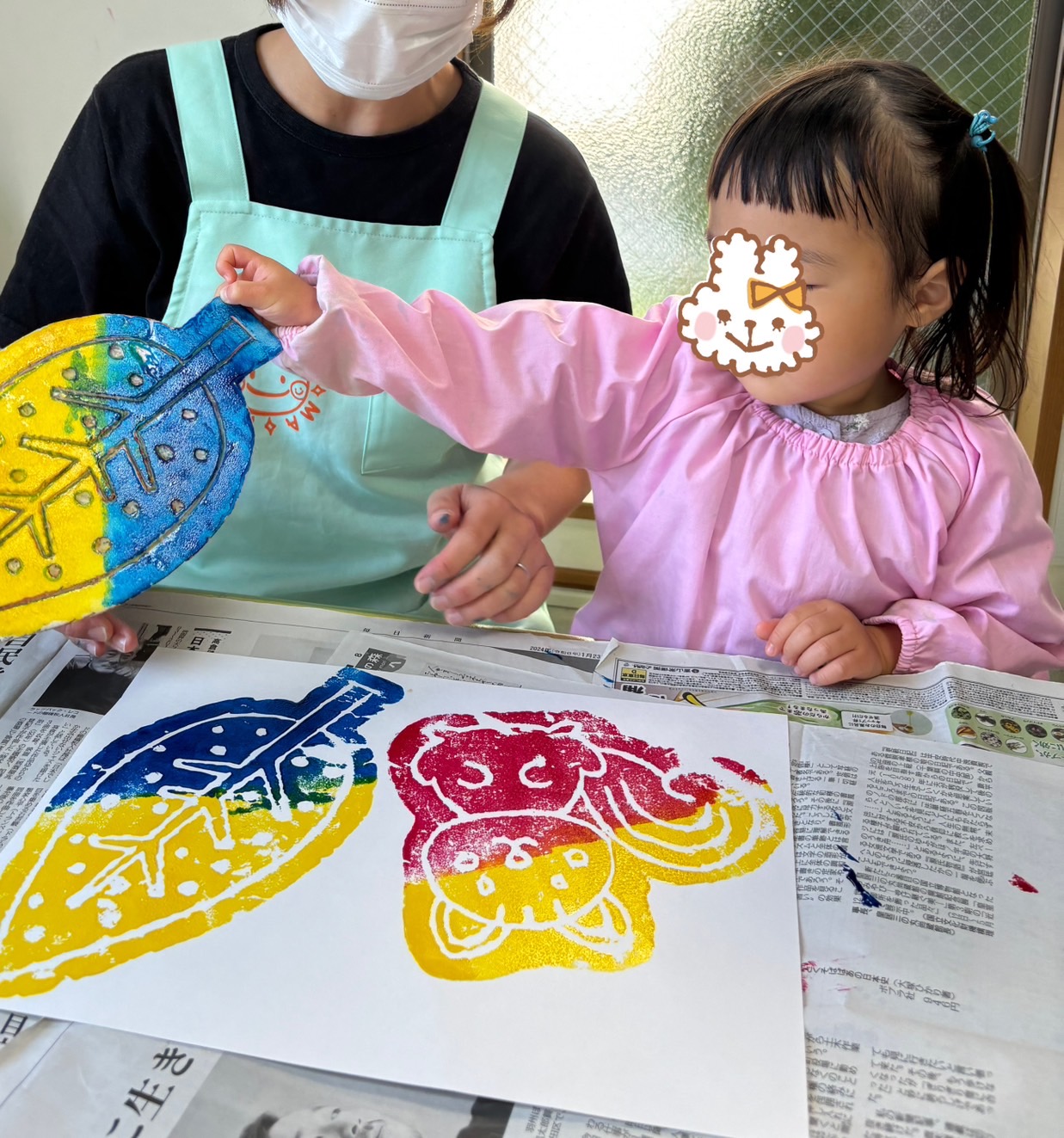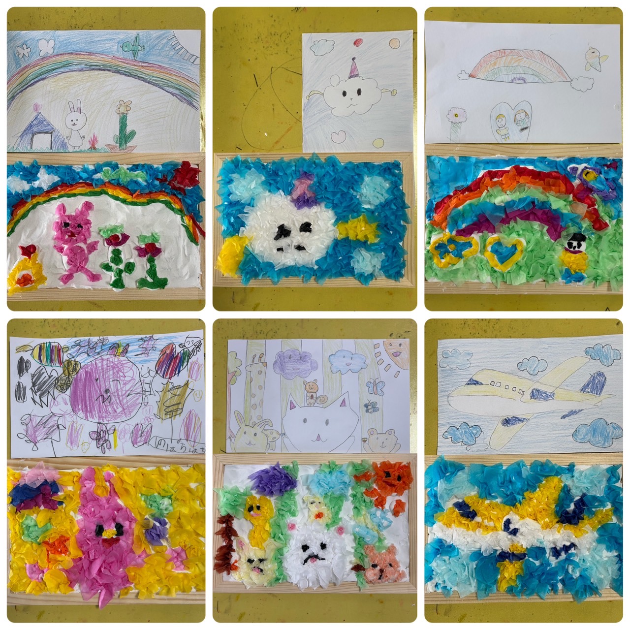 昨年の4月頃は、まだまだ子どもたちが小さくて、まだまだ造形活動は難しい部分がありましたが、今では、絵の具にも慣れて、色塗りの楽しさに目覚めています♪