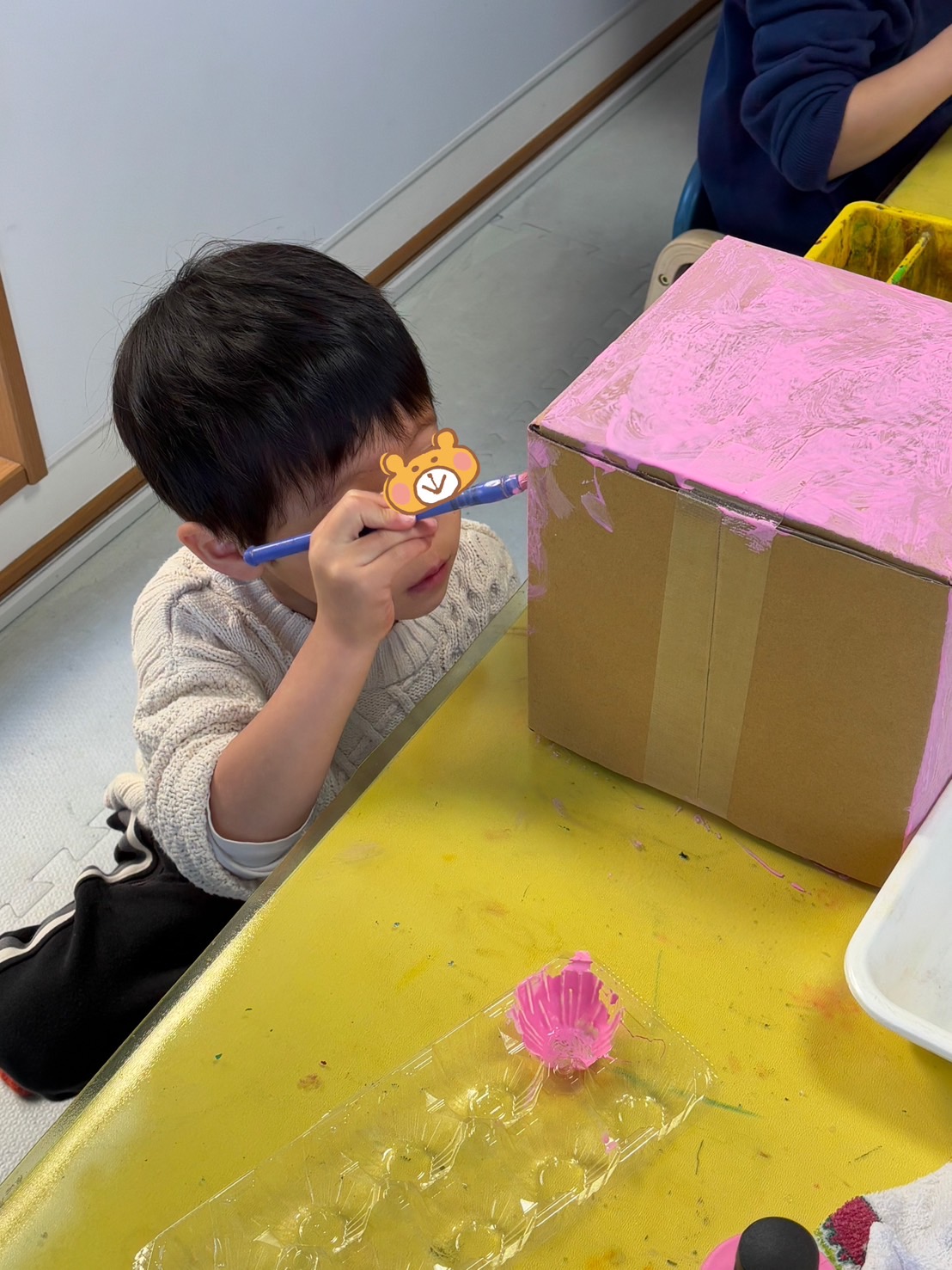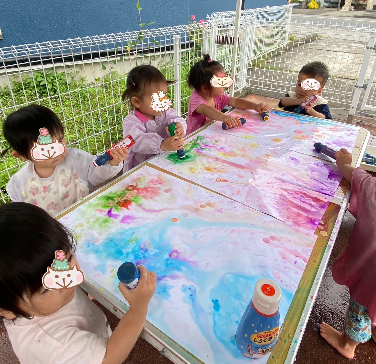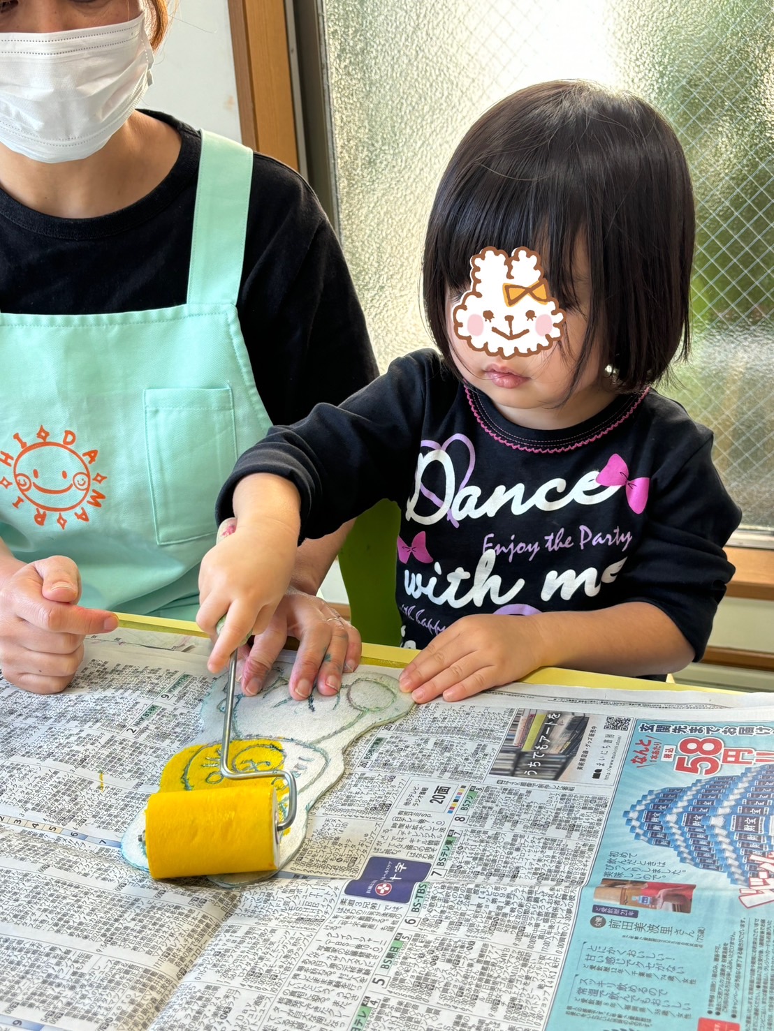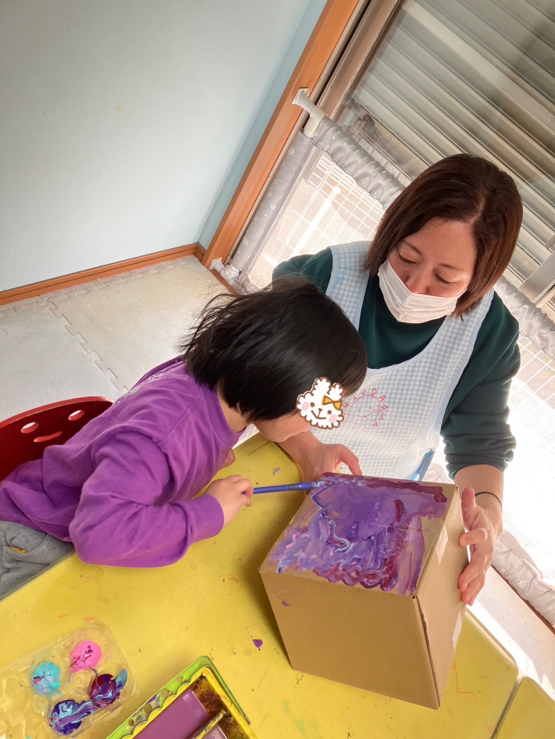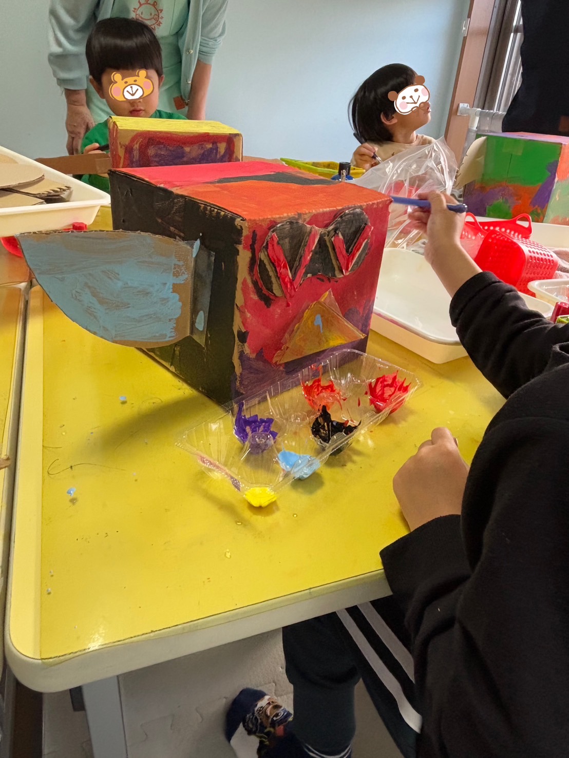 昨年の4月頃は、まだまだ子どもたちが小さくて、まだまだ造形活動は難しい部分がありましたが、今では、絵の具にも慣れて、色塗りの楽しさに目覚めています♪