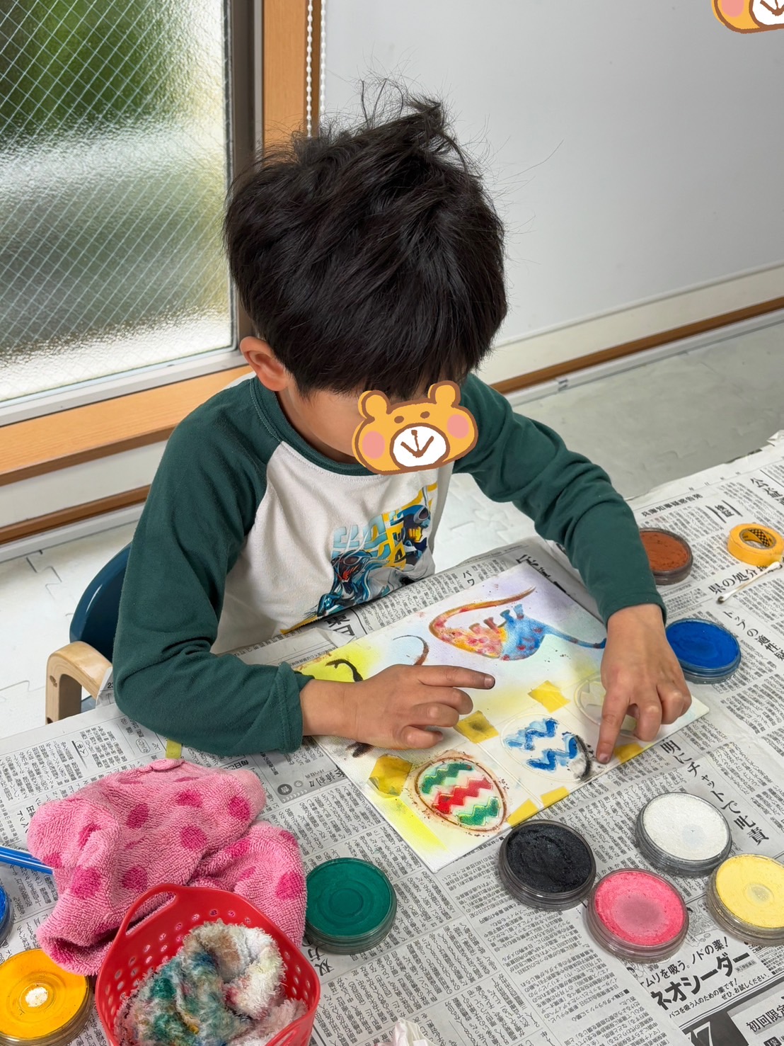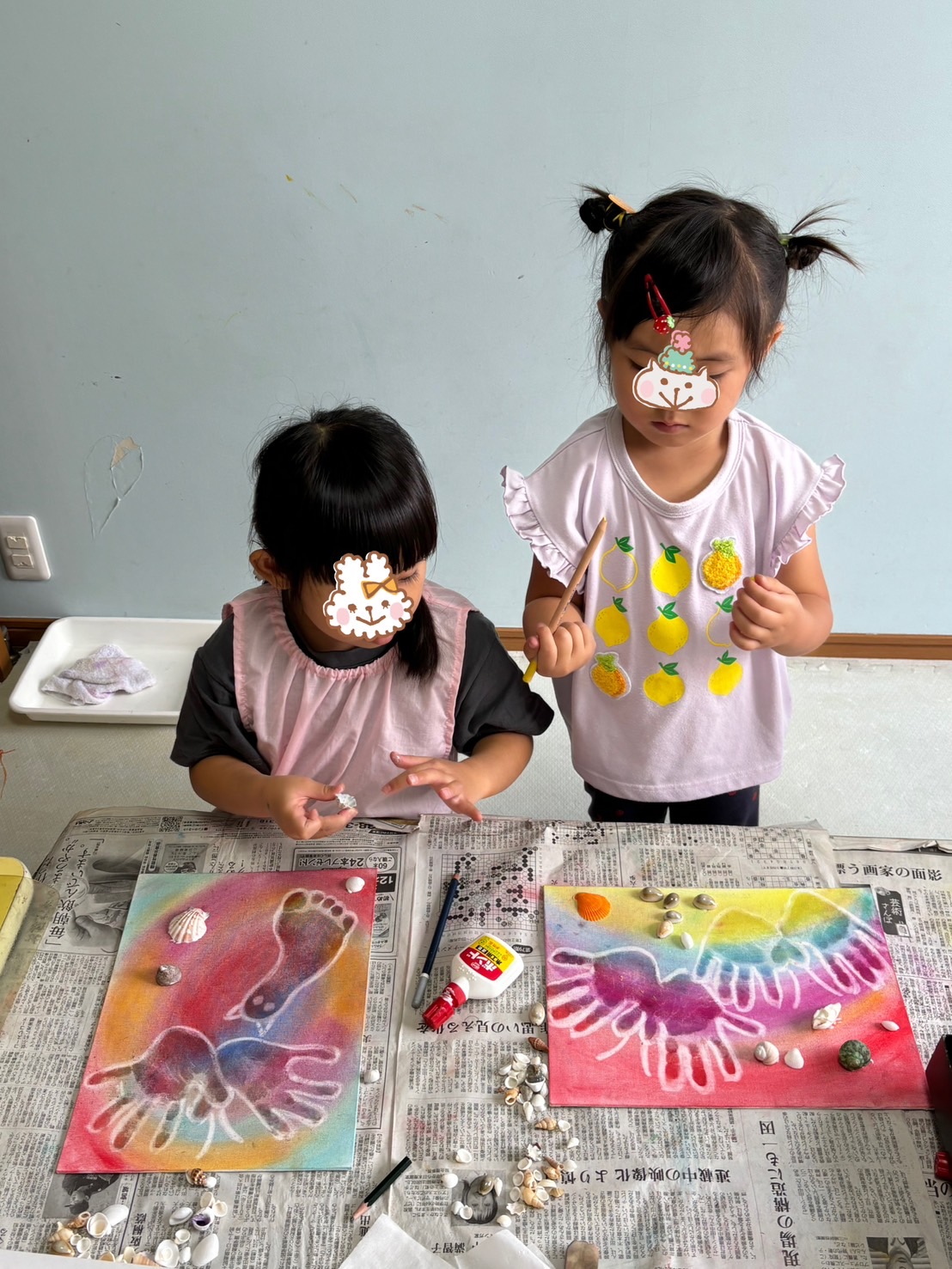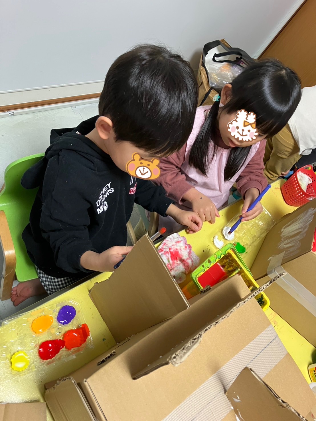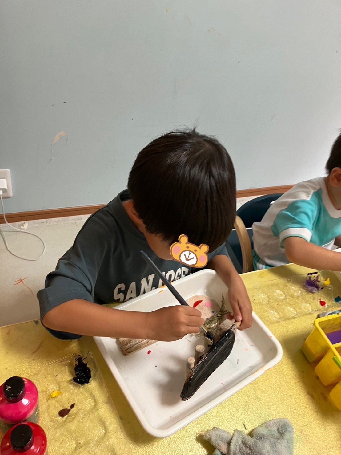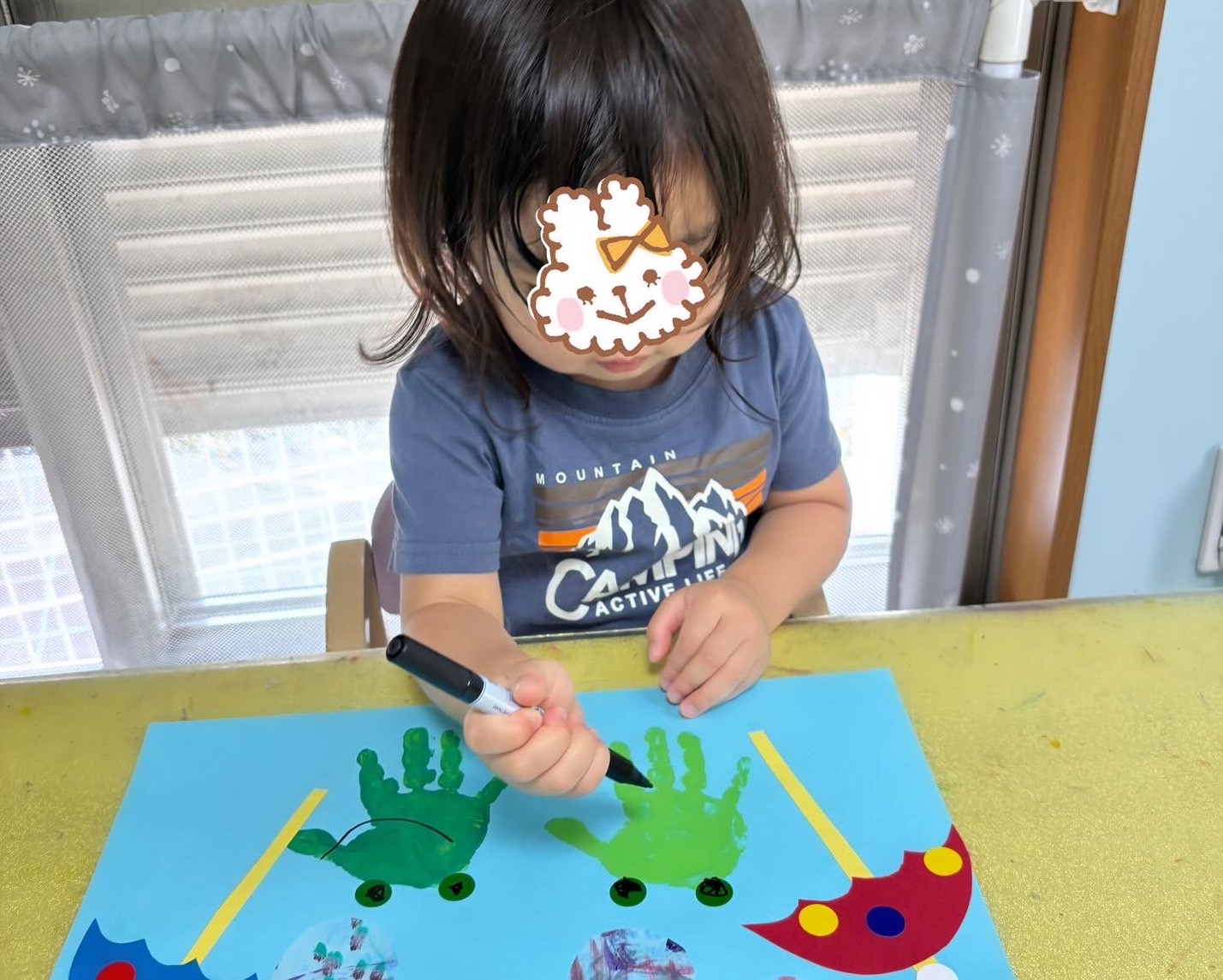 昨年の4月頃は、まだまだ子どもたちが小さくて、まだまだ造形活動は難しい部分がありましたが、今では、絵の具にも慣れて、色塗りの楽しさに目覚めています♪