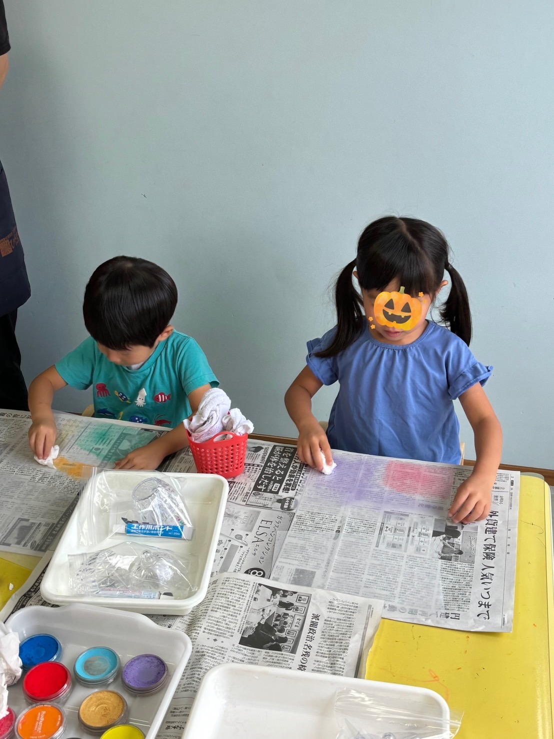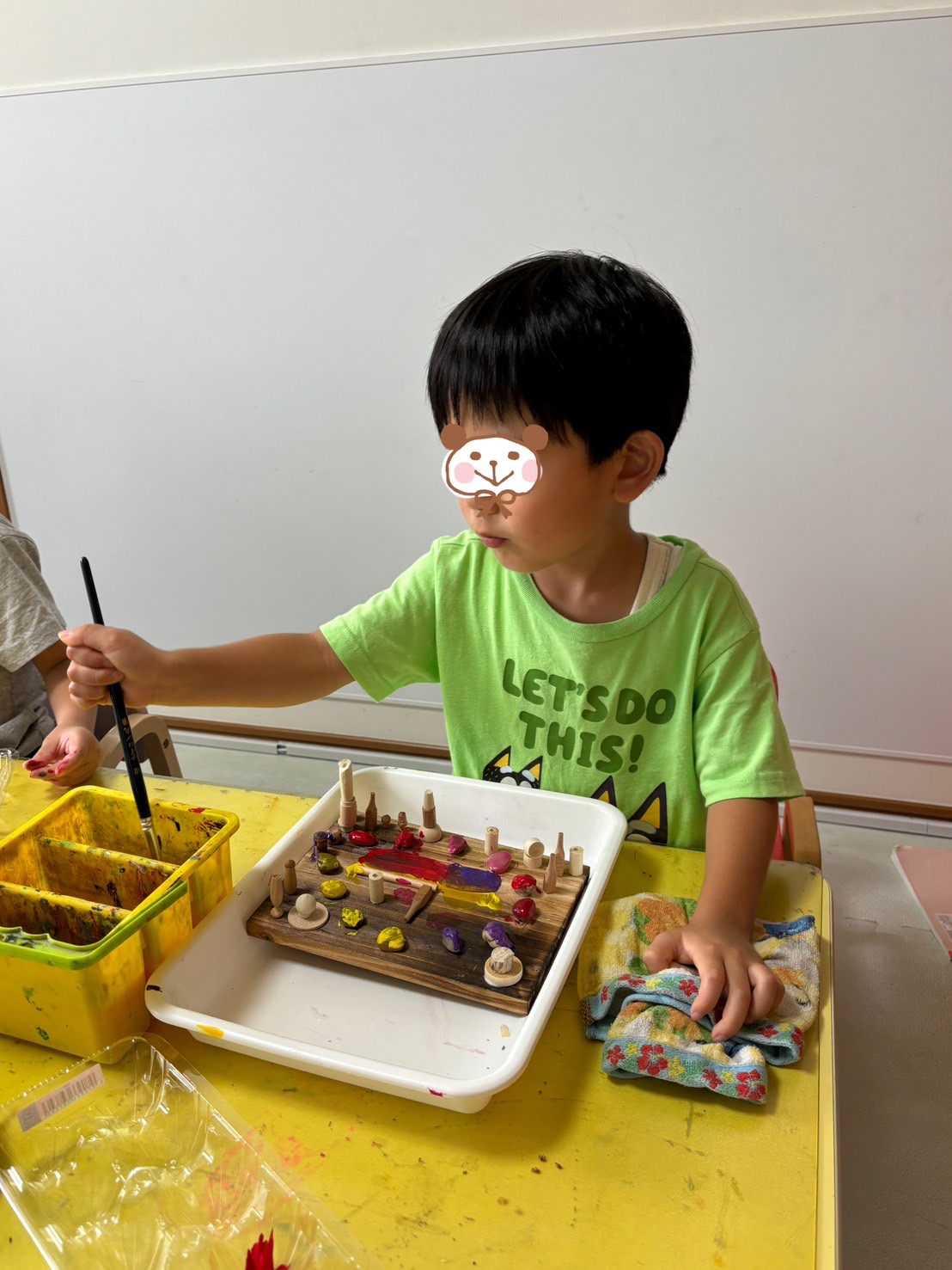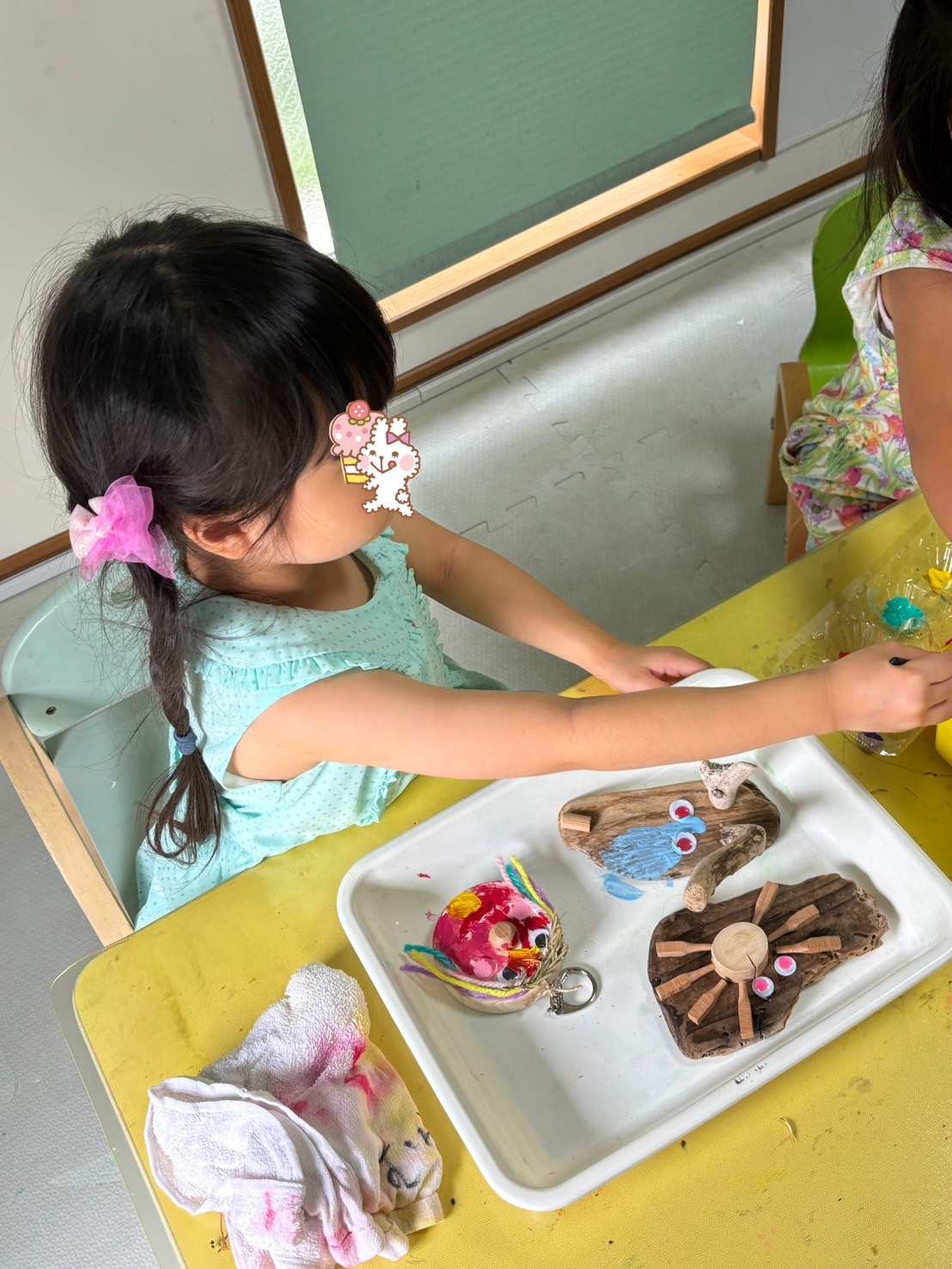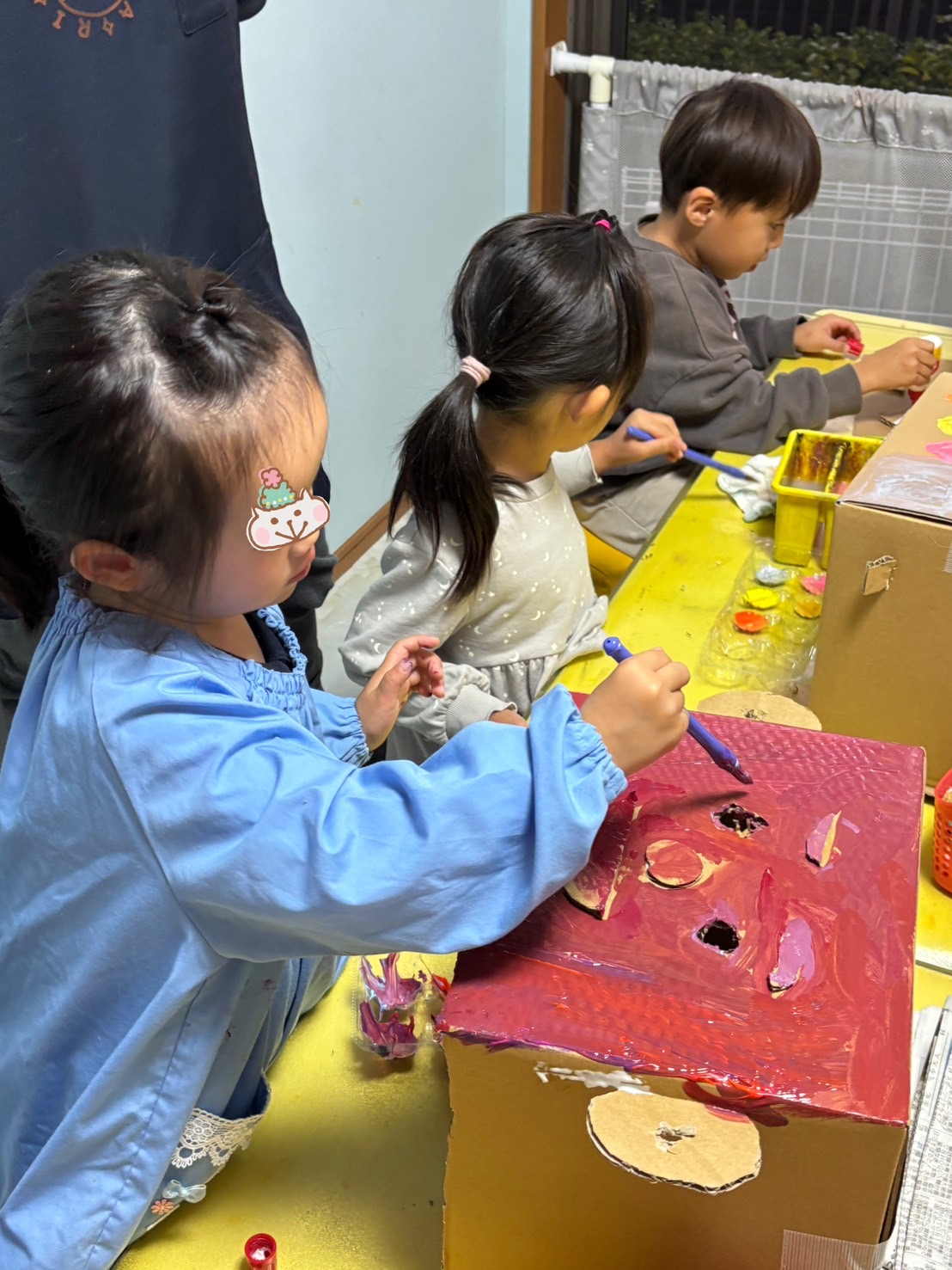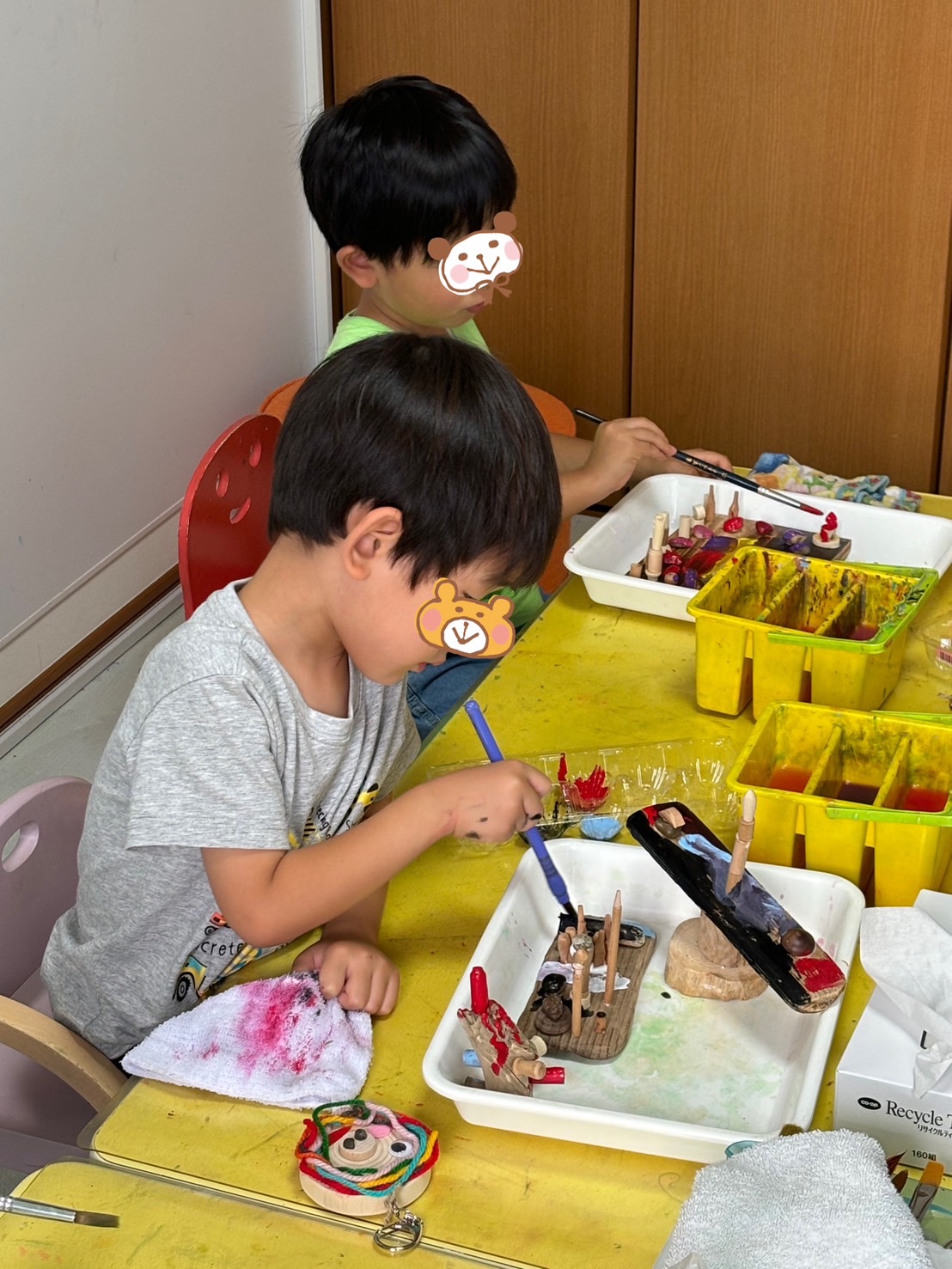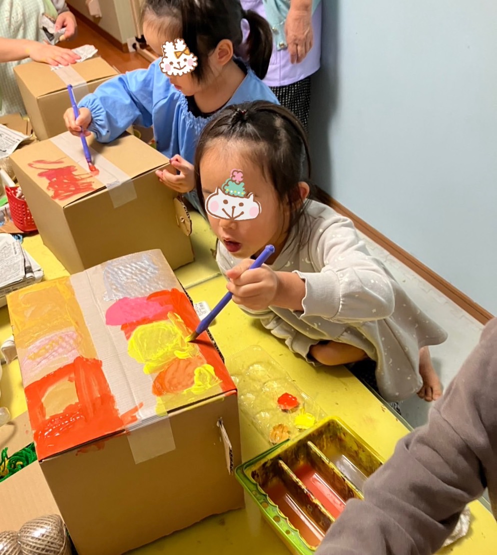 昨年の4月頃は、まだまだ子どもたちが小さくて、まだまだ造形活動は難しい部分がありましたが、今では、絵の具にも慣れて、色塗りの楽しさに目覚めています♪