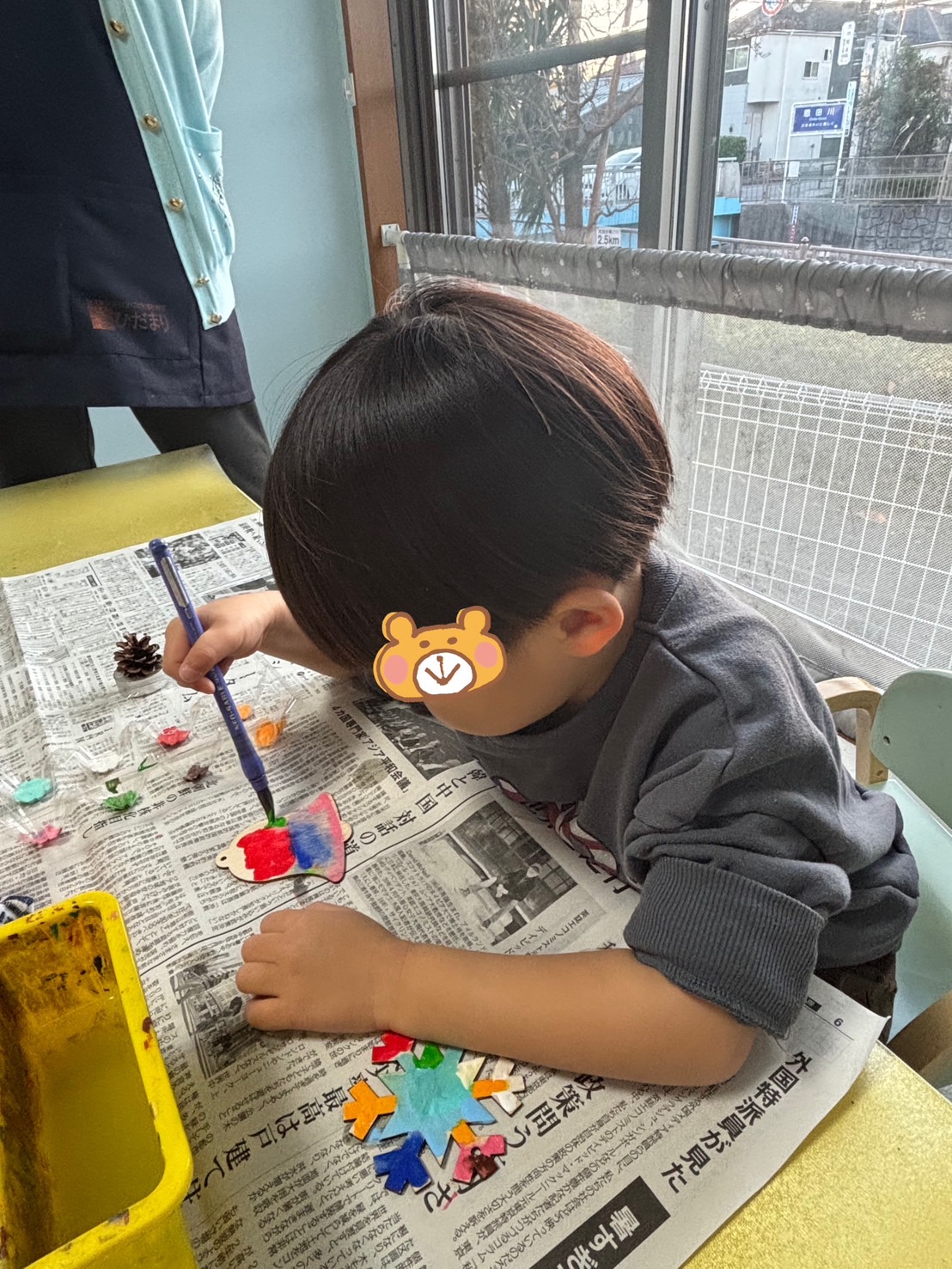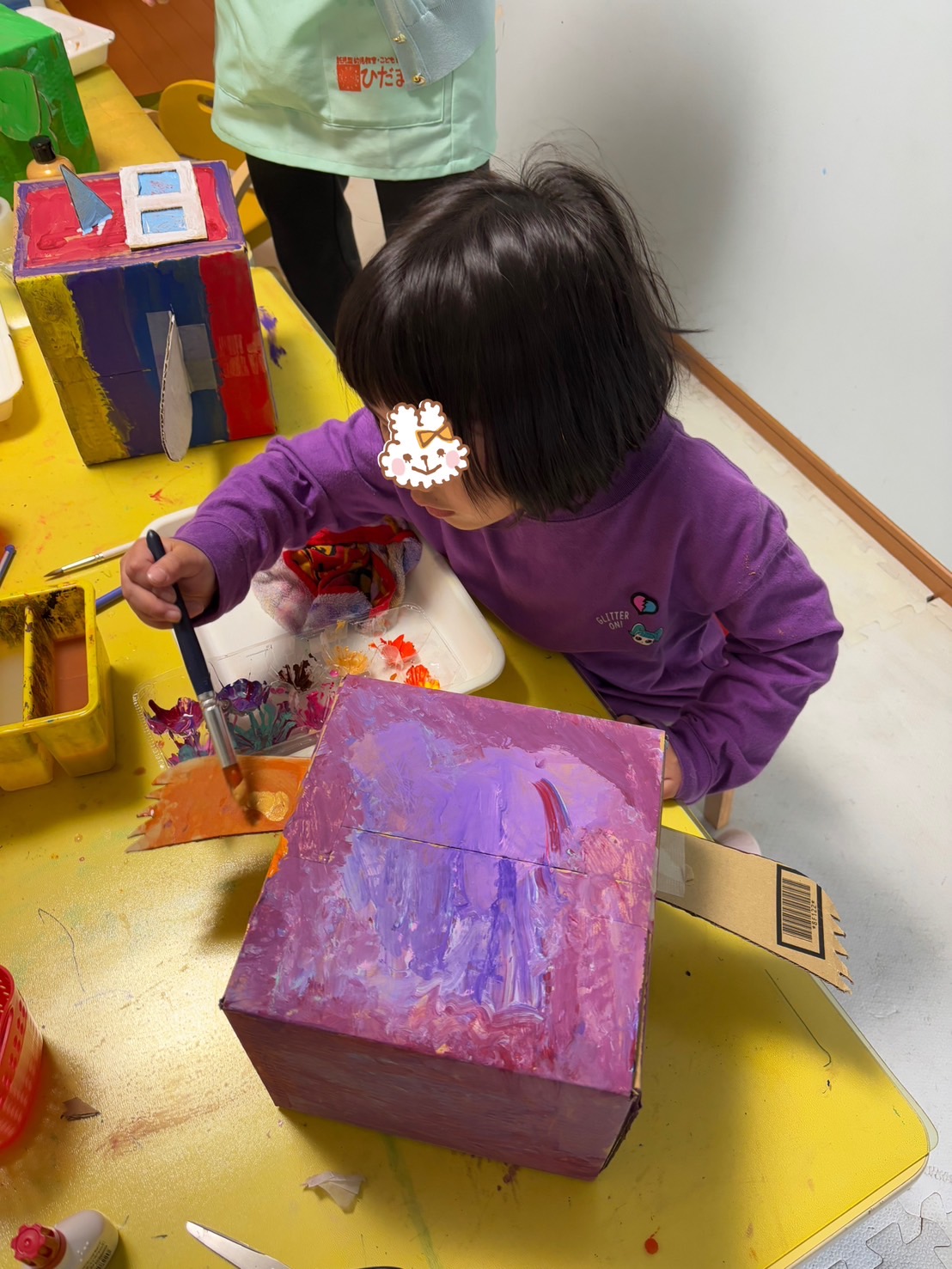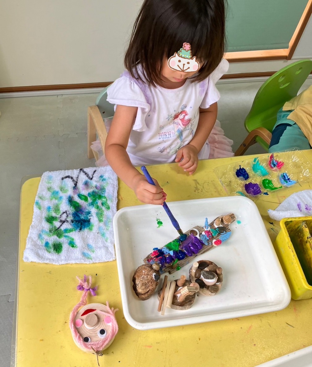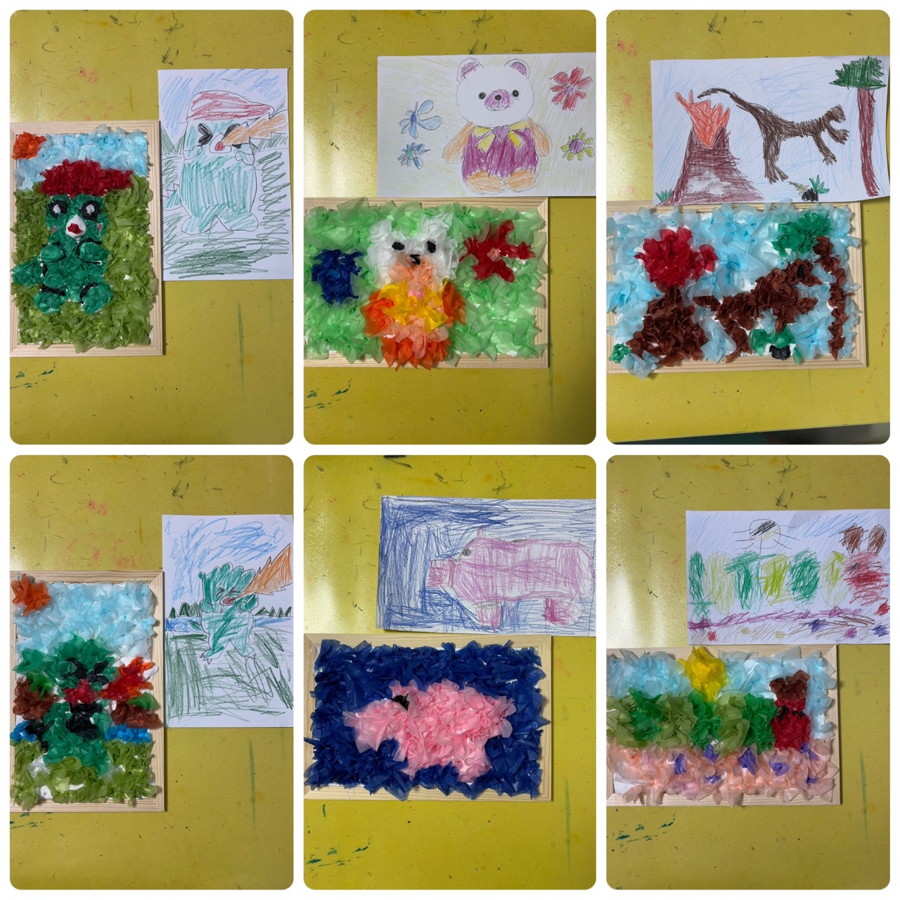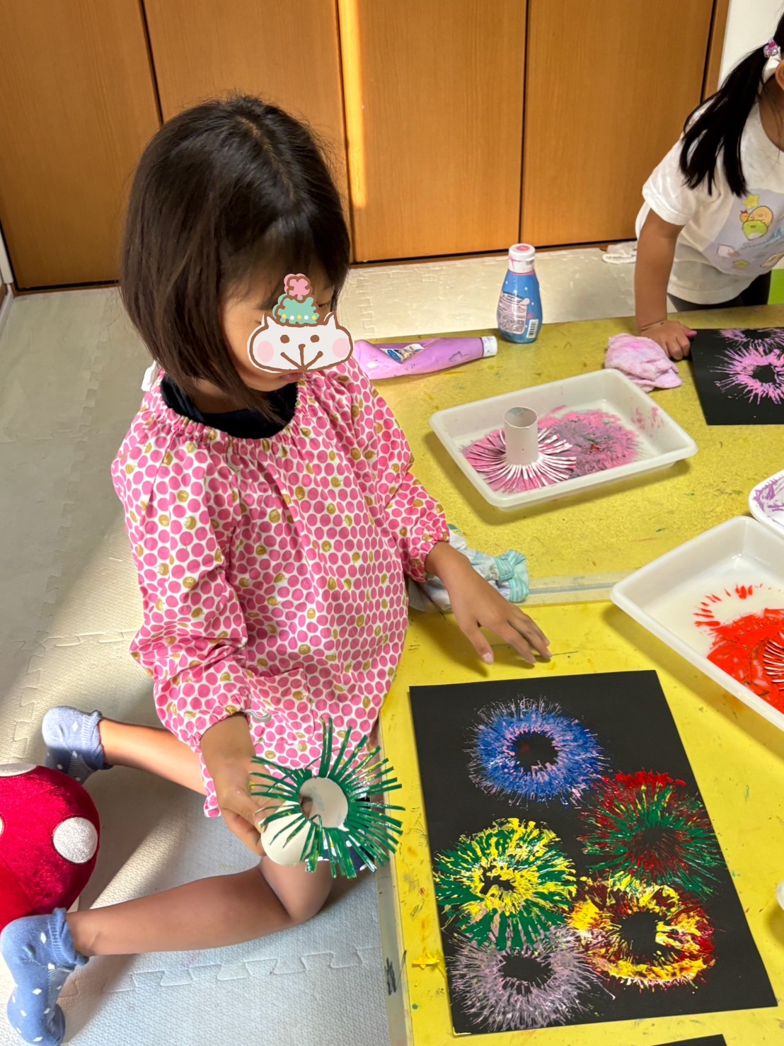 昨年の4月頃は、まだまだ子どもたちが小さくて、まだまだ造形活動は難しい部分がありましたが、今では、絵の具にも慣れて、色塗りの楽しさに目覚めています♪