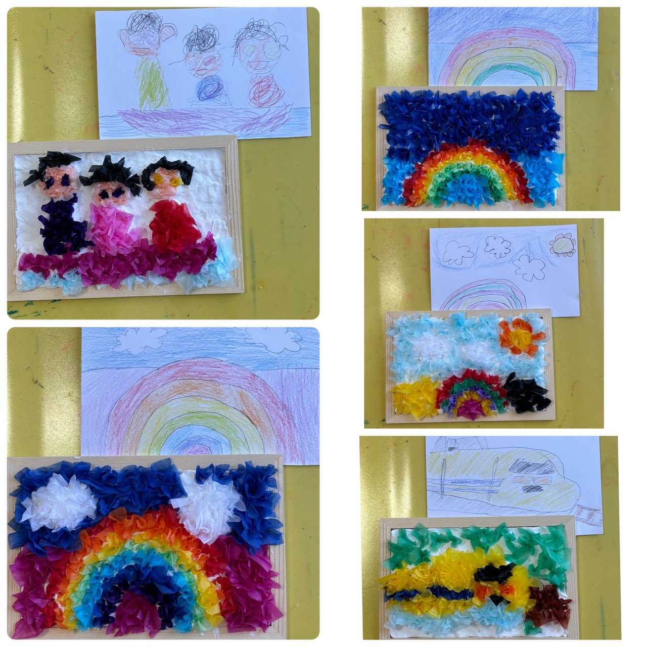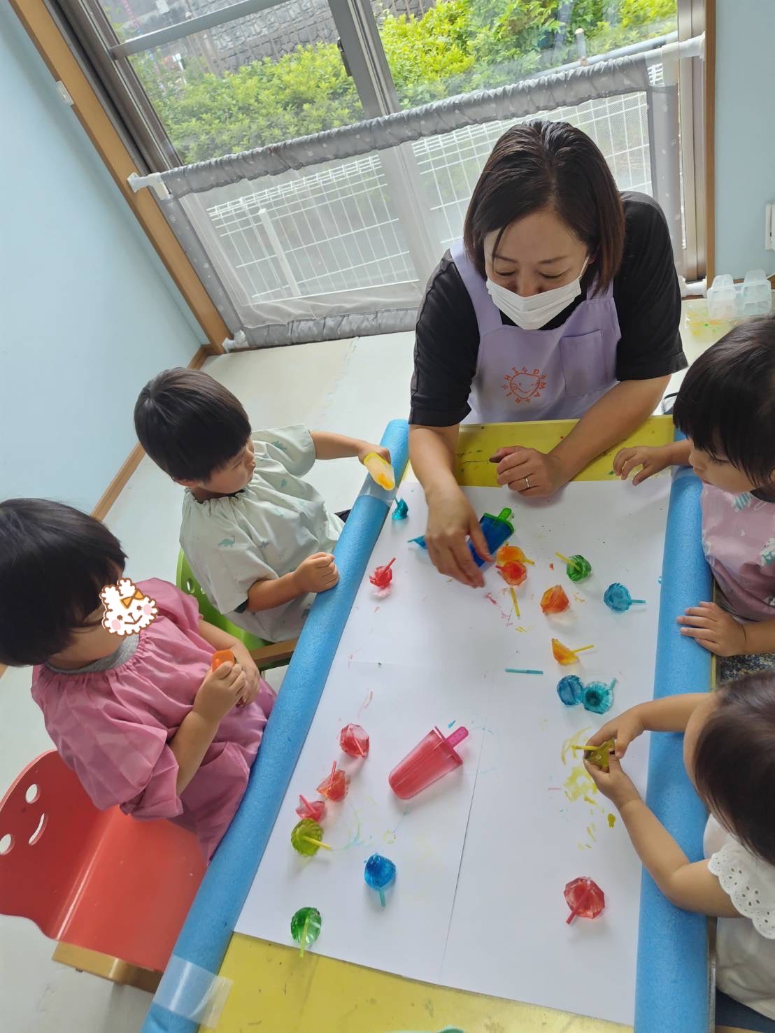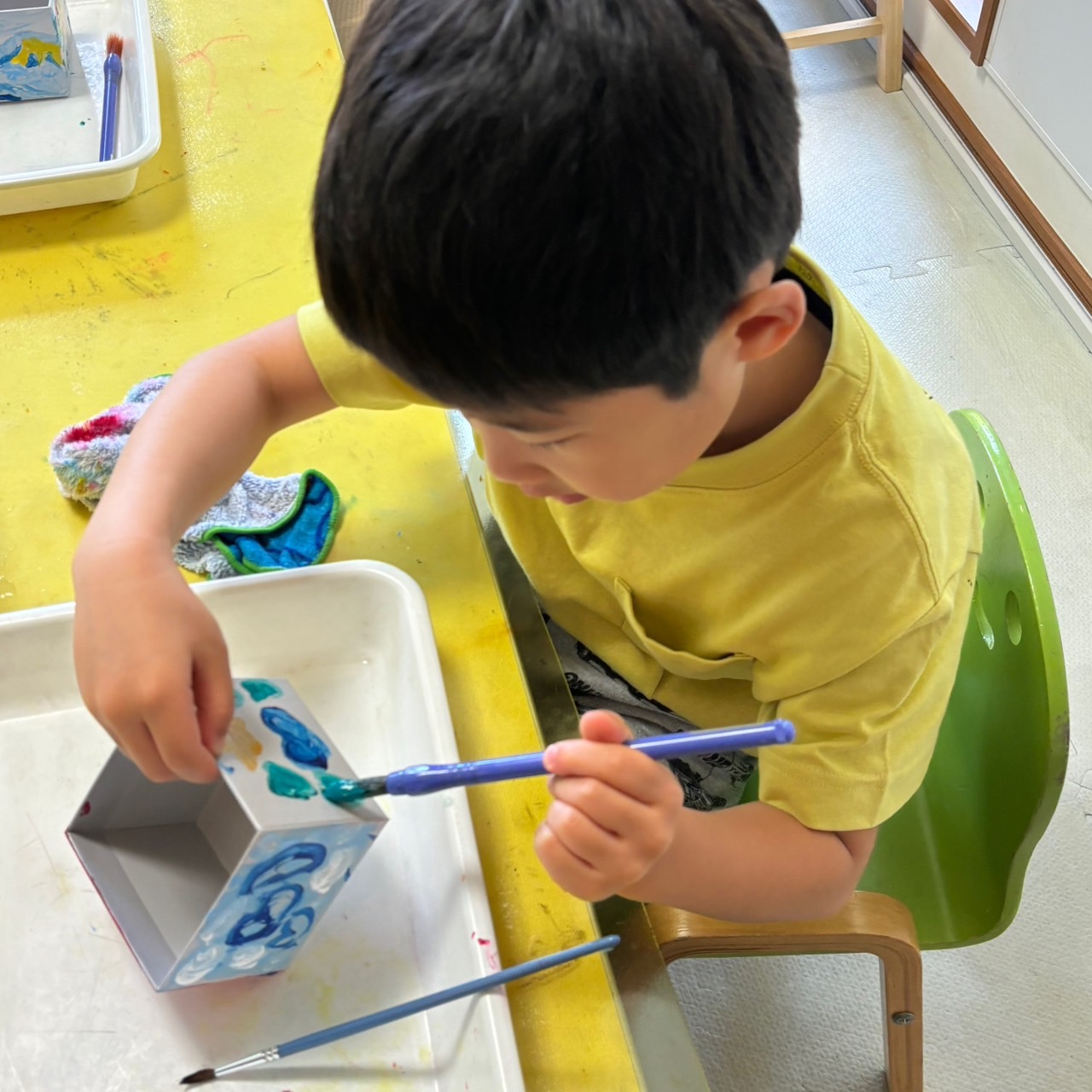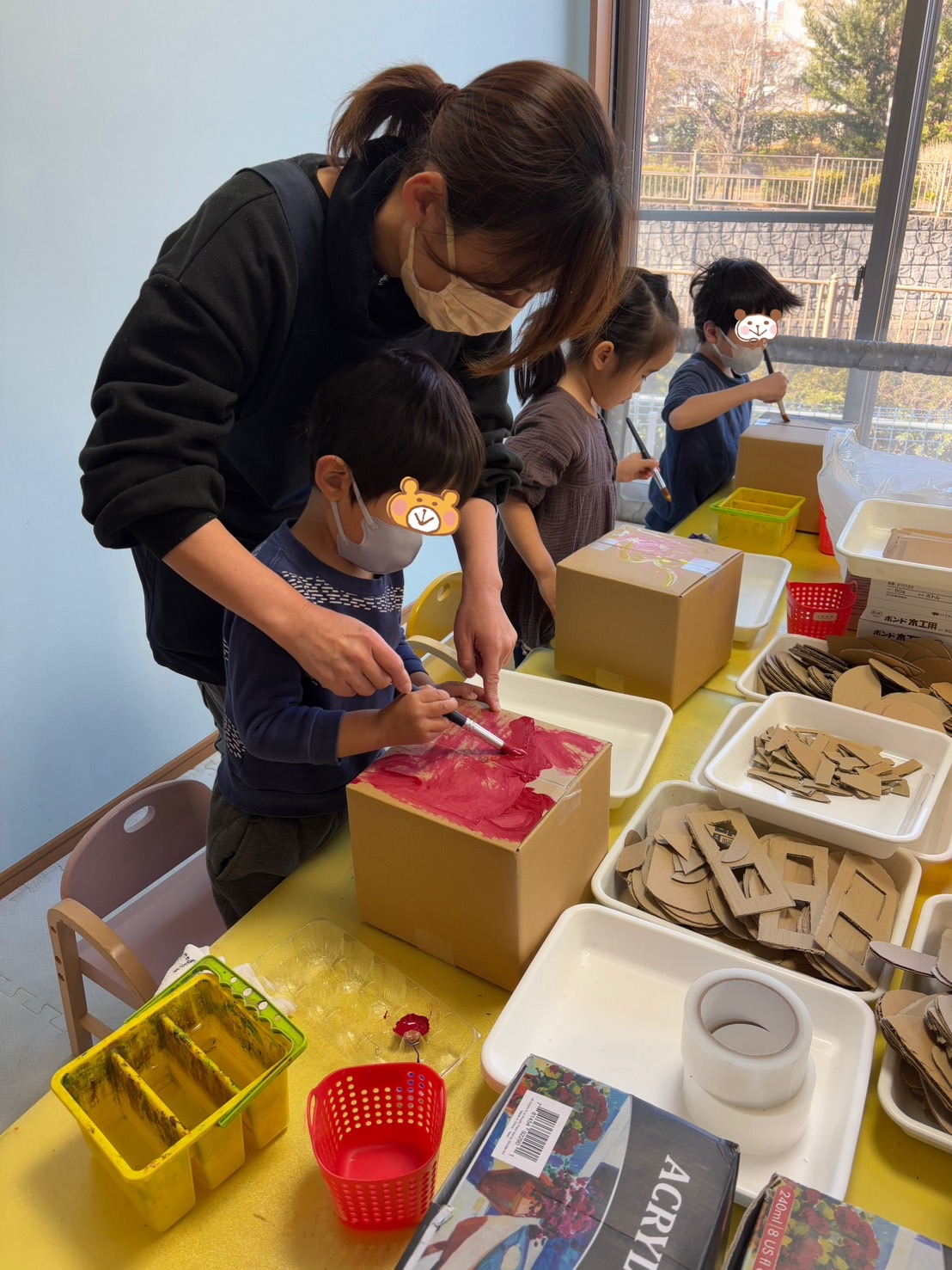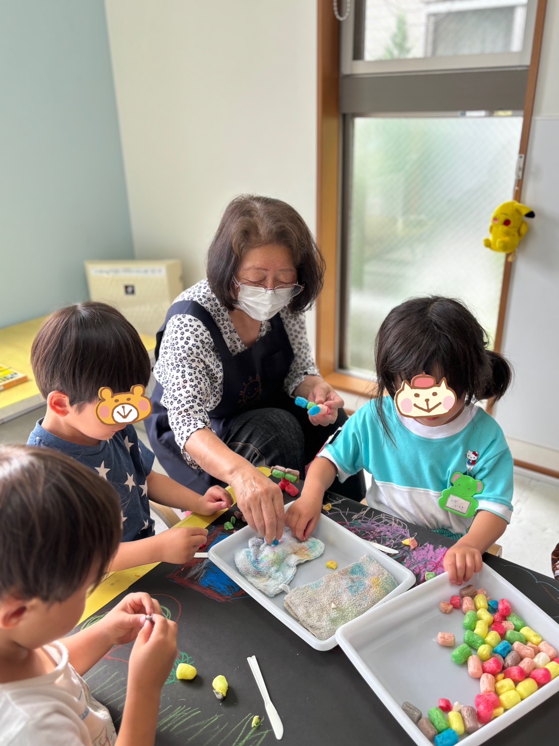 昨年の4月頃は、まだまだ子どもたちが小さくて、まだまだ造形活動は難しい部分がありましたが、今では、絵の具にも慣れて、色塗りの楽しさに目覚めています♪