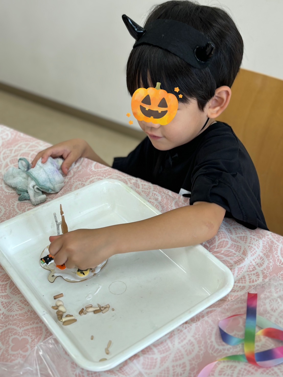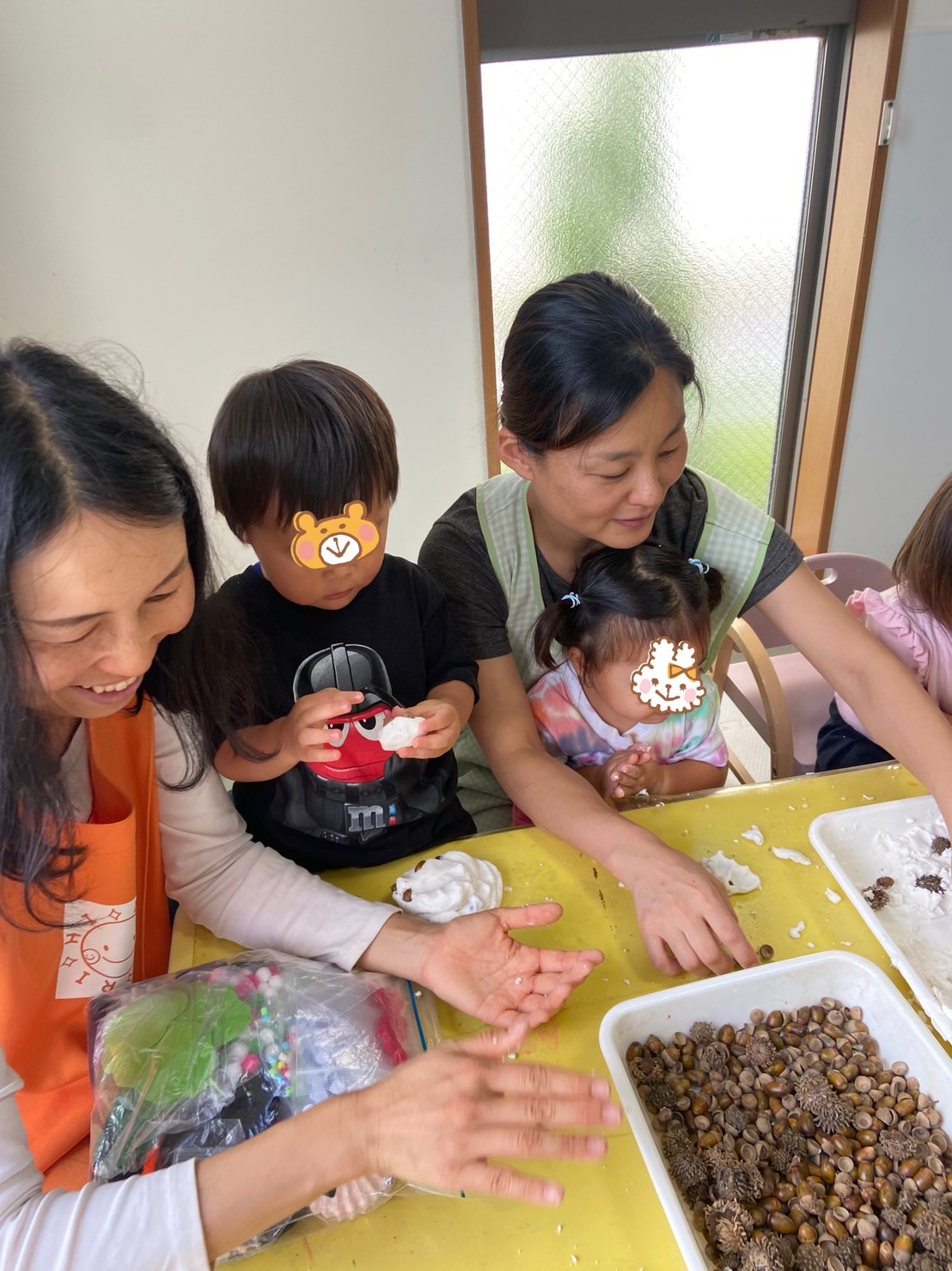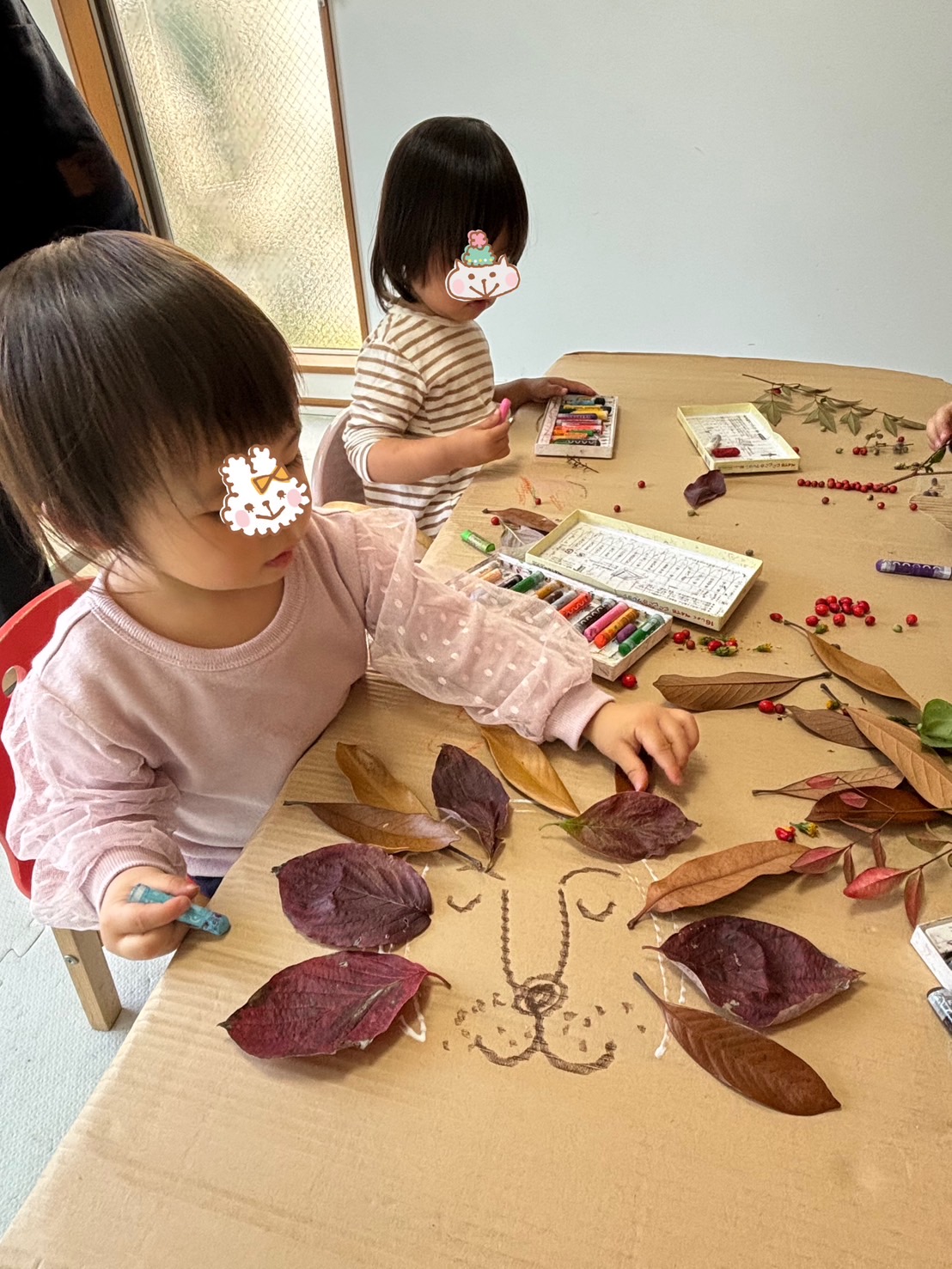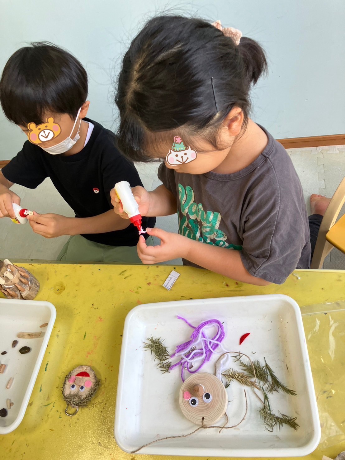 人の顔のように整えないでいいよ♪こんな顔があったら面白いな♪自由に考えて作ろう♪そんな声がけから始まると、みんな自由な発想で、いろんなお顔が完成しました✨