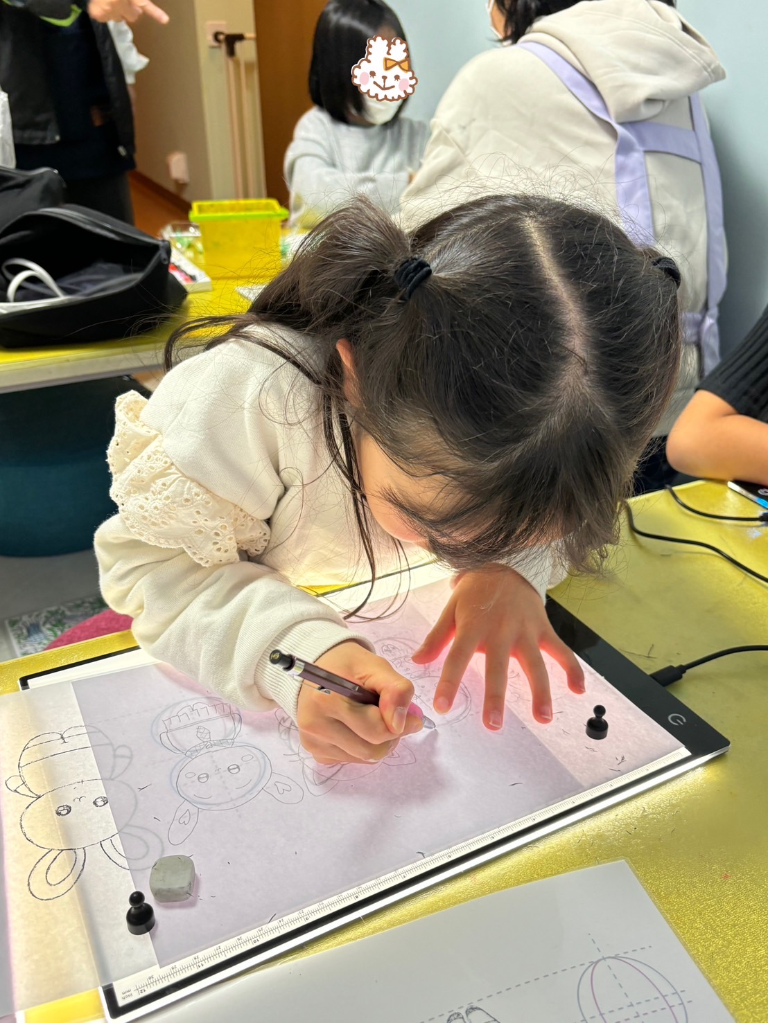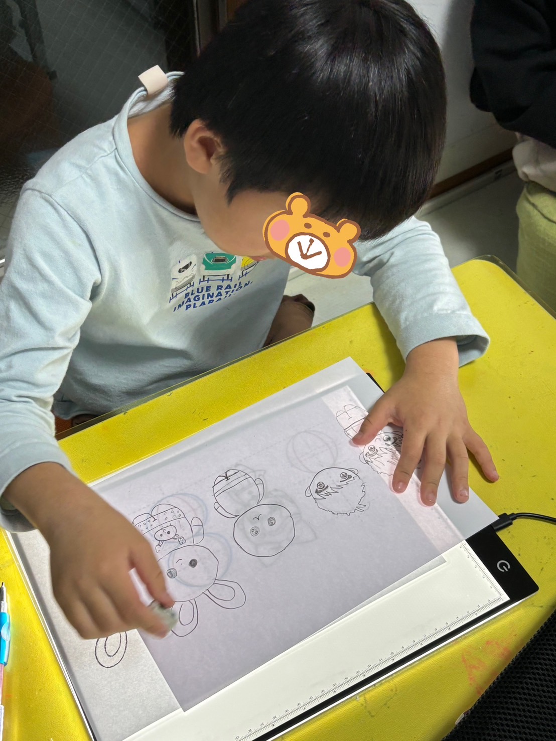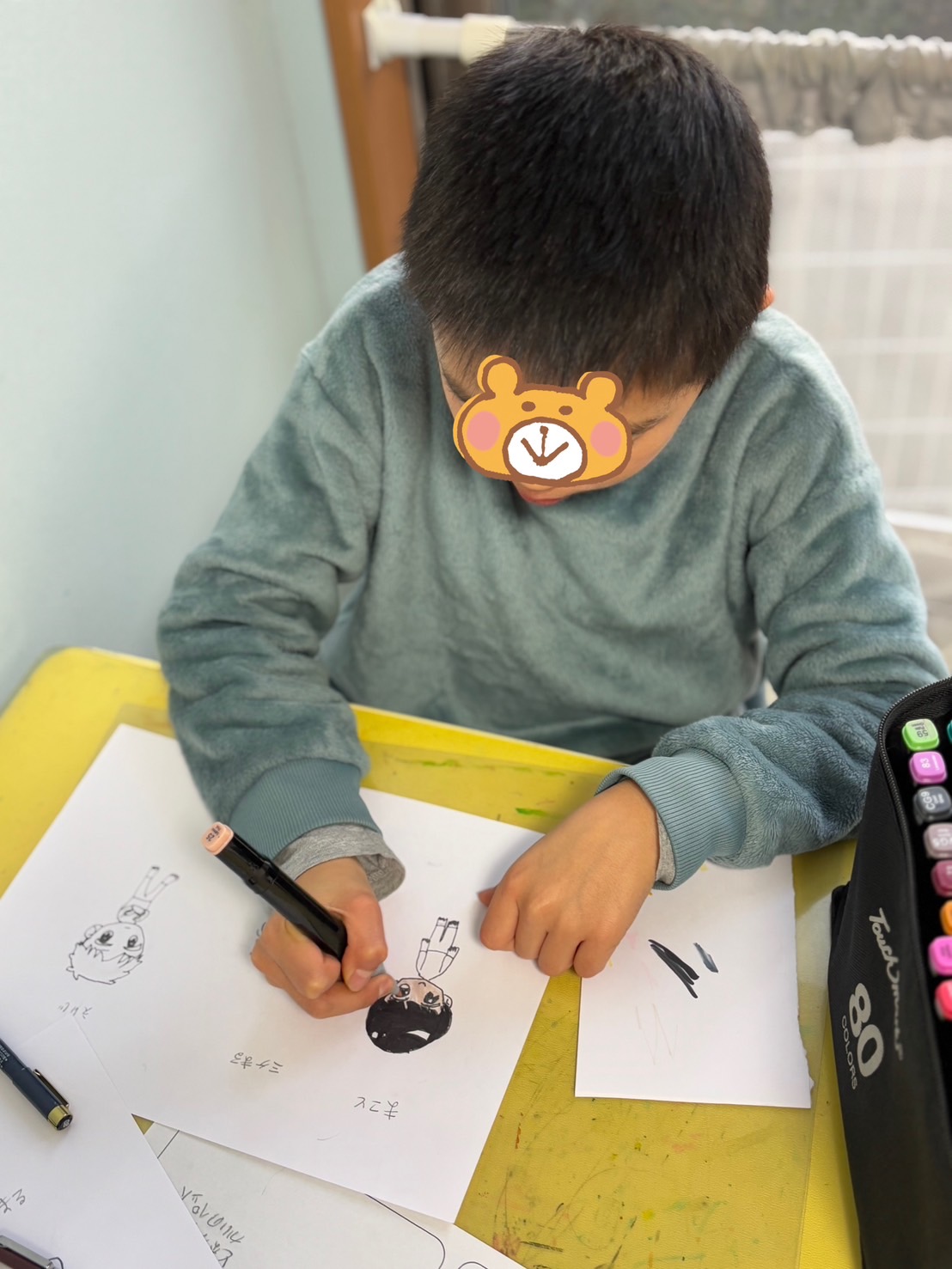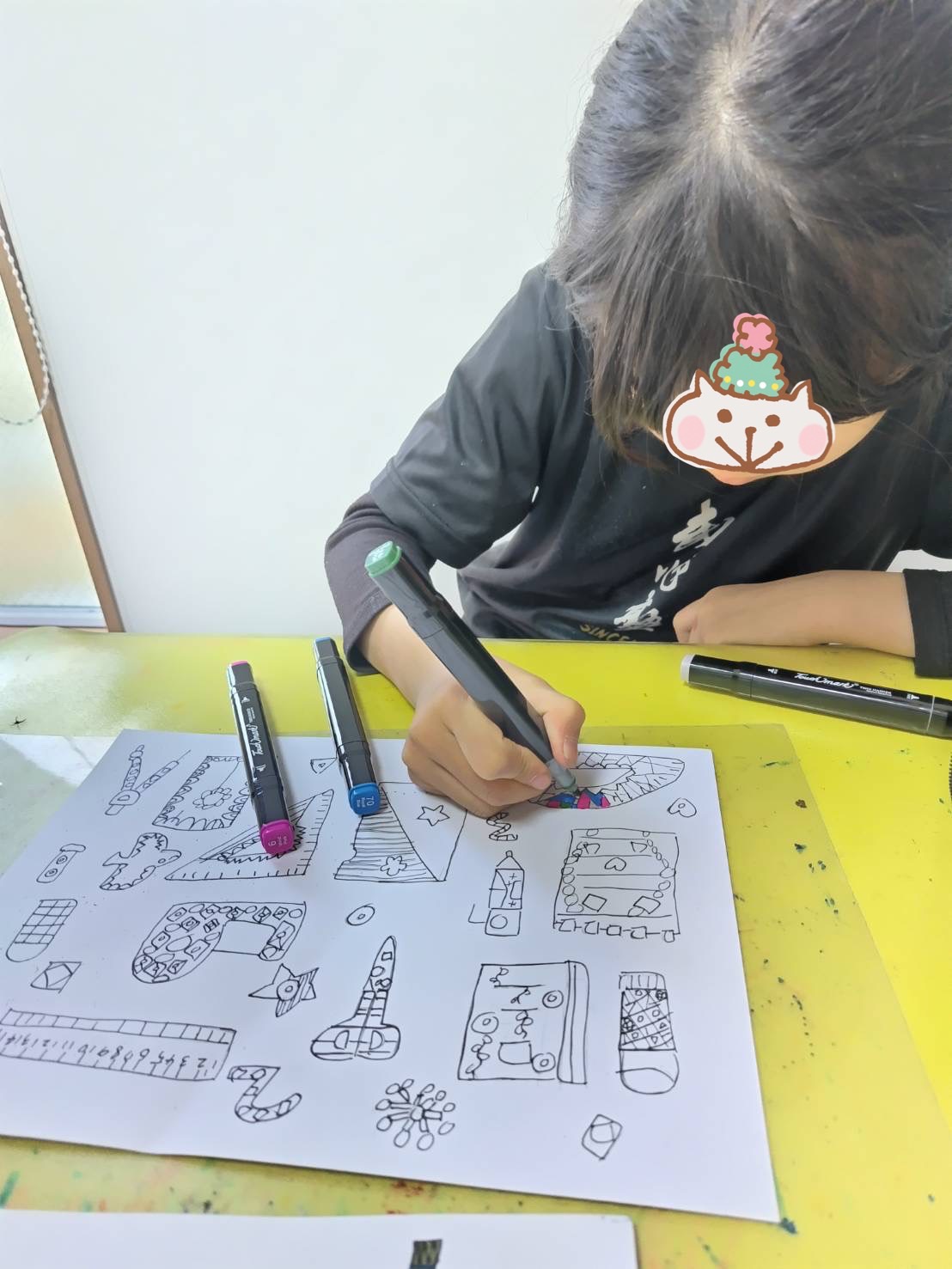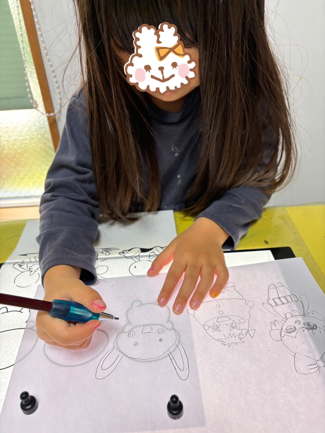 どちらかというと、小学生メインの線画デザイン教室ですが、幼稚園、保育園のお友達も通ってくれています✨