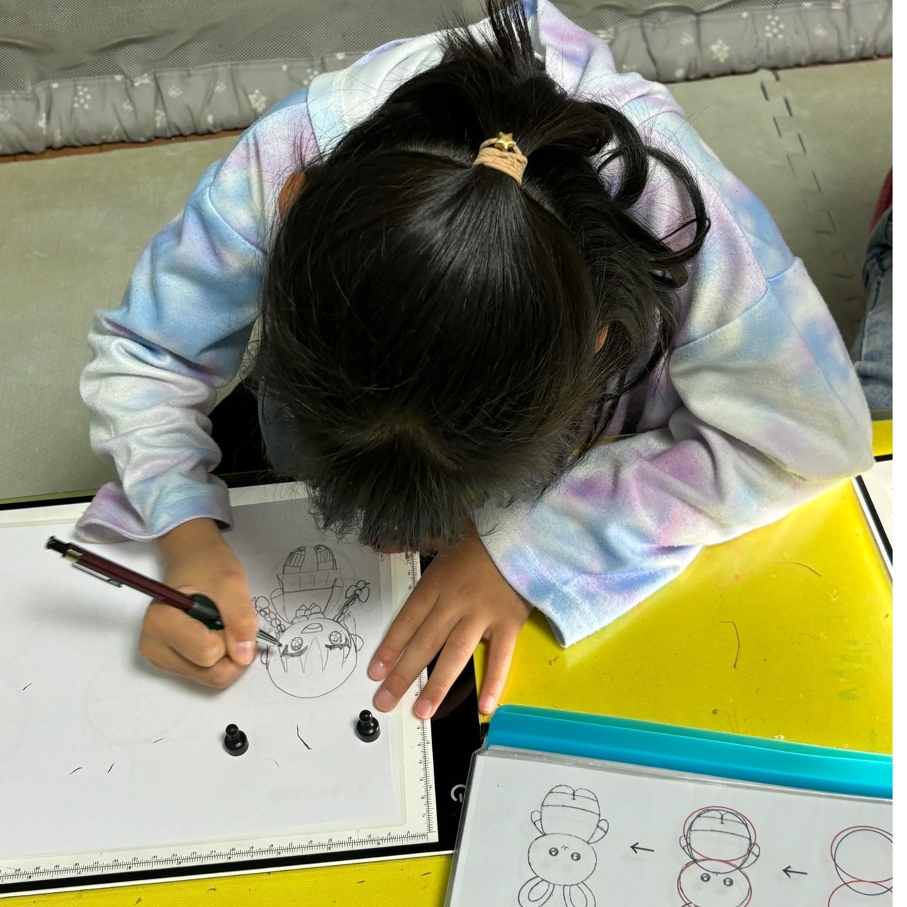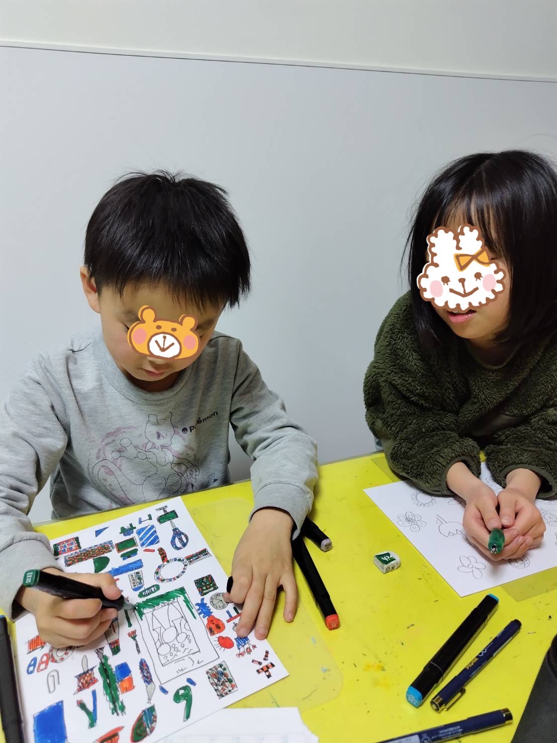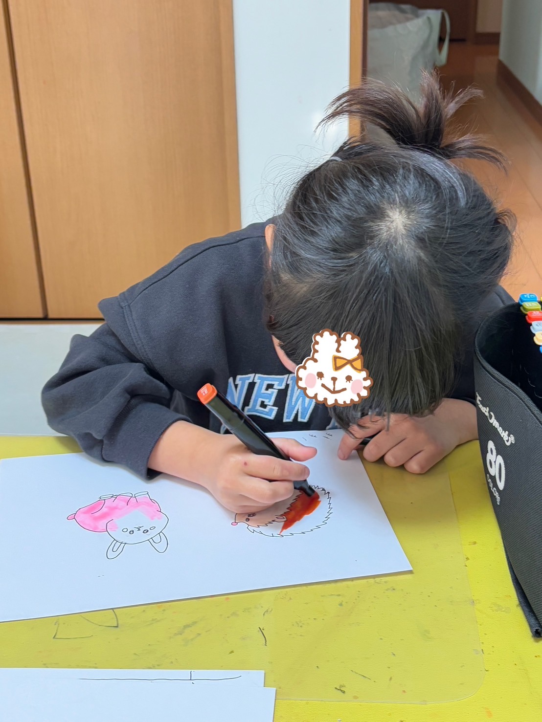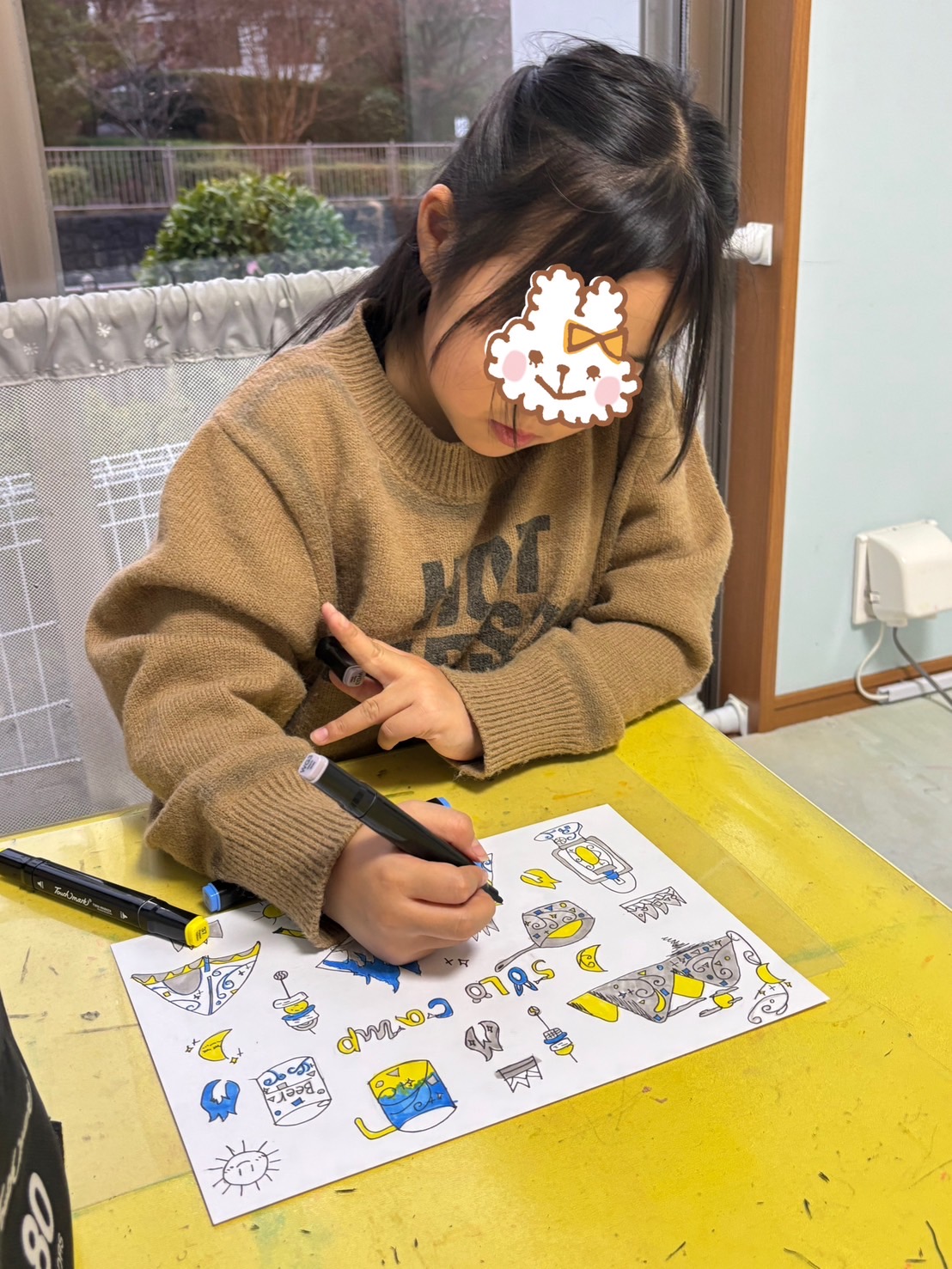 どちらかというと、小学生メインの線画デザイン教室ですが、幼稚園、保育園のお友達も通ってくれています✨