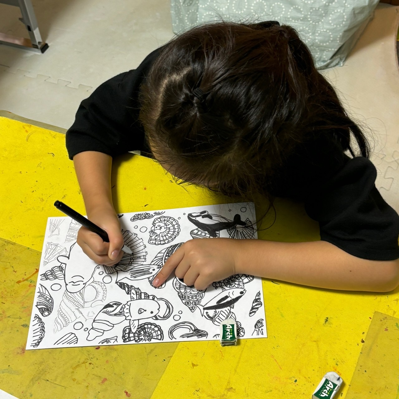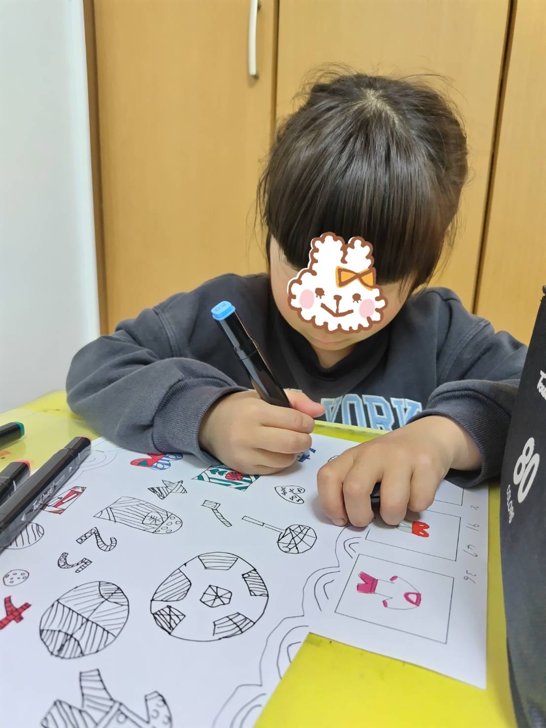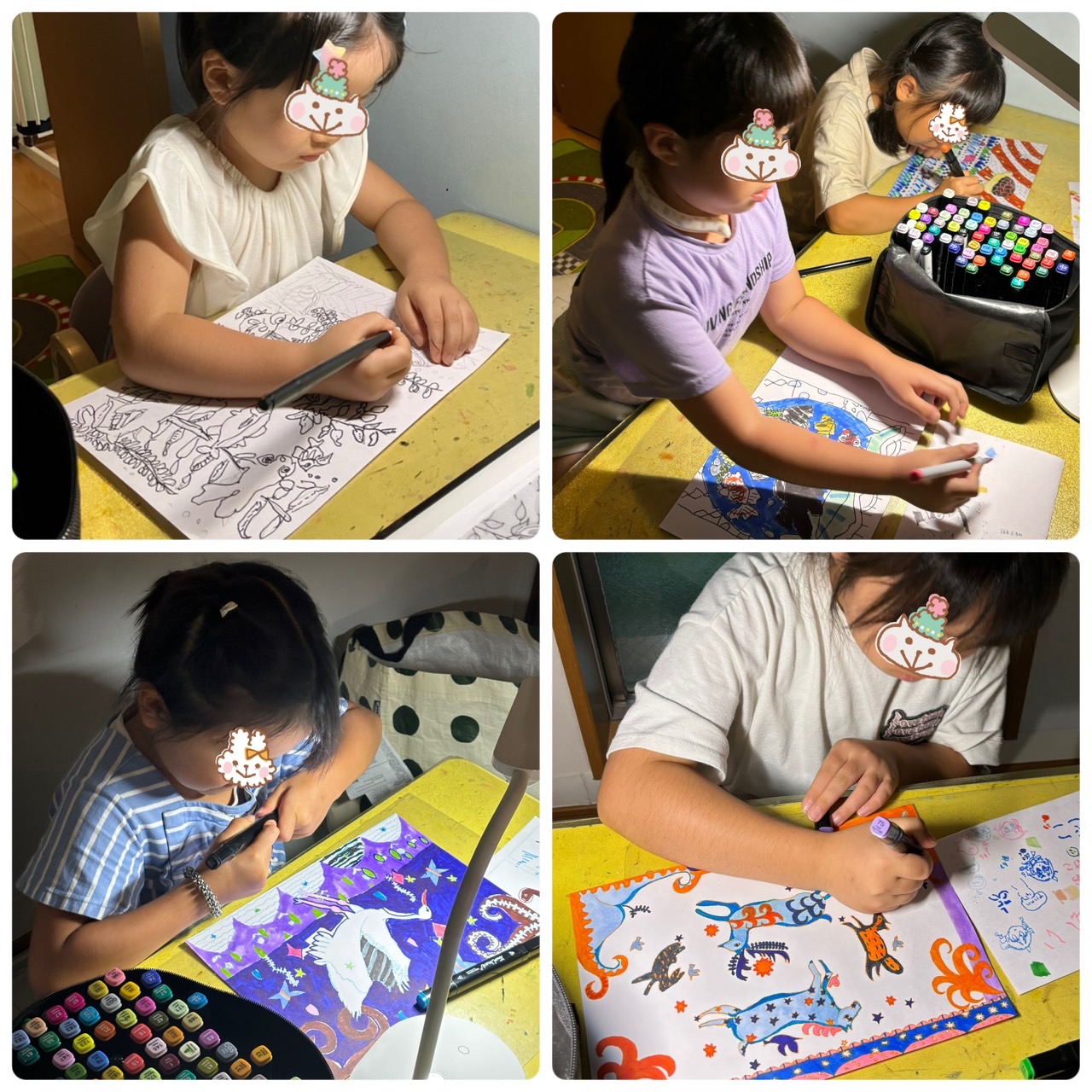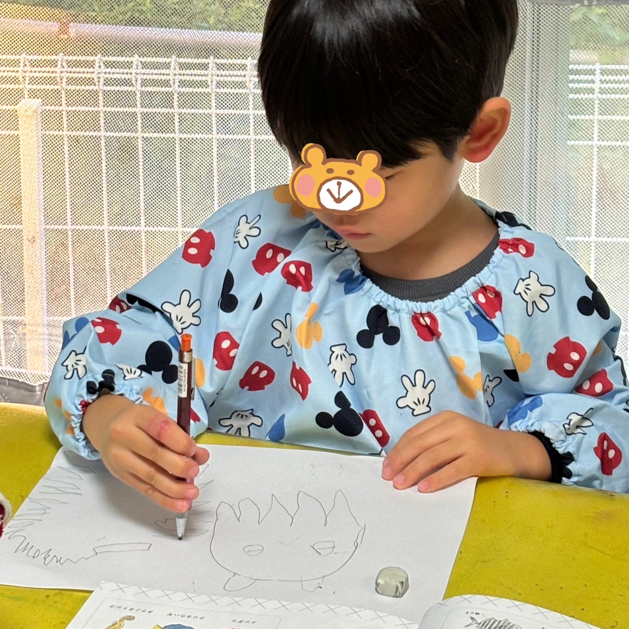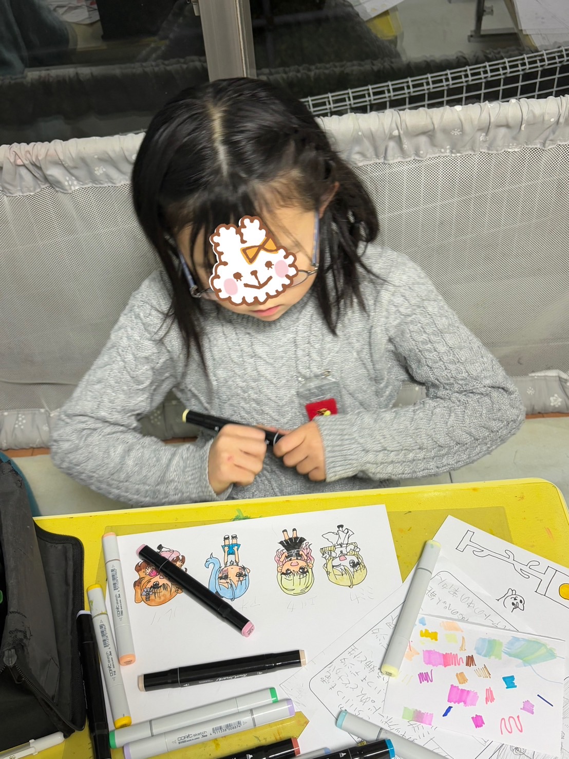 どちらかというと、小学生メインの線画デザイン教室ですが、幼稚園、保育園のお友達も通ってくれています✨