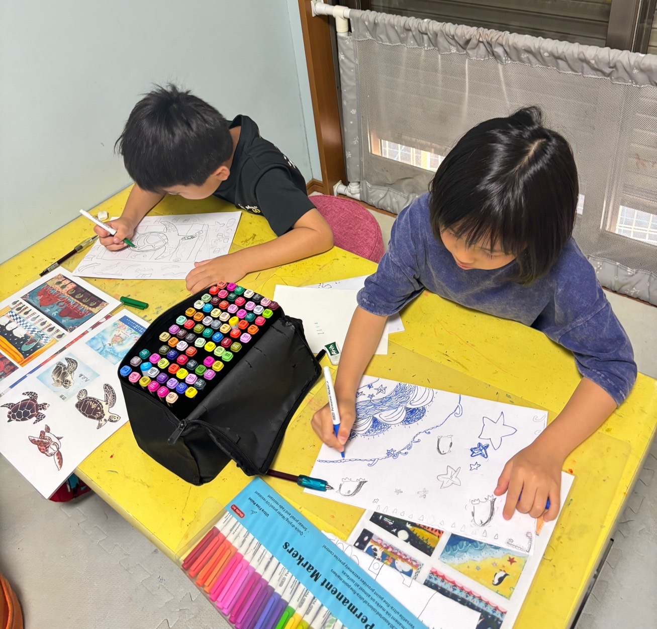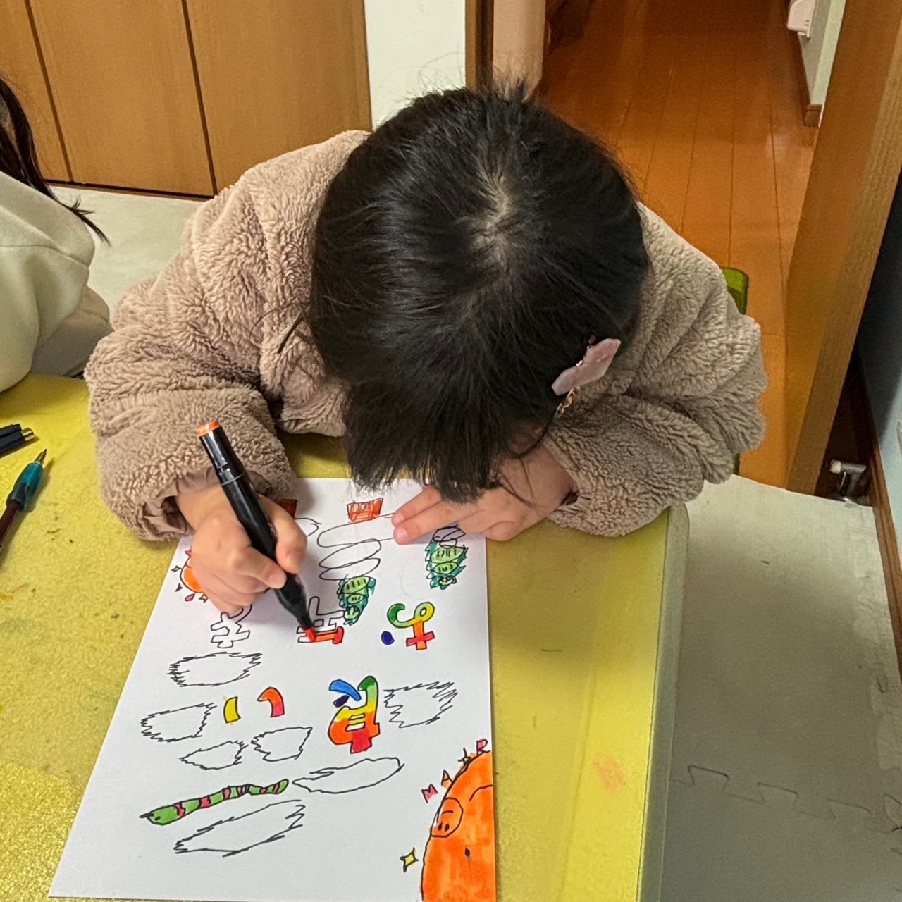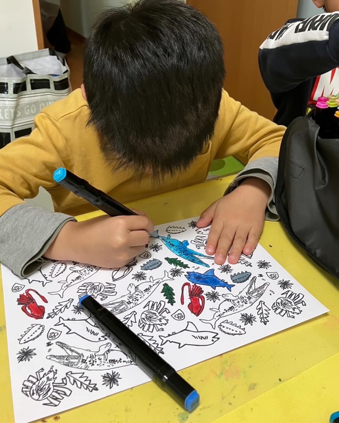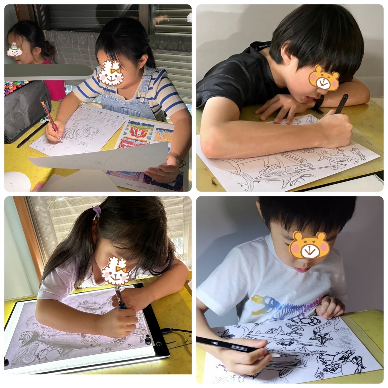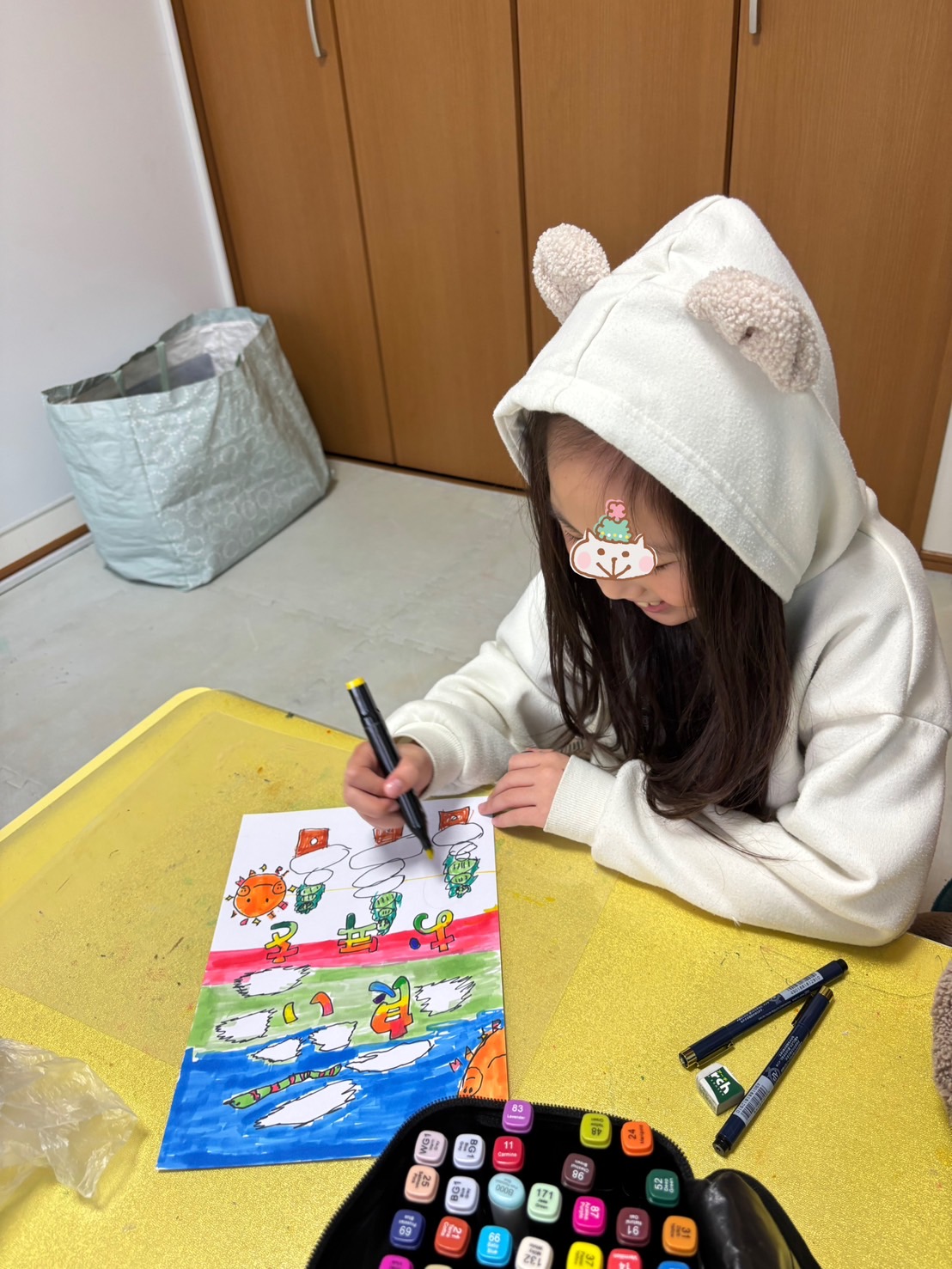 どちらかというと、小学生メインの線画デザイン教室ですが、幼稚園、保育園のお友達も通ってくれています✨