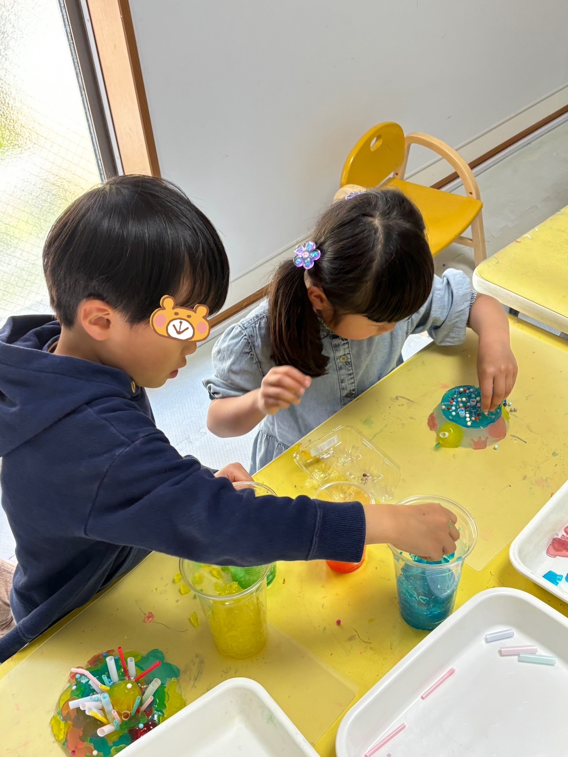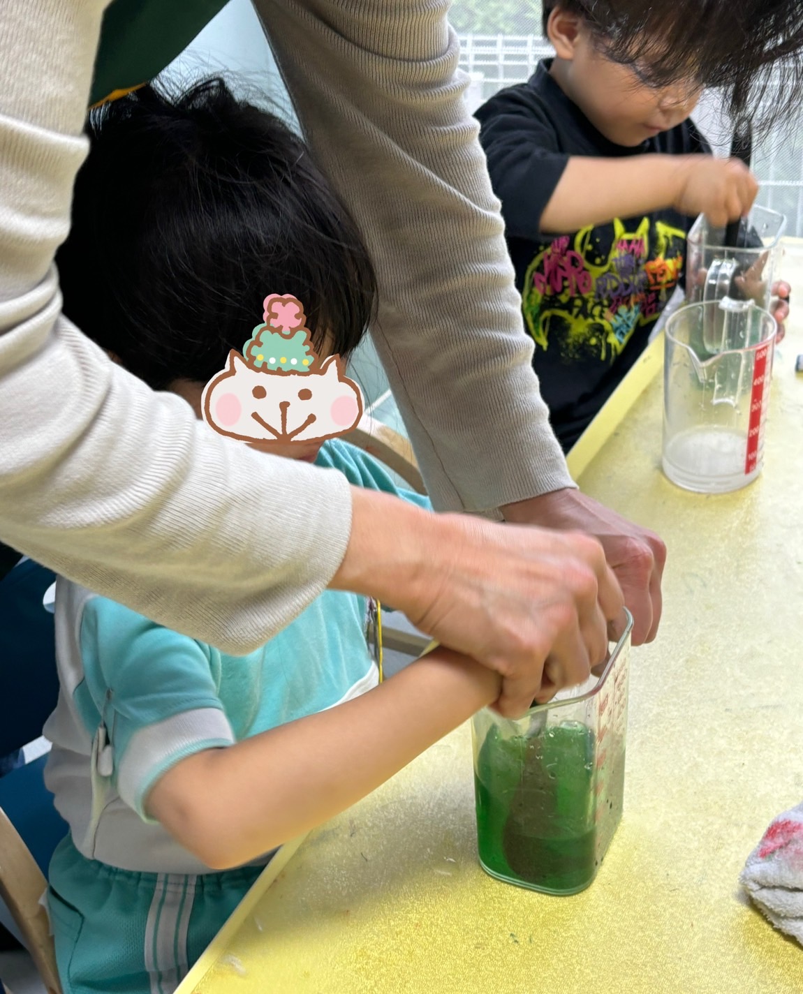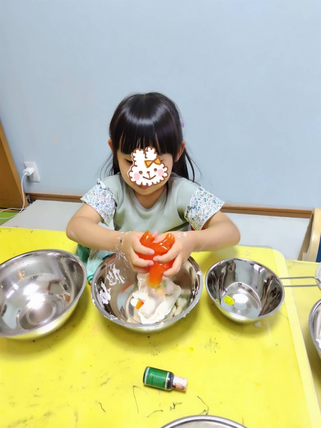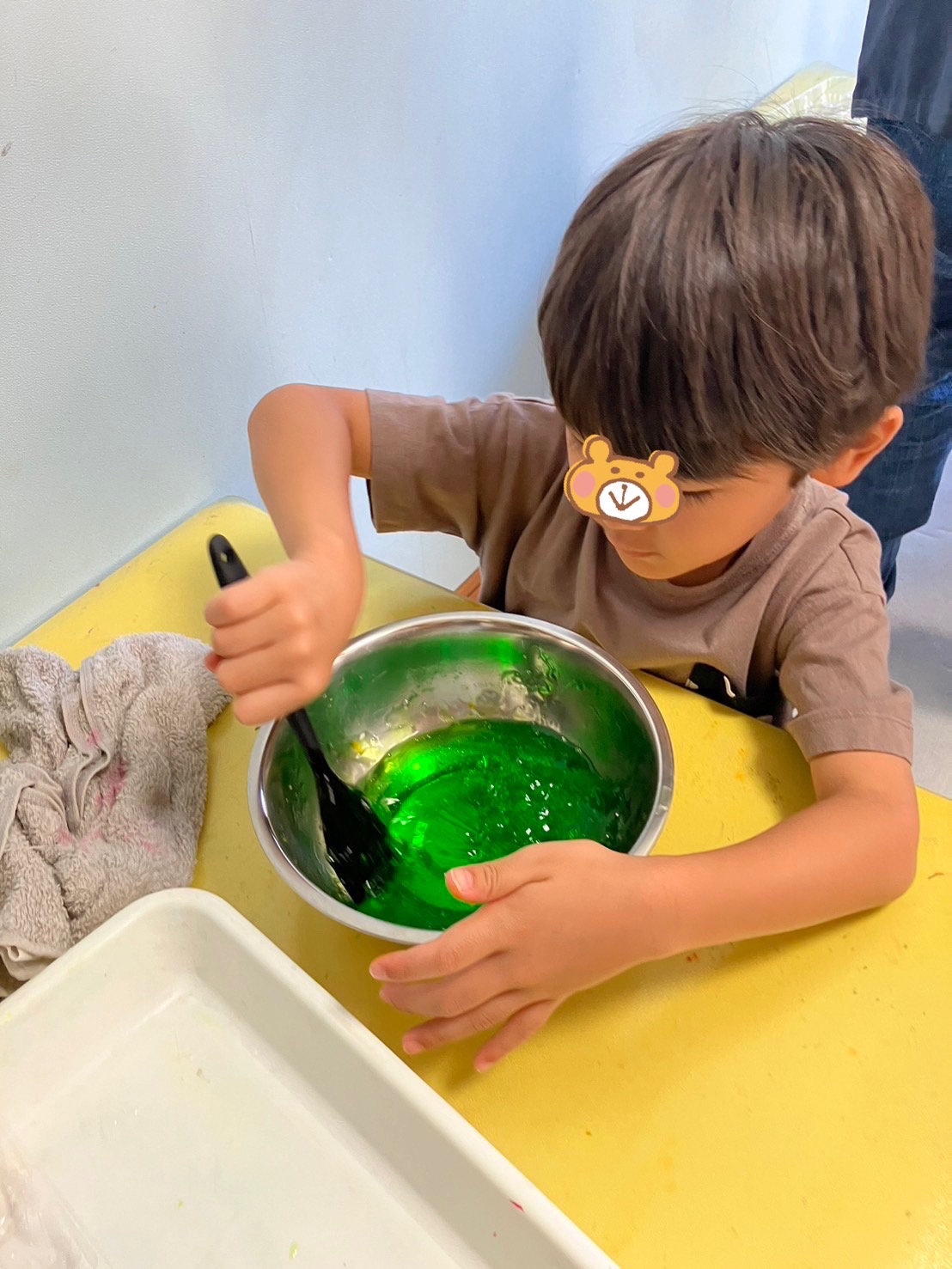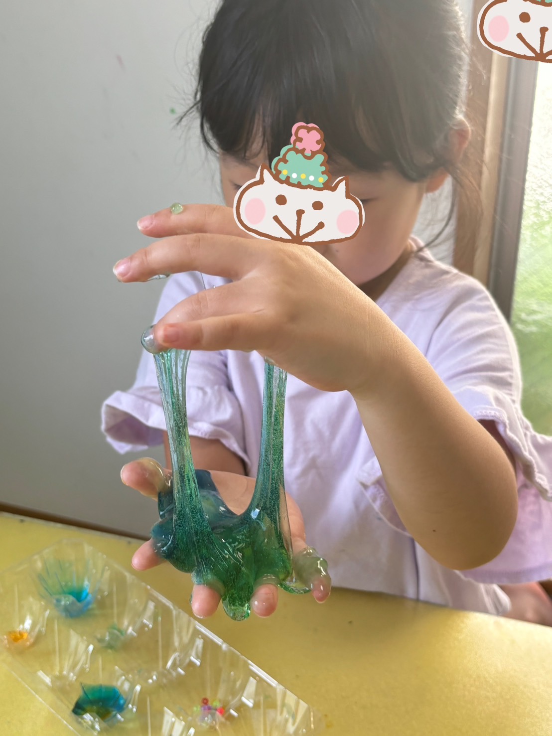 同じスライムでも、材料や分量で、柔らかくなったり固くなったり。。先生も一緒になって、どんなことができるか試作の時間を共にしました✨