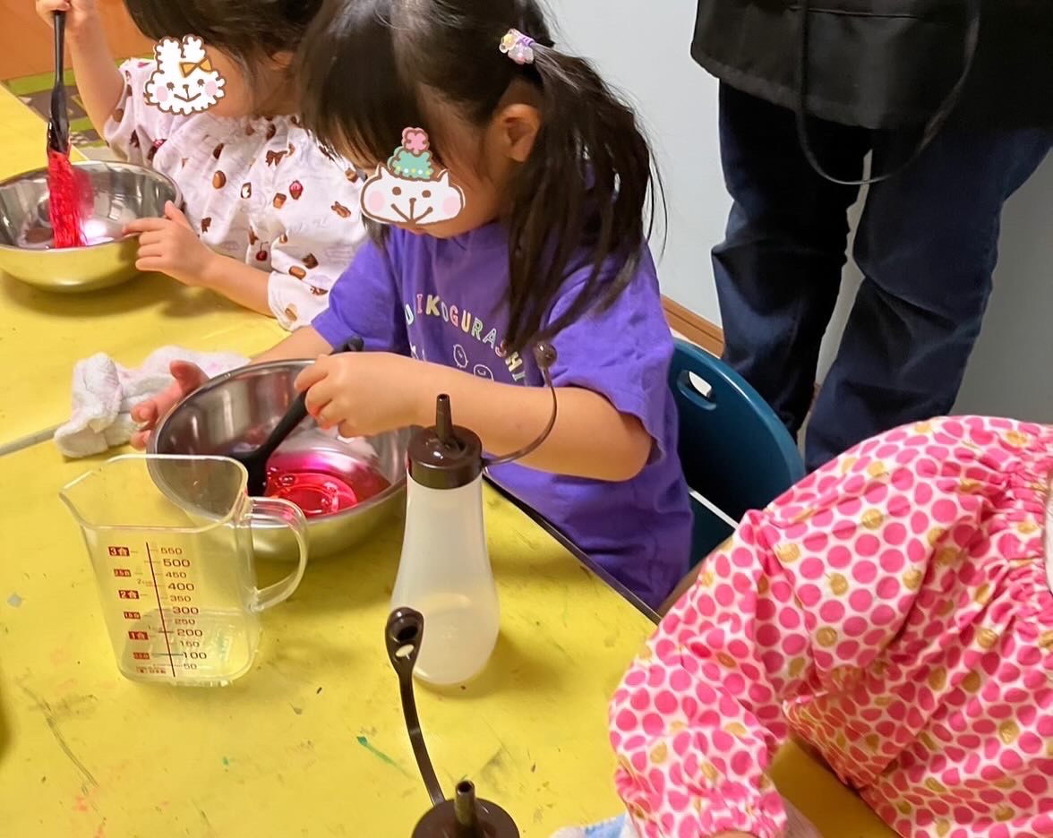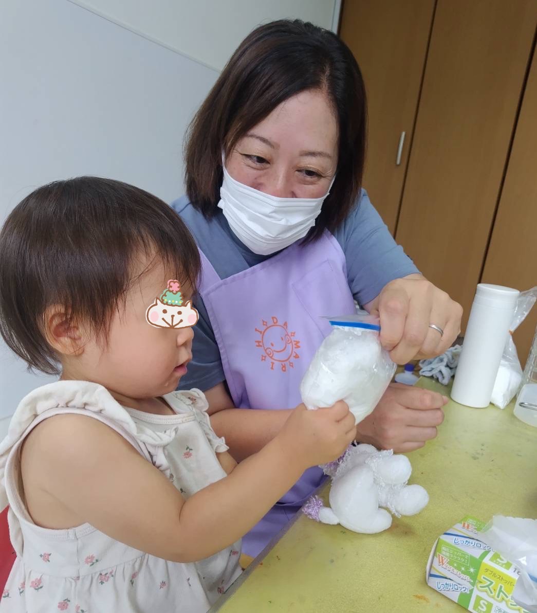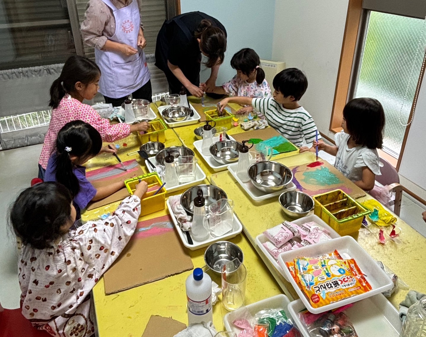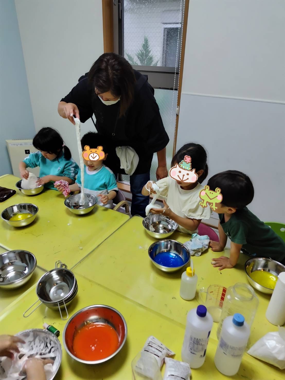 同じスライムでも、材料や分量で、柔らかくなったり固くなったり。。先生も一緒になって、どんなことができるか試作の時間を共にしました✨