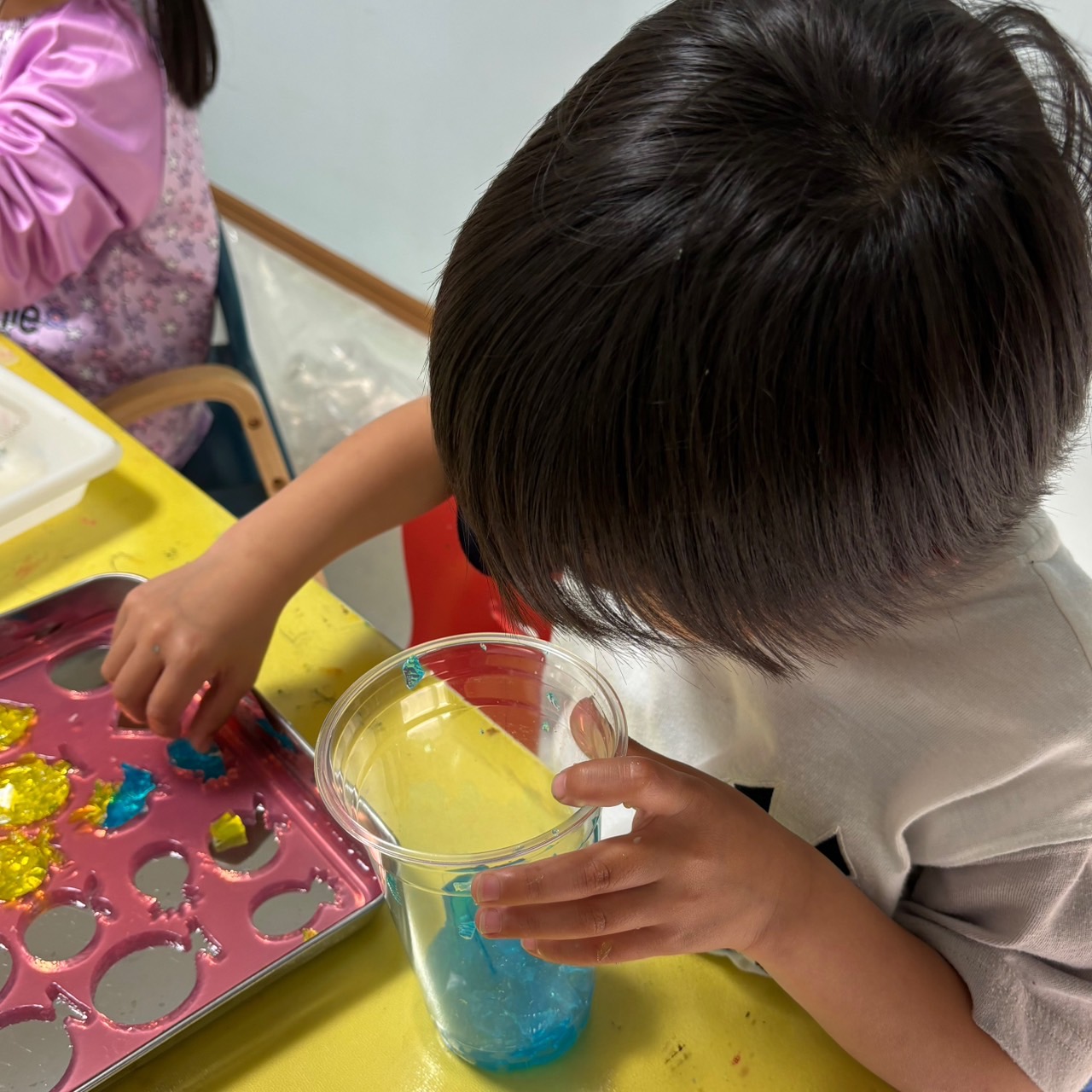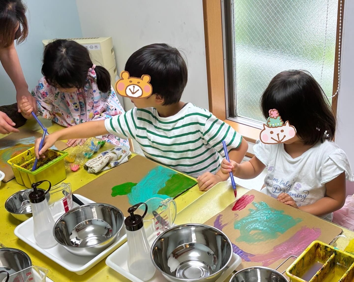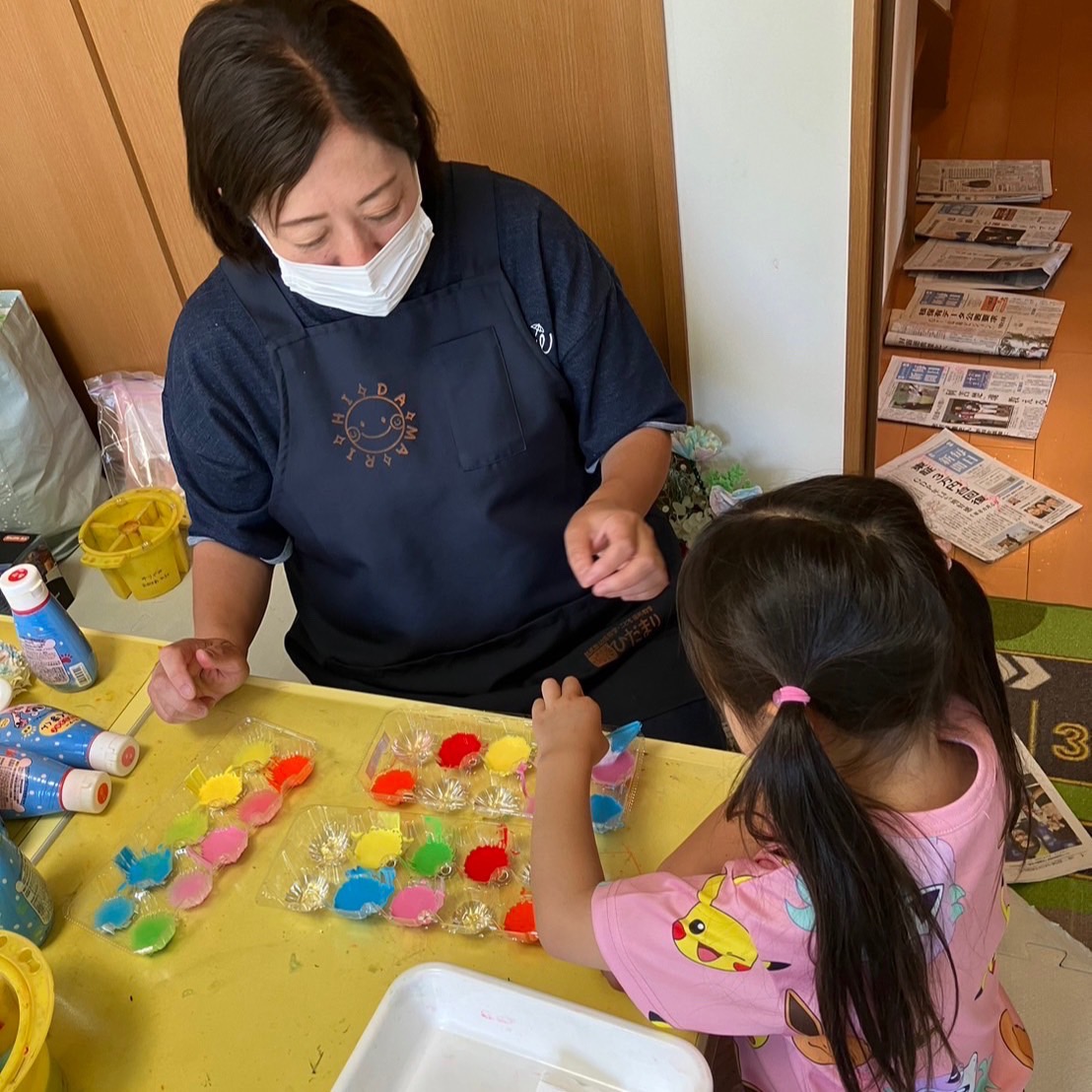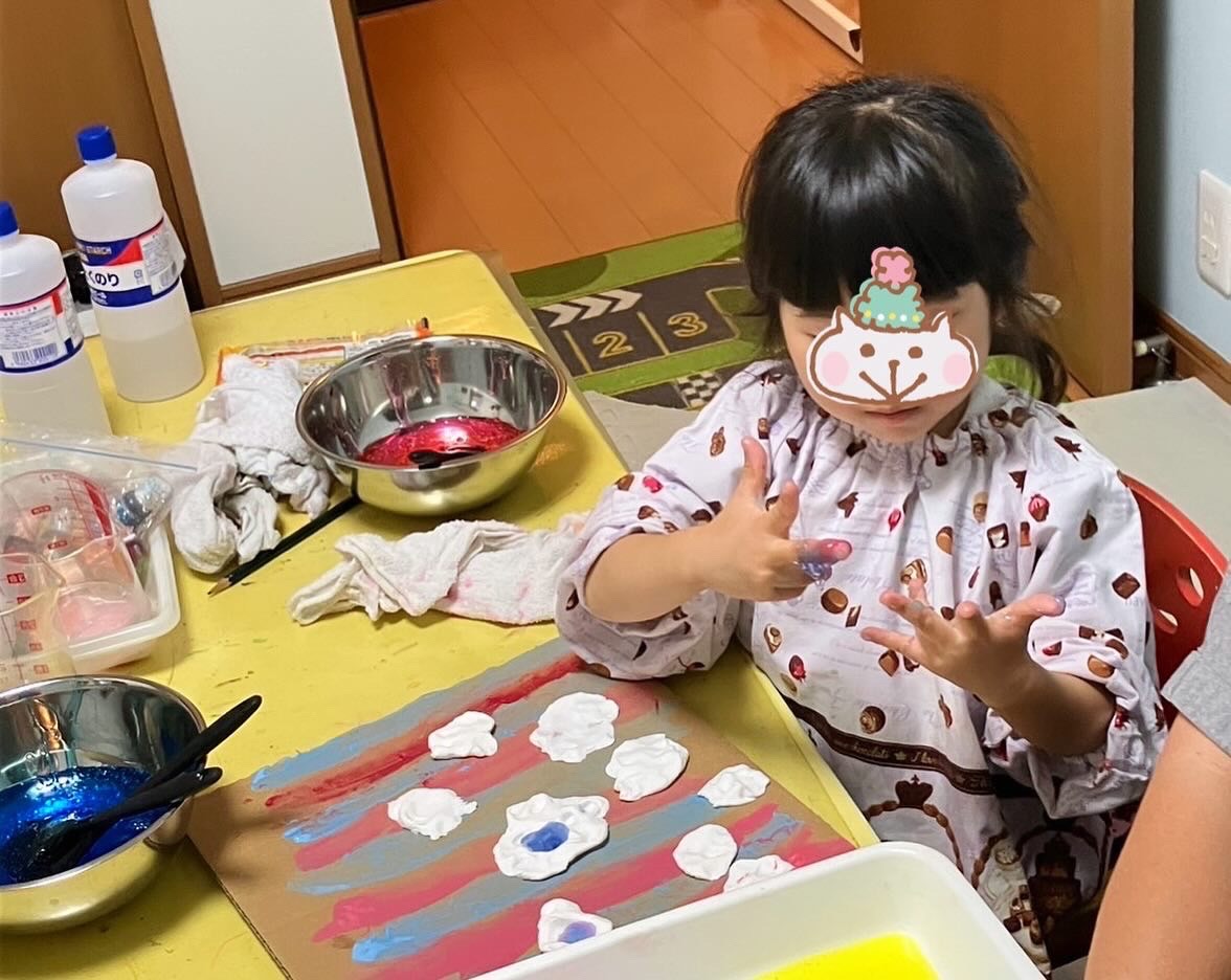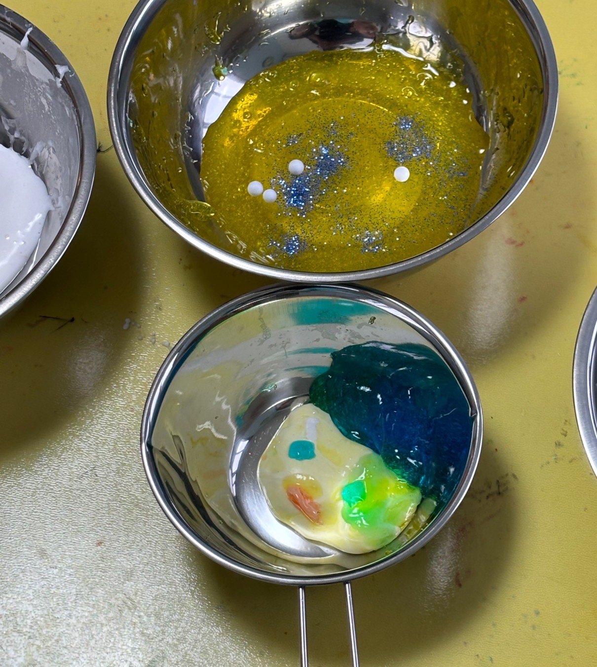 同じスライムでも、材料や分量で、柔らかくなったり固くなったり。。先生も一緒になって、どんなことができるか試作の時間を共にしました✨
