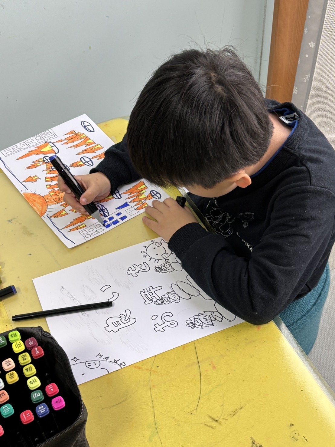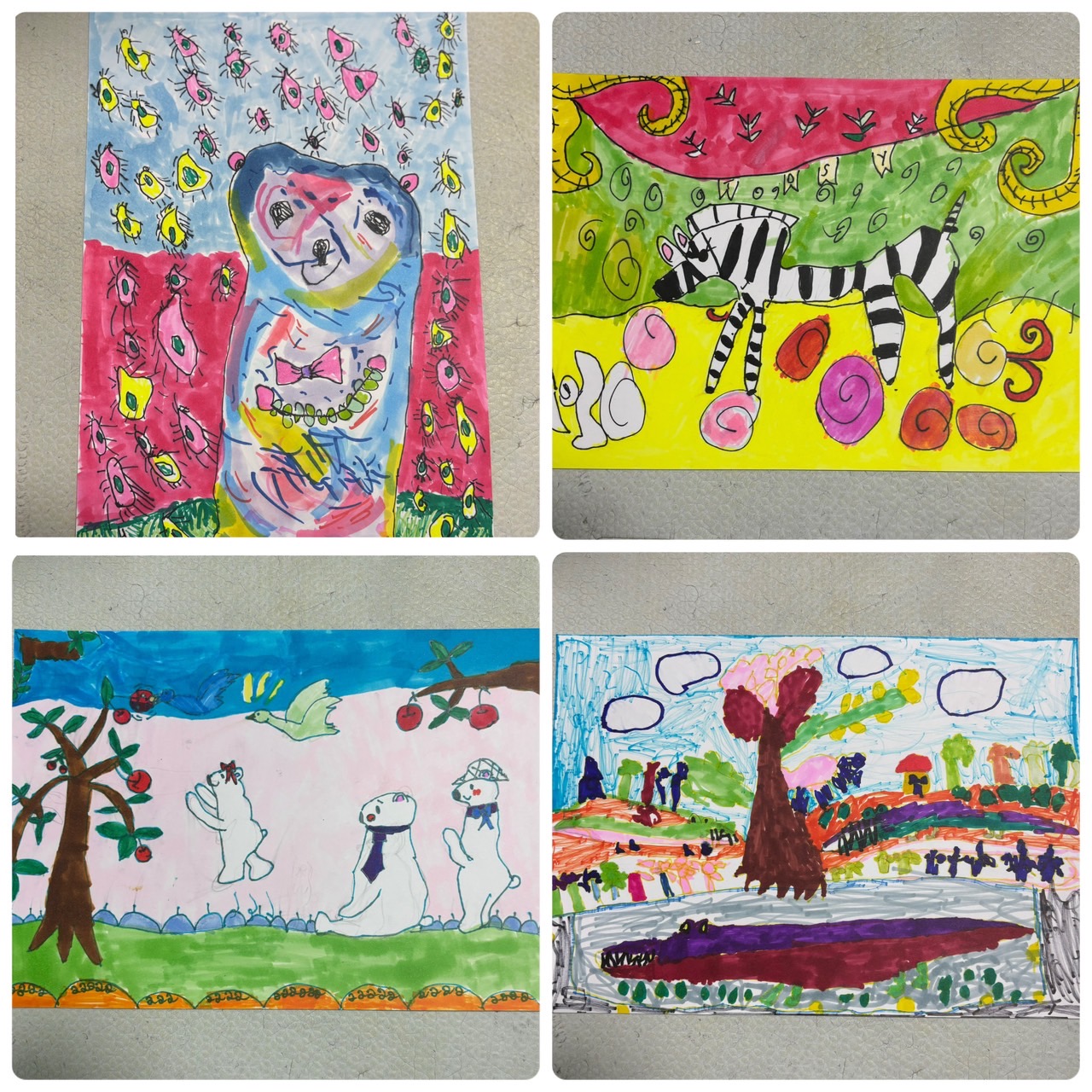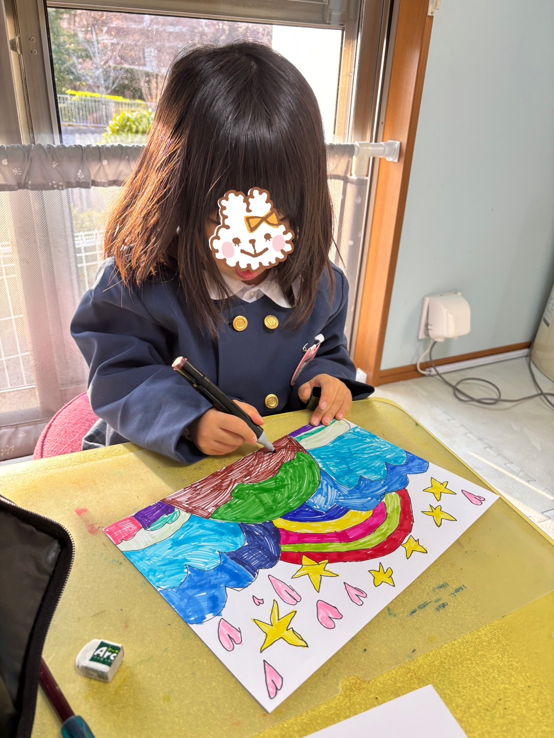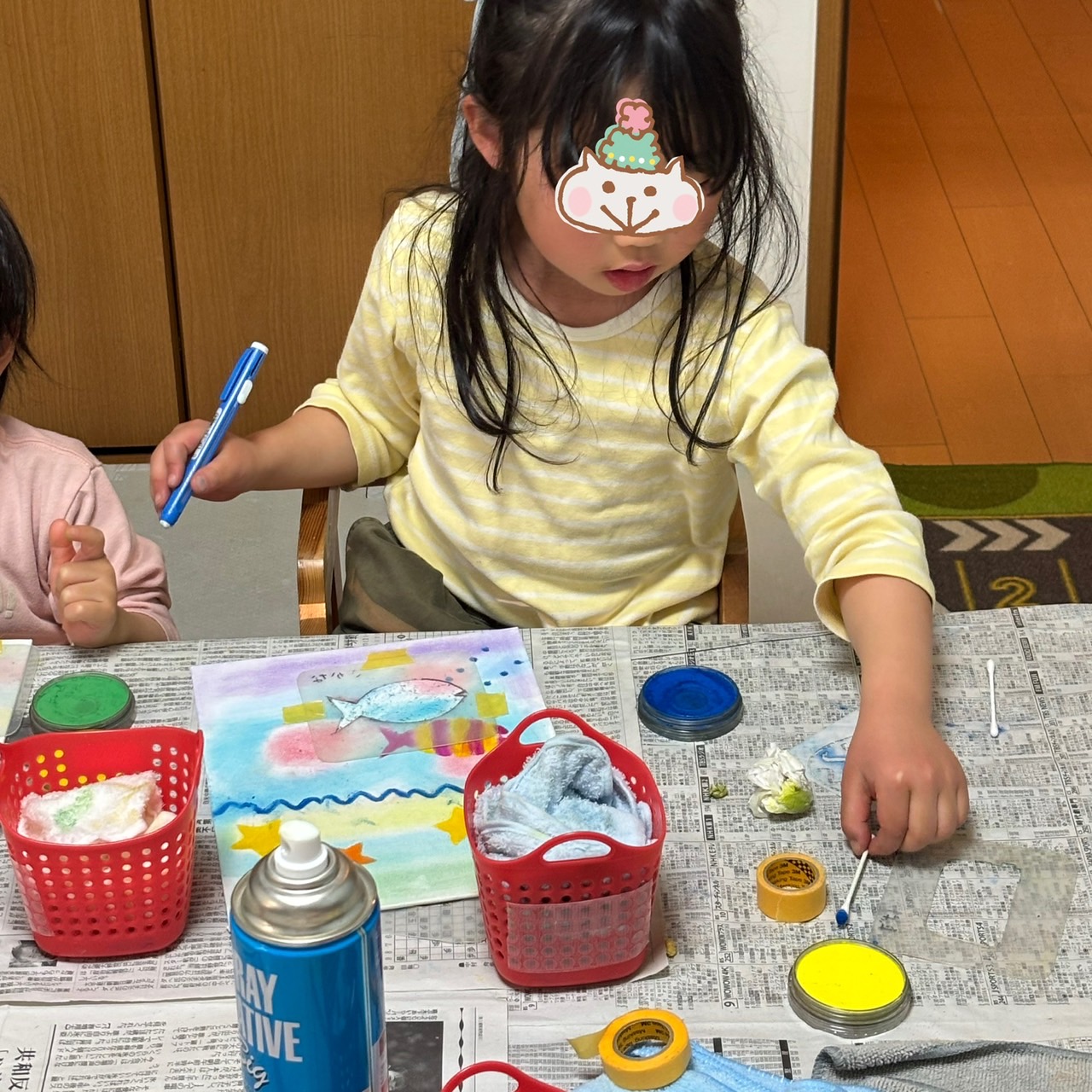 ゴールデンウィーク後に、もう一案テーマを考えてきました!もう一度書き直したい!と言う子もいたり、人の体の部分の絵を何度も何度も書き直して、どんどん形がうまくとれるようになる子もいたり、お友達の絵が気になって、こっそり観察する子もいたり、みんな良い刺激を与えながら成長している姿が、とても素敵でした✨