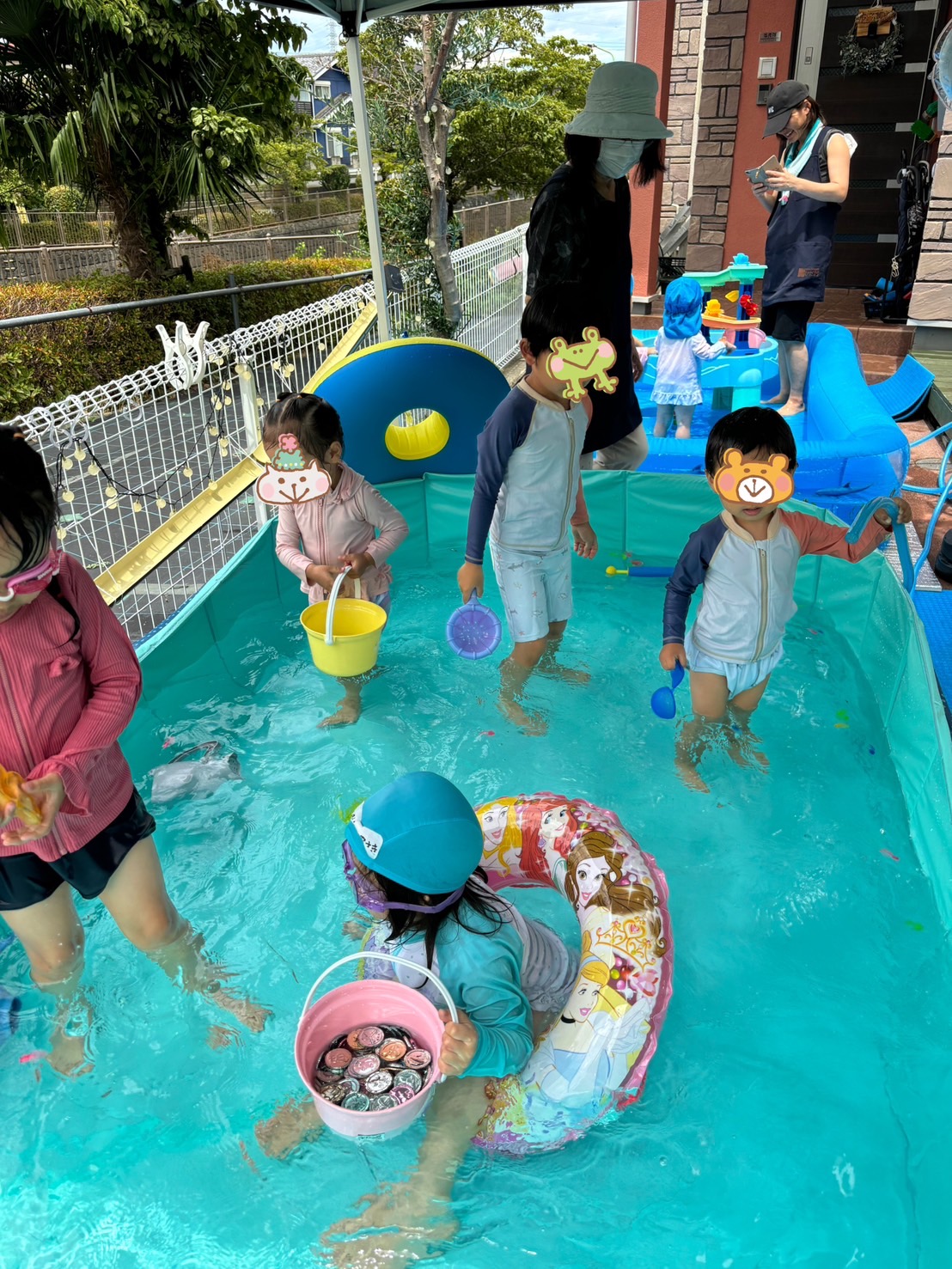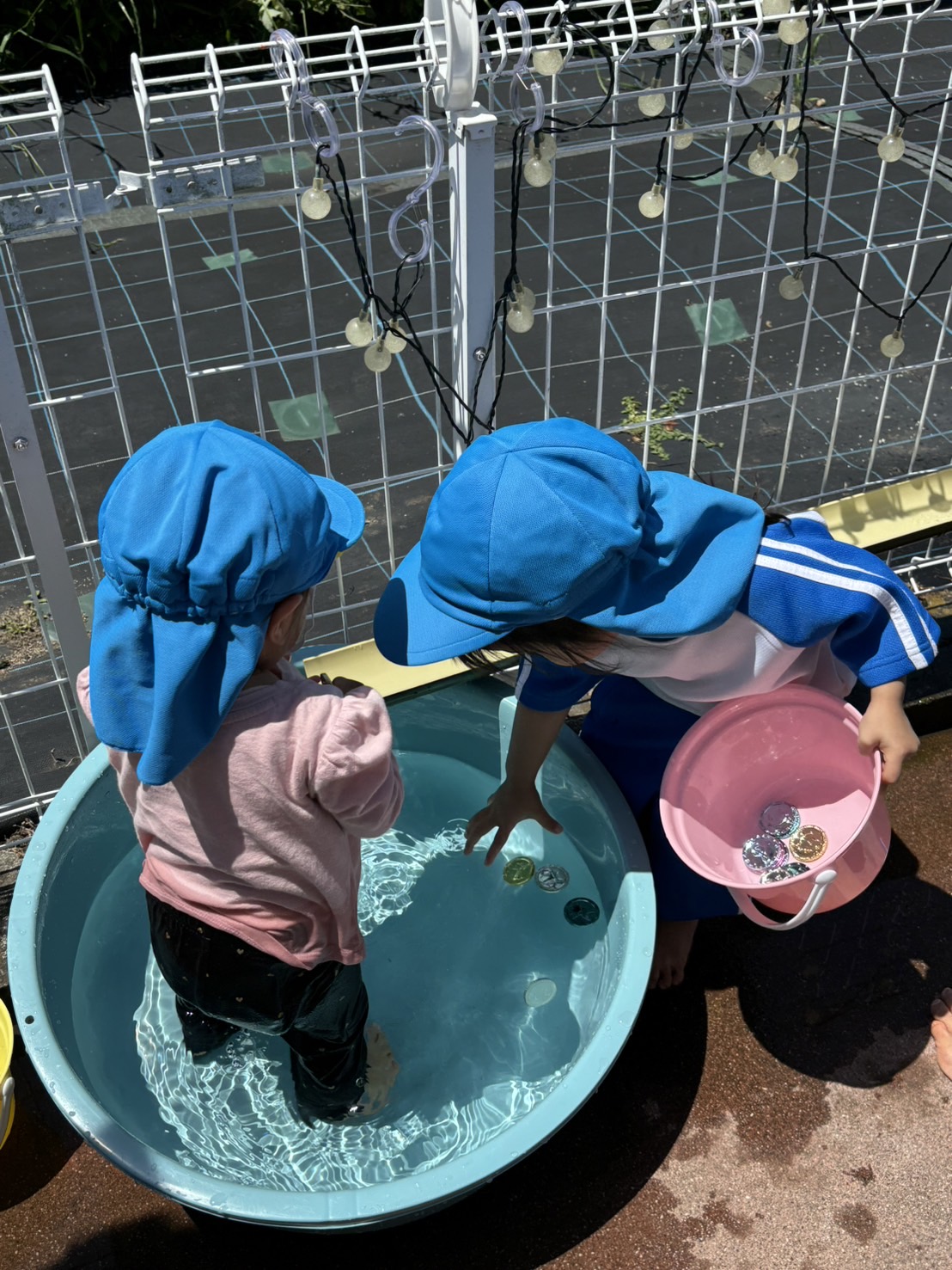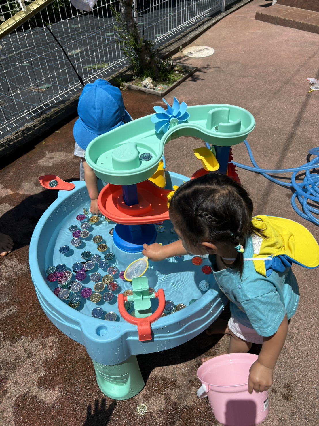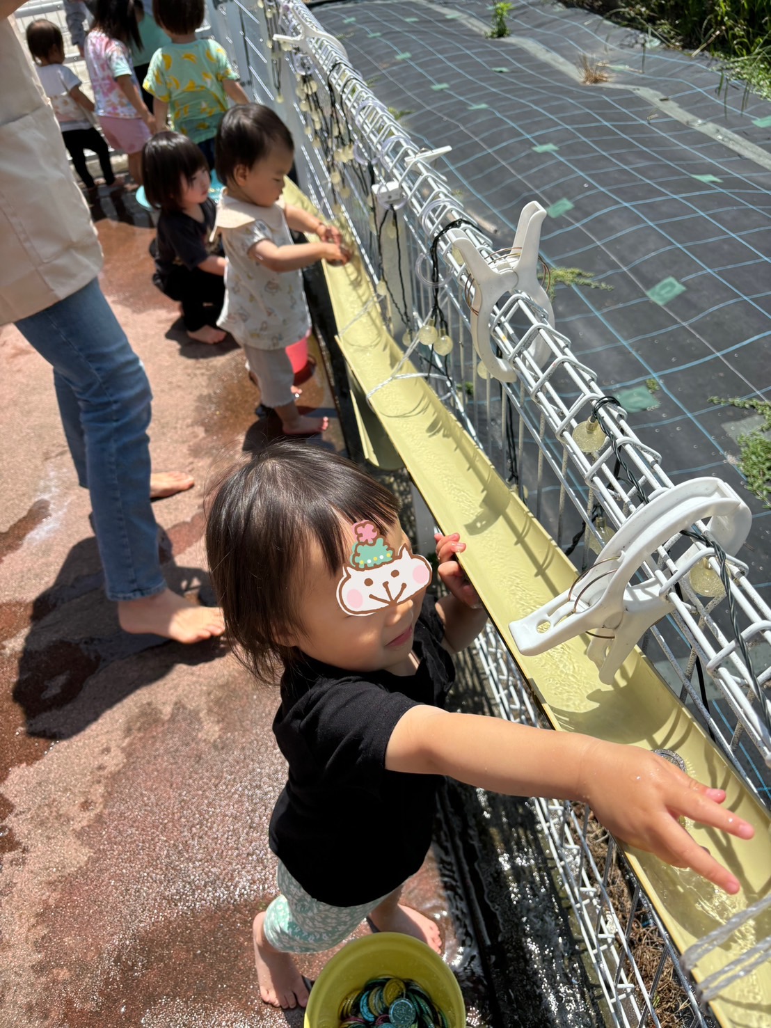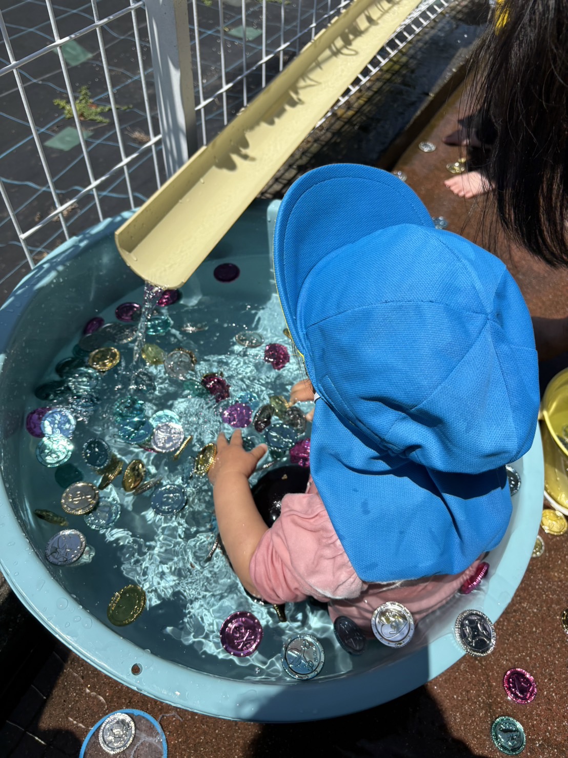 子どもたちは、思ったより流れの速いコインを、どうやってゲットするか、いろいろ頭で考えて試していました✨