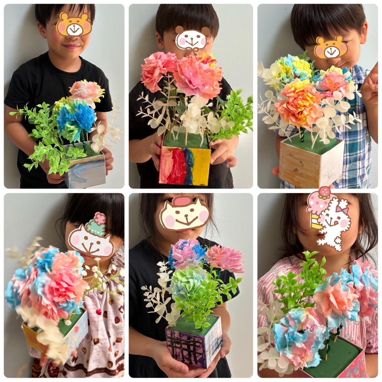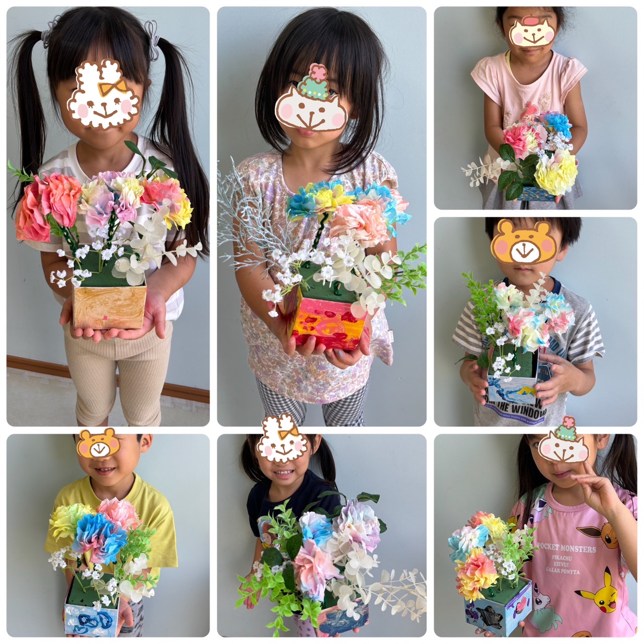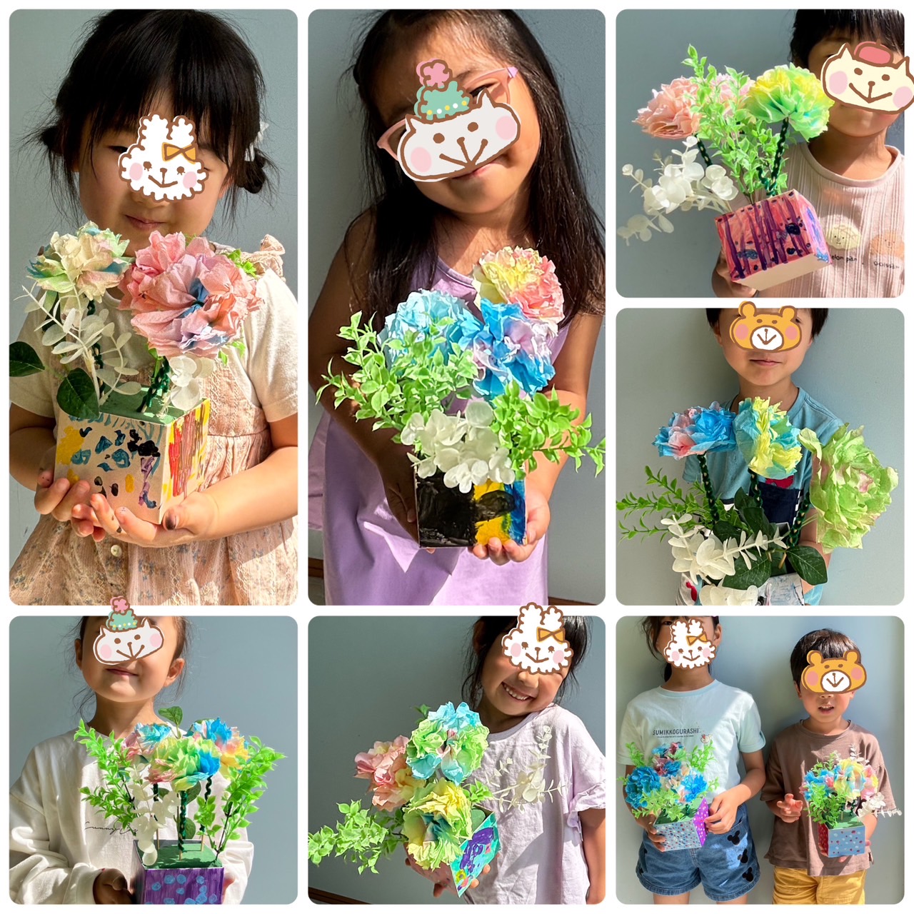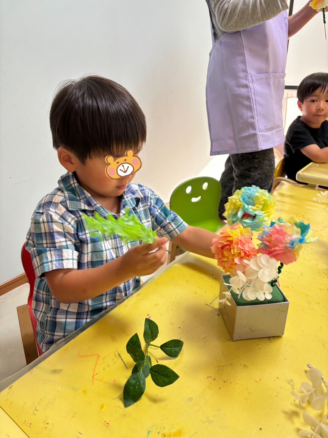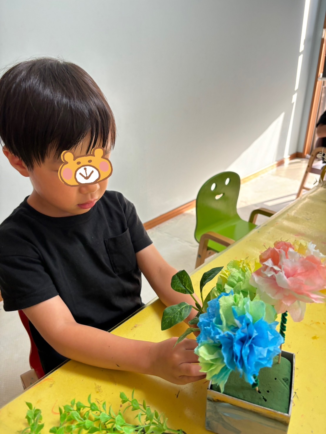 生花もどきに、どの葉っぱをどこに挿せば、お花がもっと素敵に見えるかなど考えて、一人一人が満足いった作品に仕上げられたのではないでしょうか?☺️🙌✨