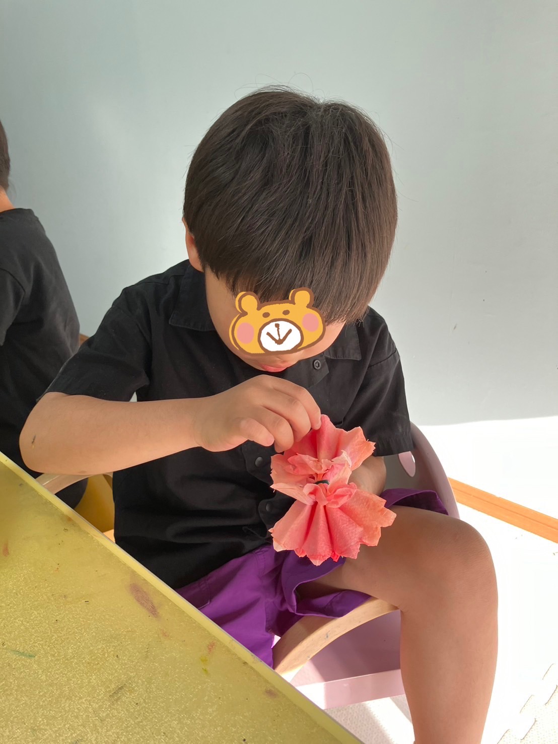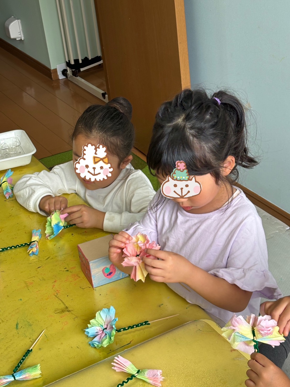 5月は、折り染めでお花を作ろう♪ということで、みんなでお花を作りました✨