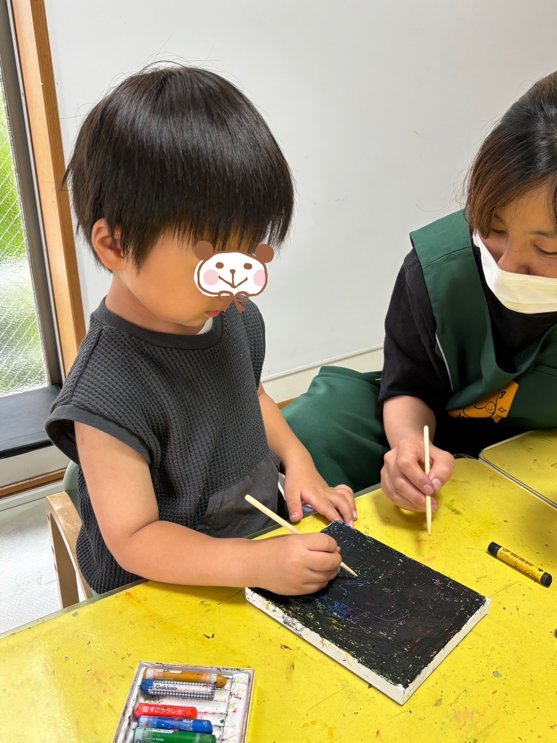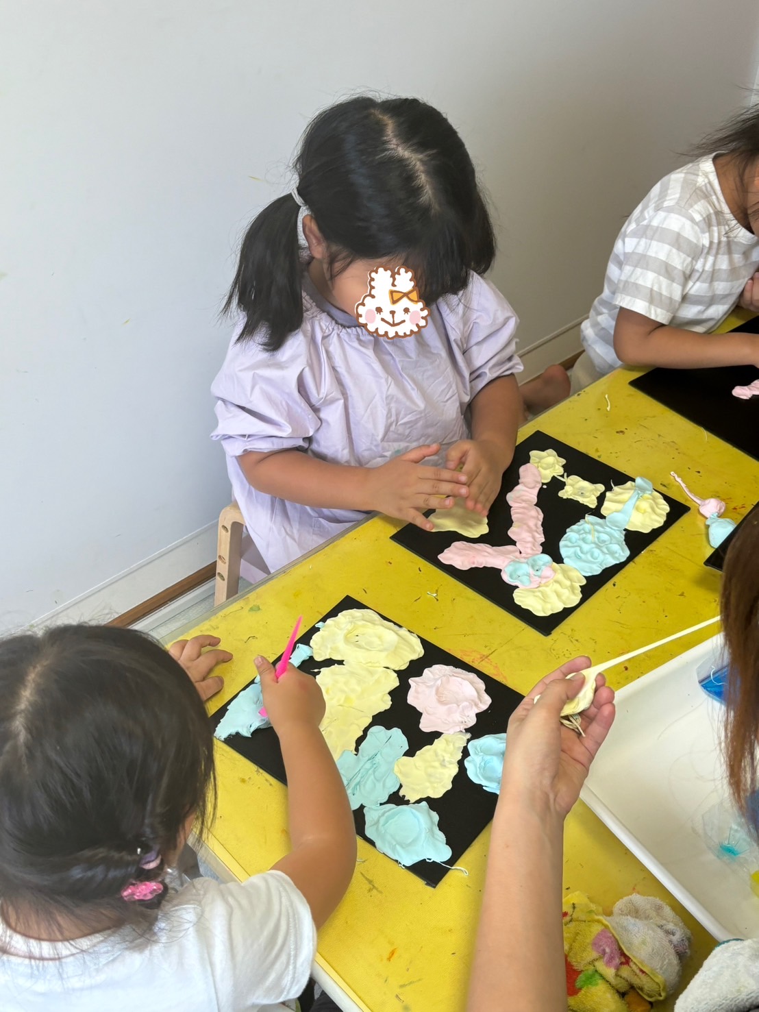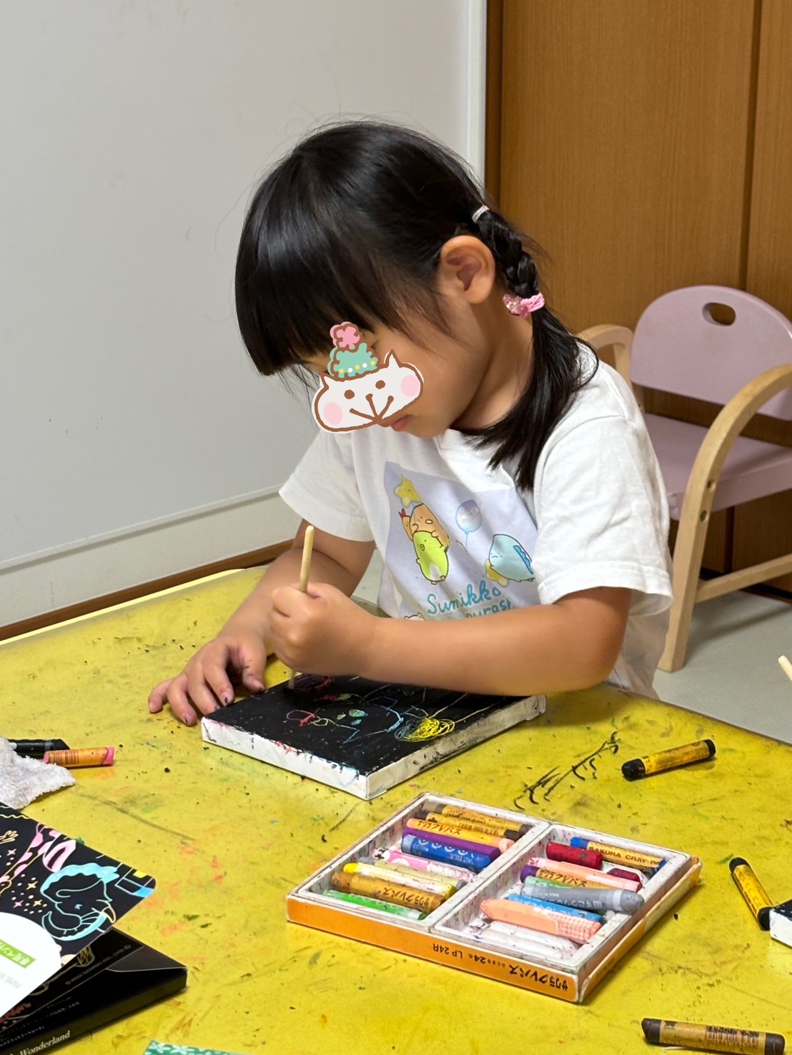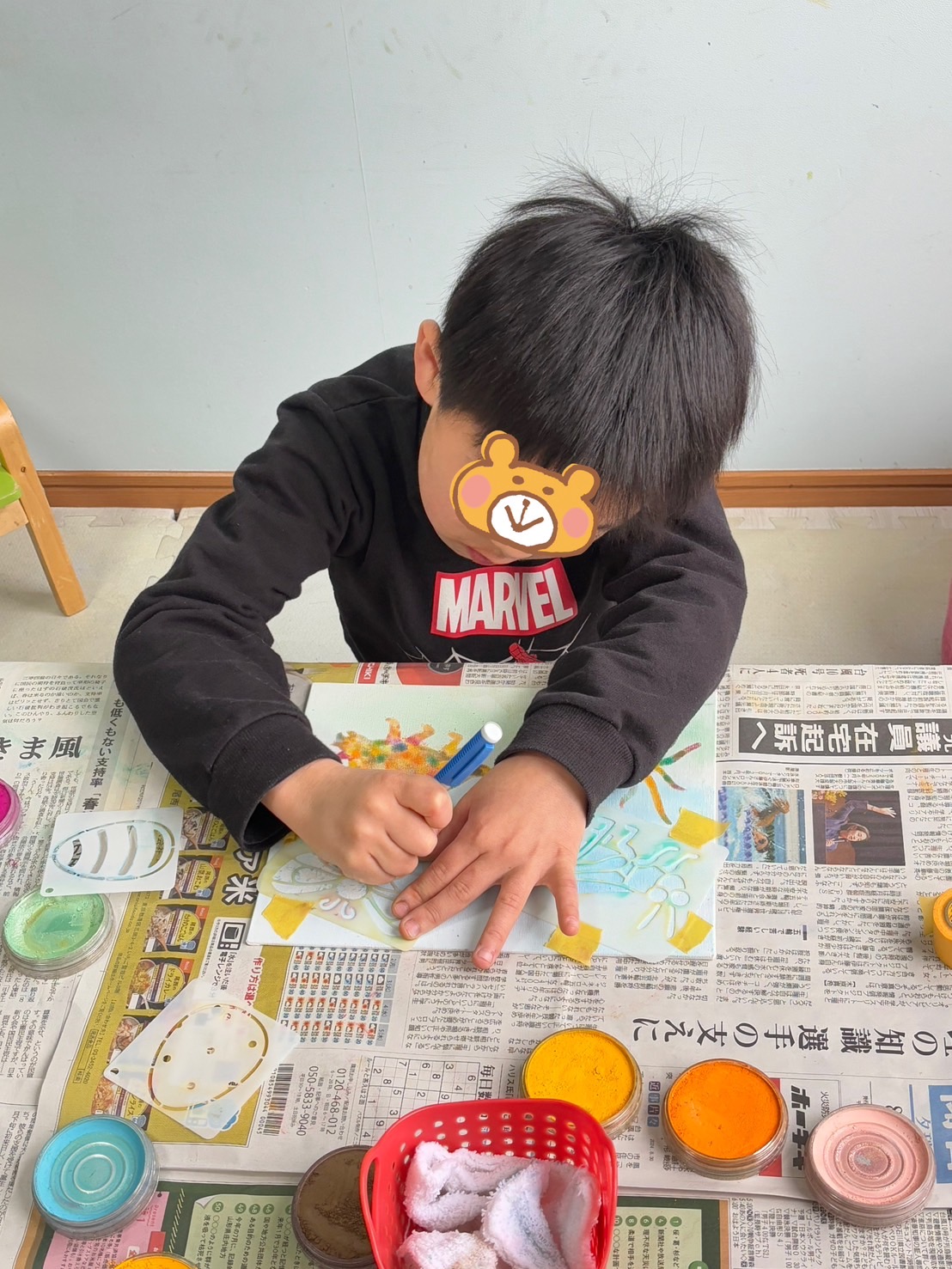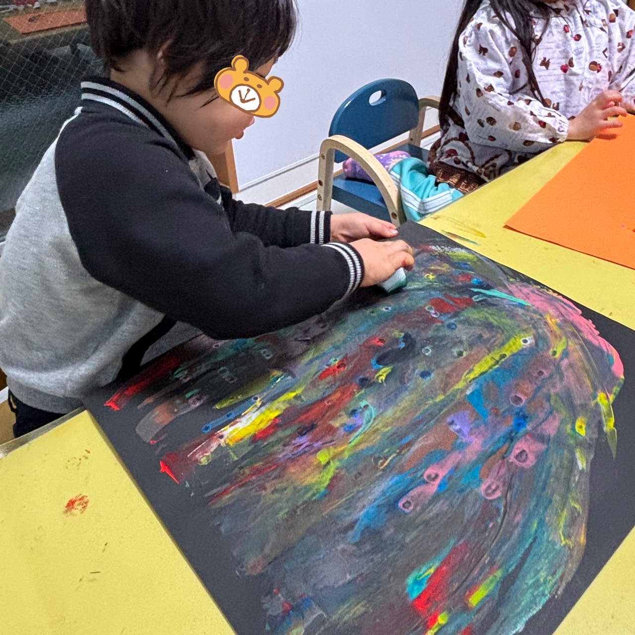 子どもには、すこし扱いづらいパステルですが、みんなやり方をしっかり聞いて、思い思いのパステルアートを完成させてくれました✨