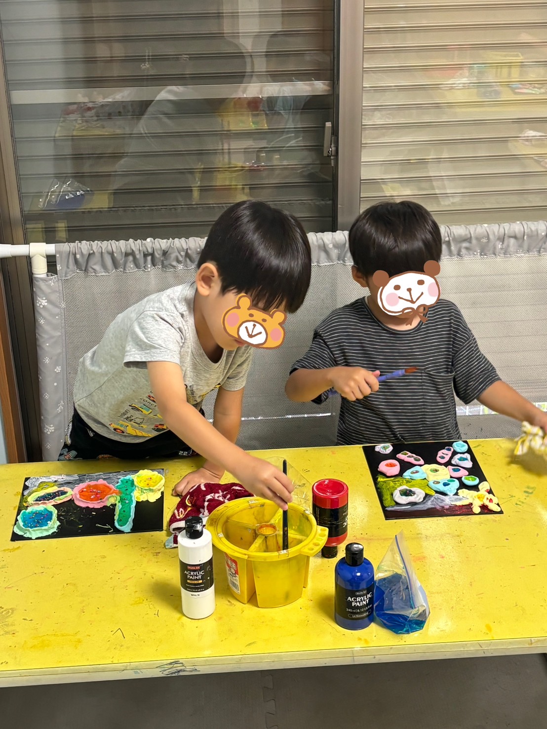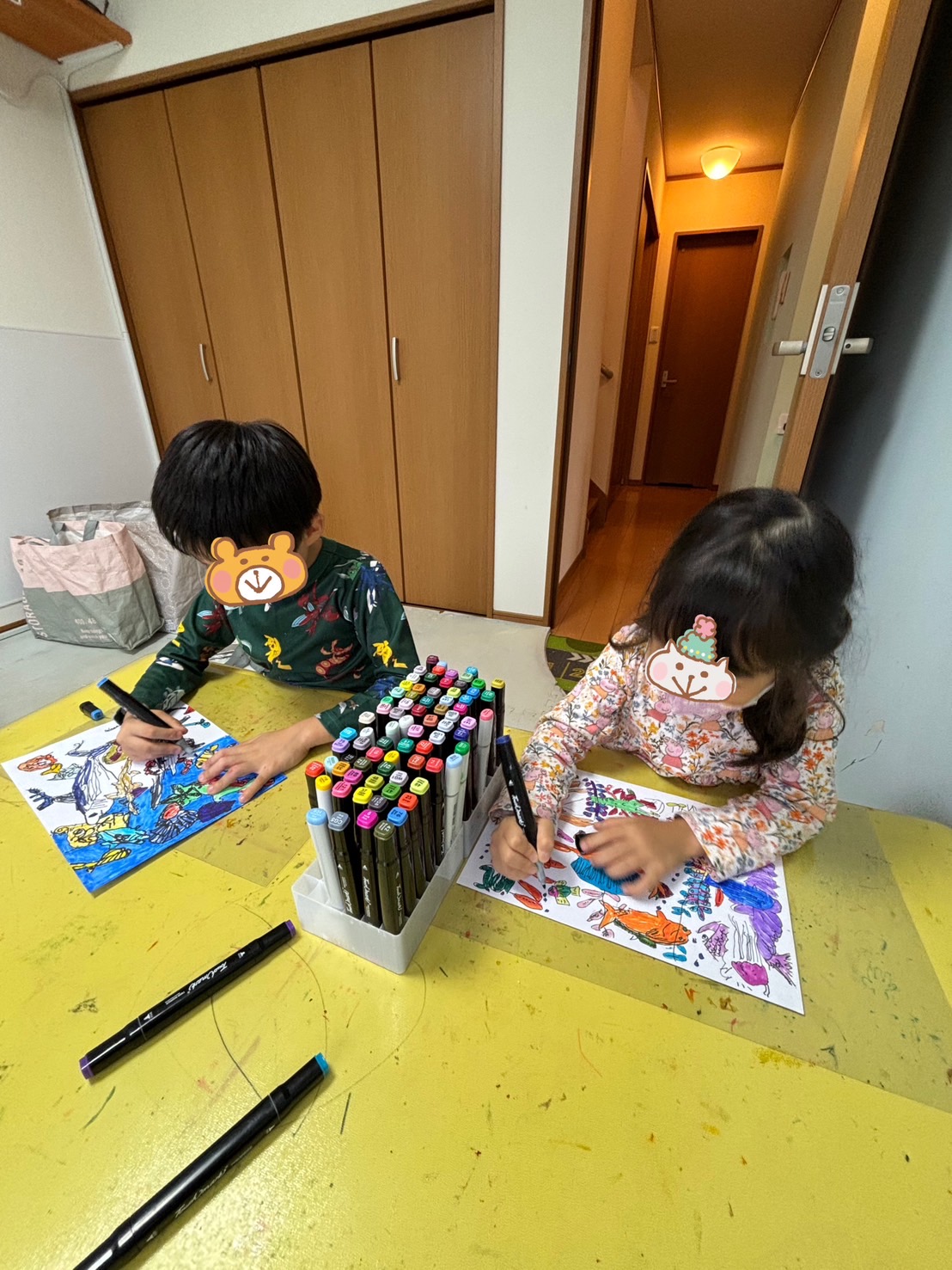 お互いの絵を褒め合っている姿を見て、ほっこりしています☺️✨